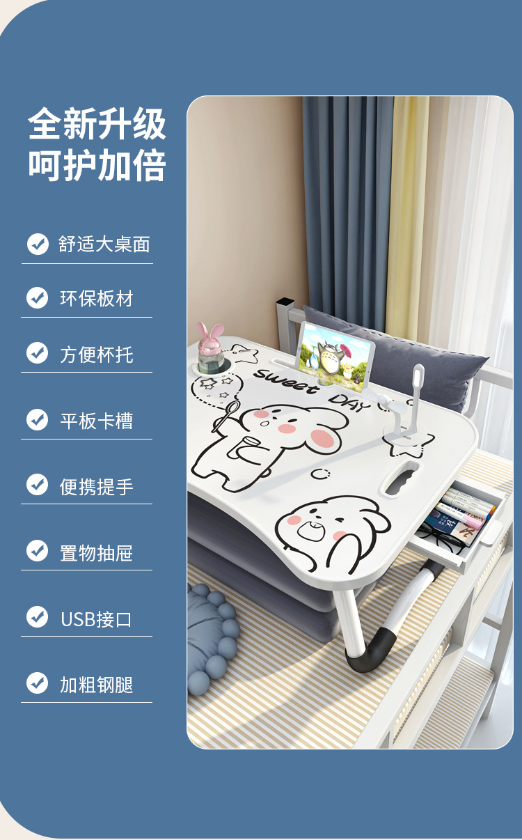 Bed Desk folding small table heightened High School student online class study table College student dormitory bed table special offer