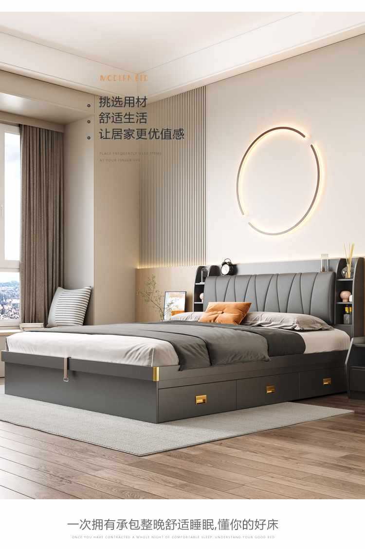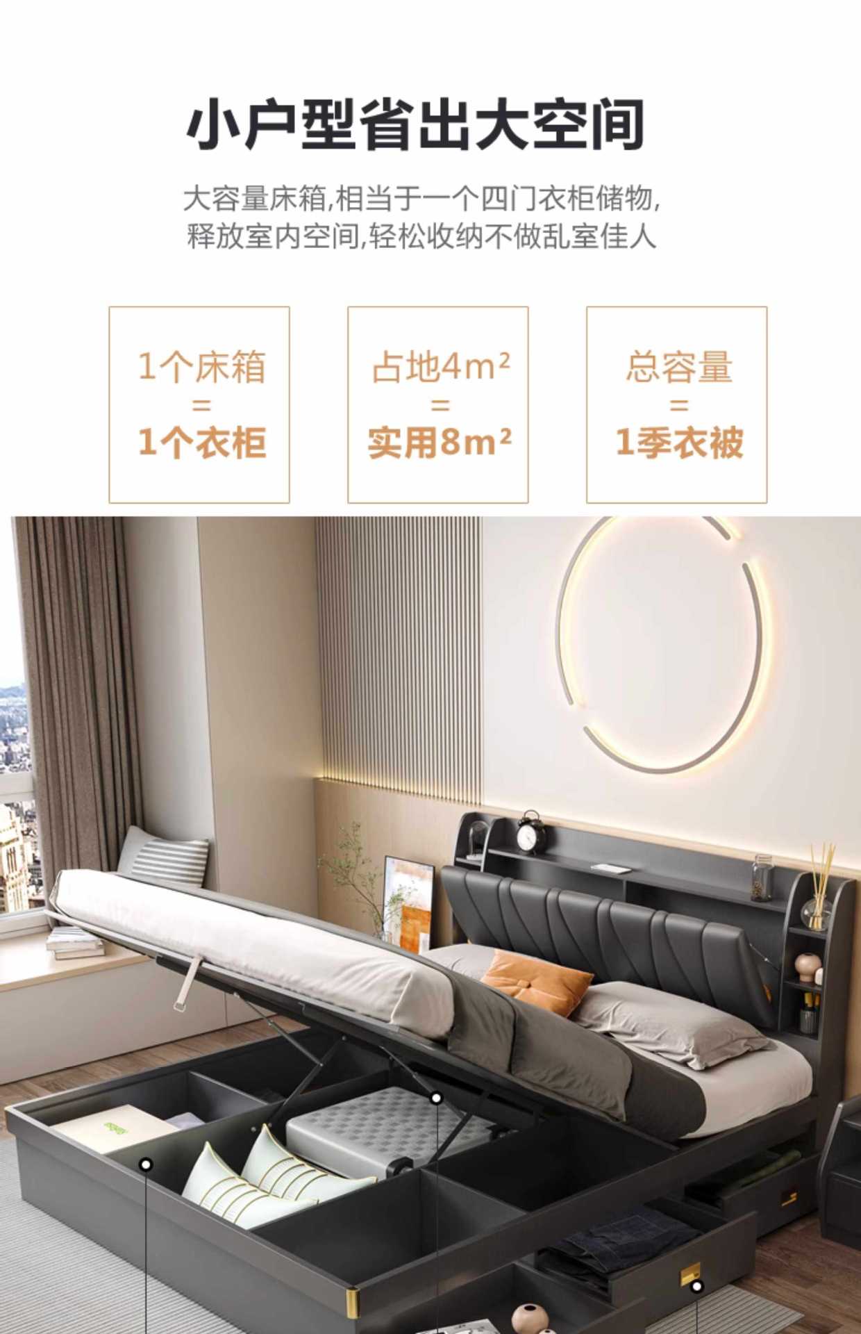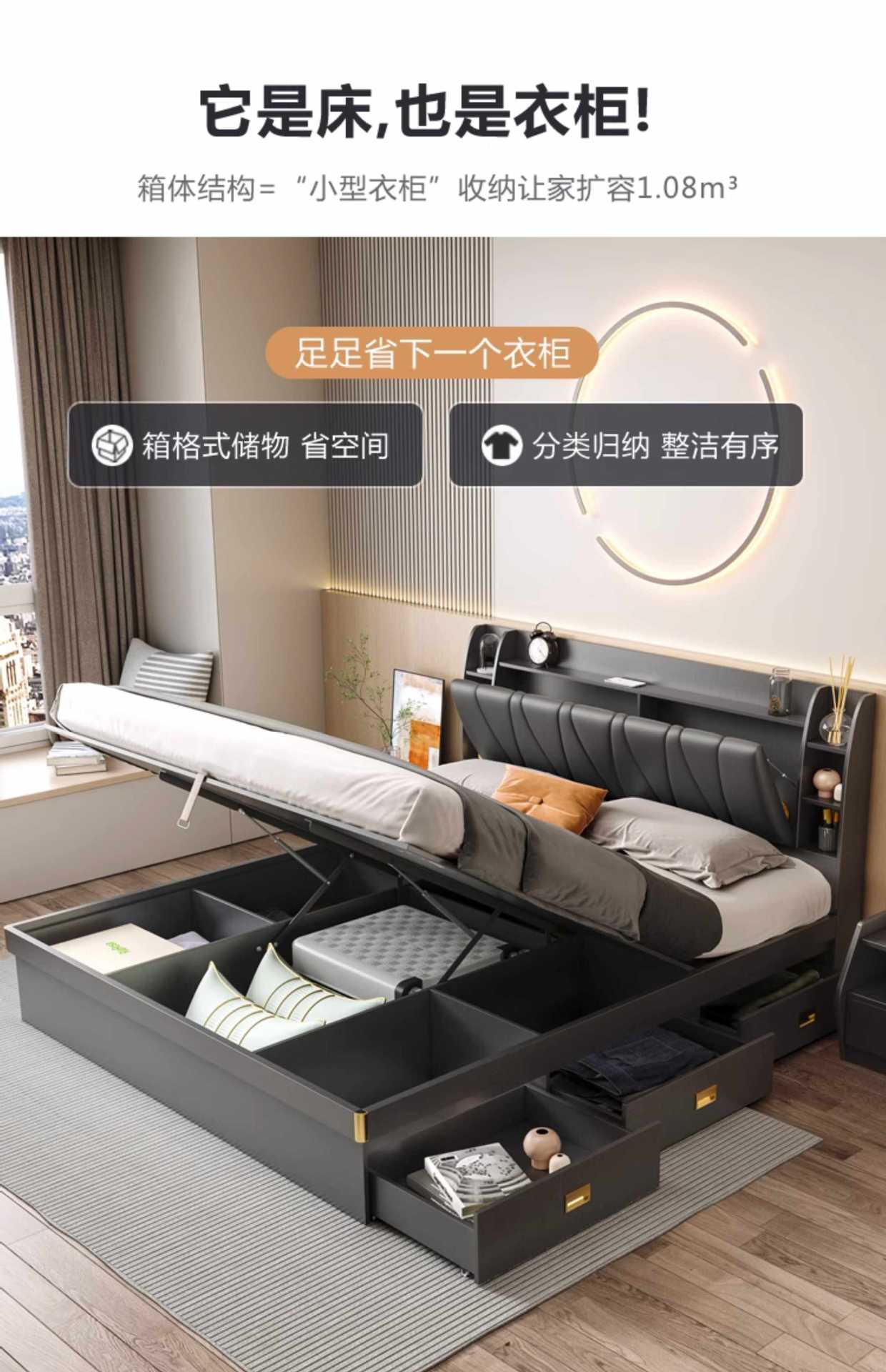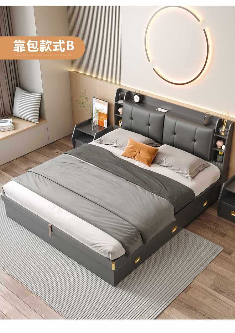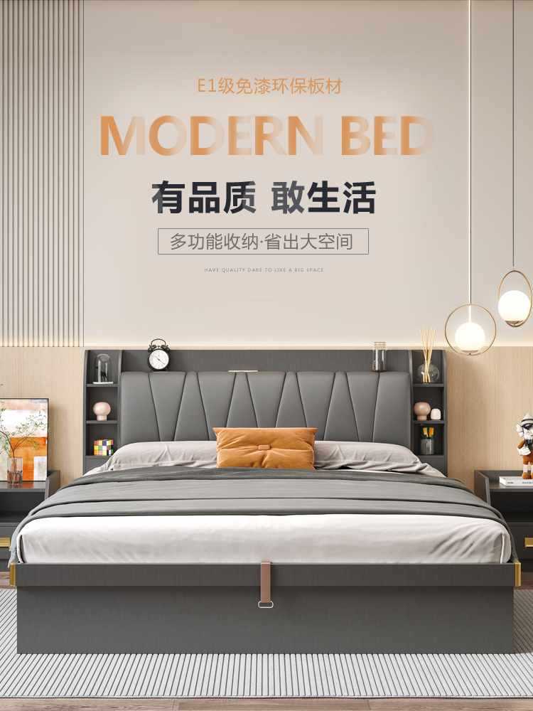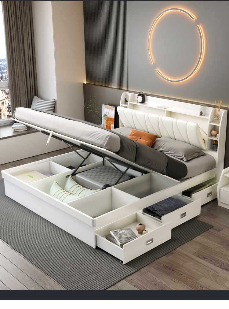 Bed light luxury modern simple high Box storage bed small apartment double master bedroom big bed storage bed tatami board bed