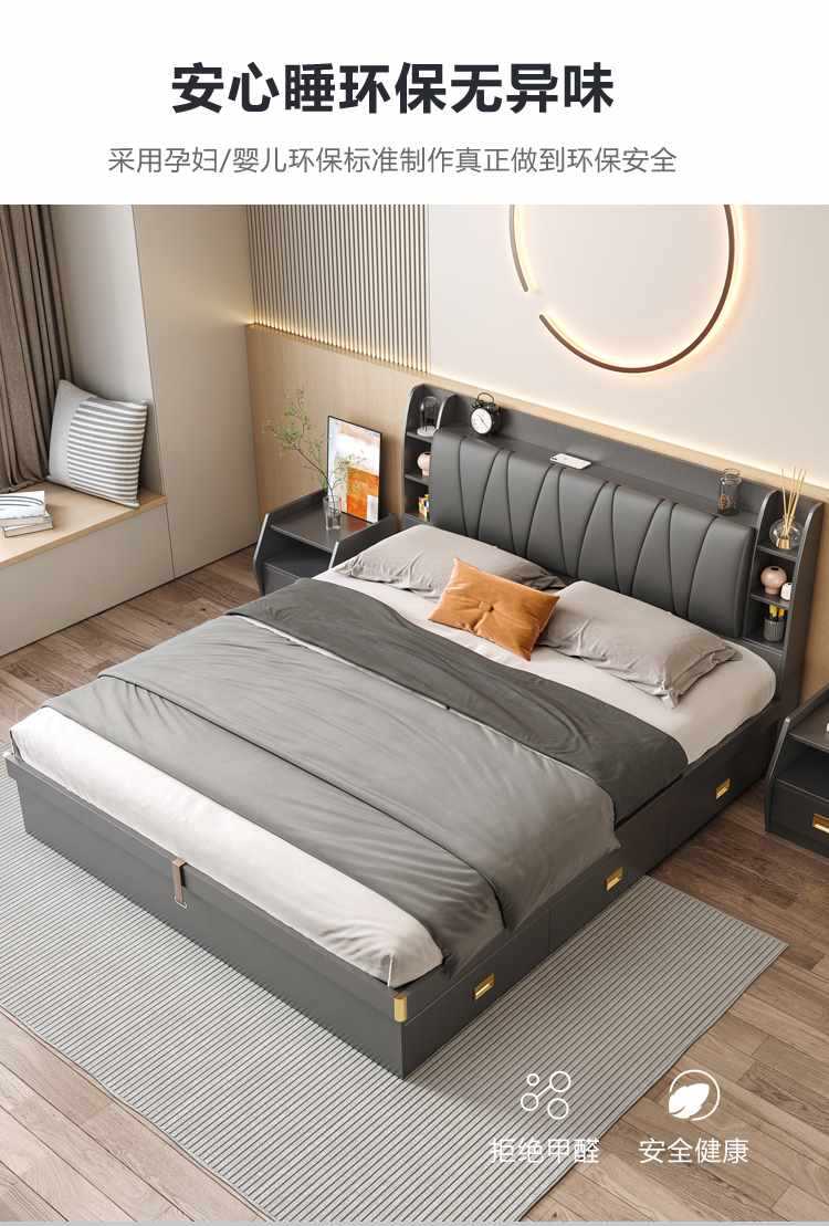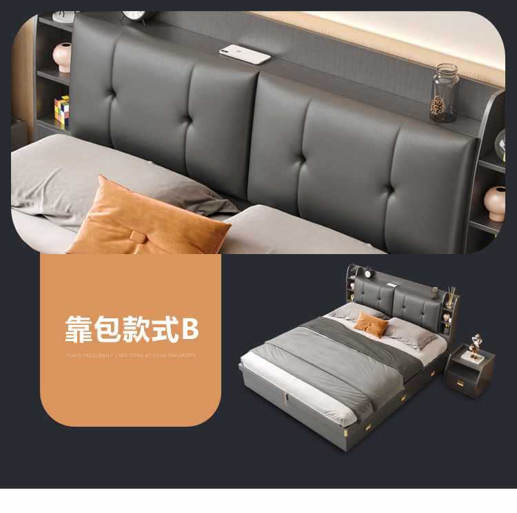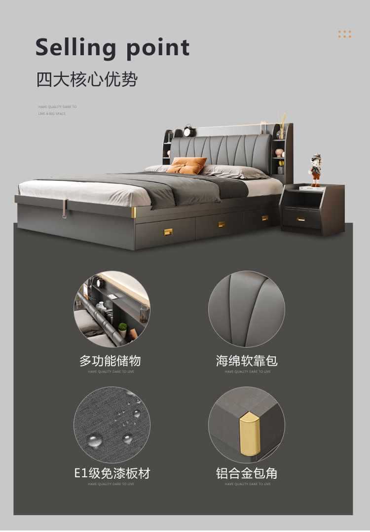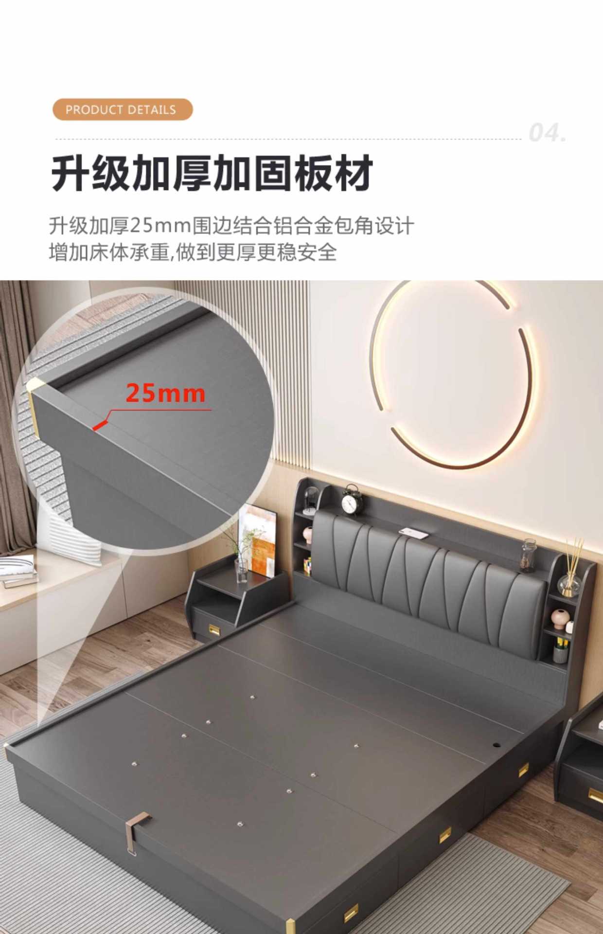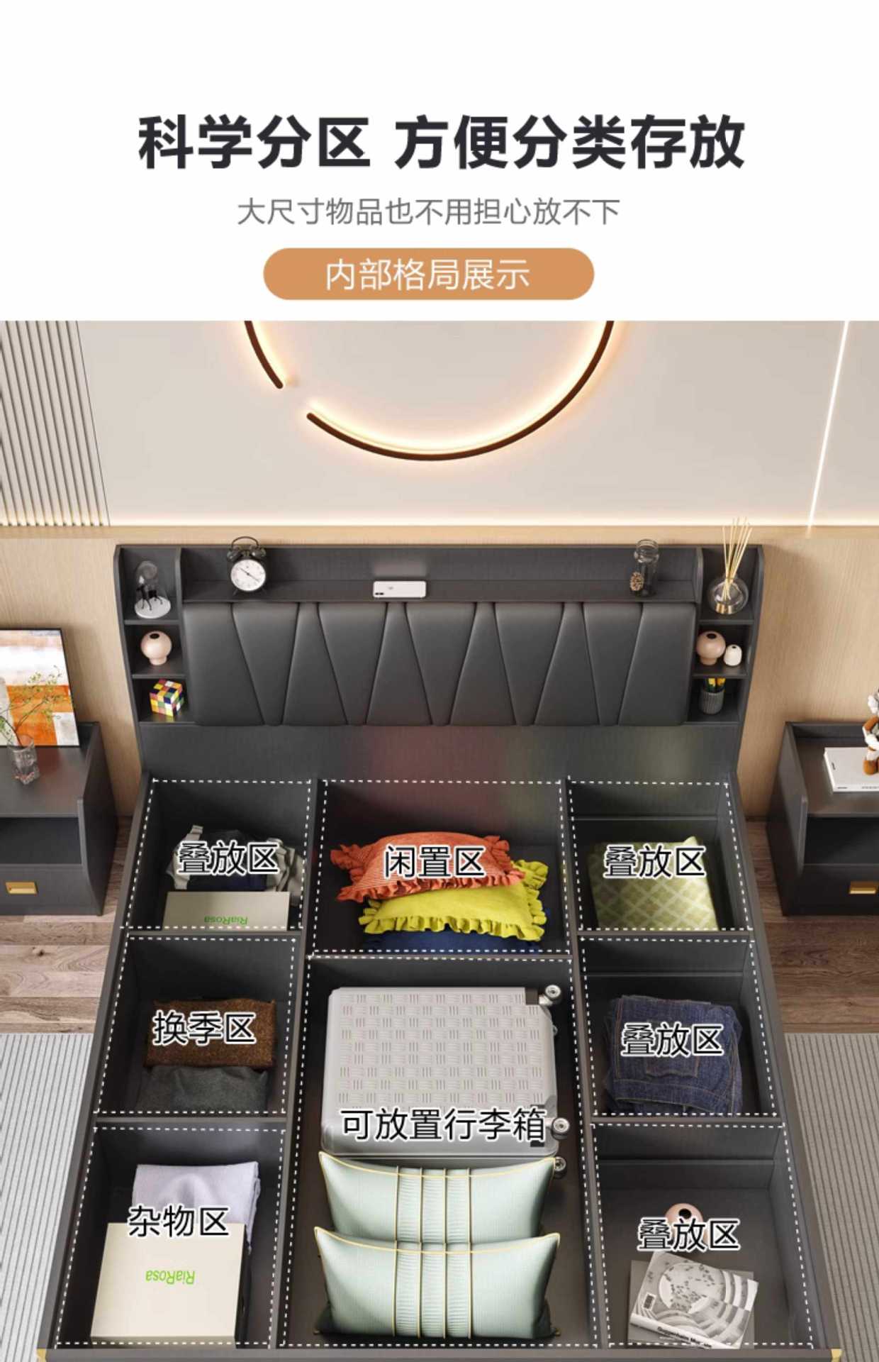 Bed light luxury modern simple high Box storage bed small apartment double master bedroom big bed storage bed tatami board bed