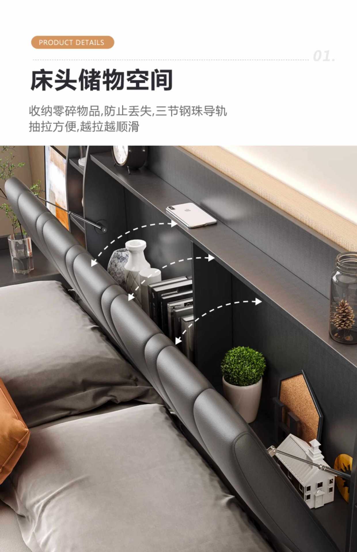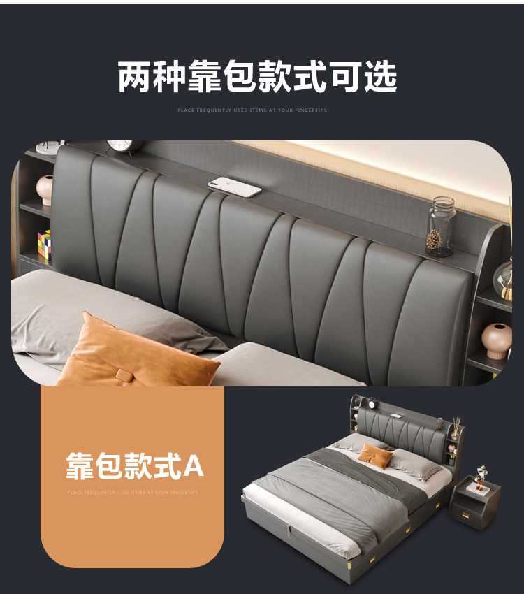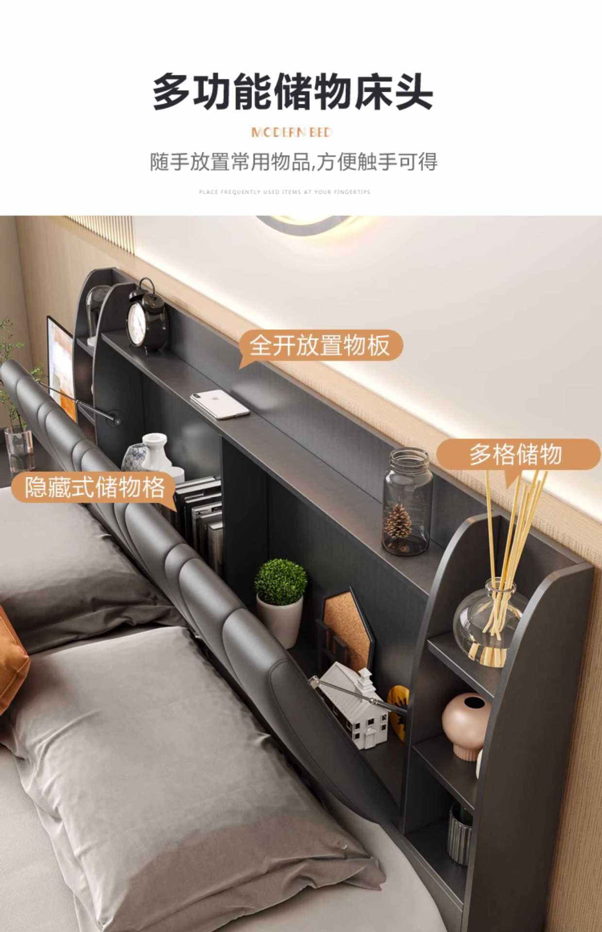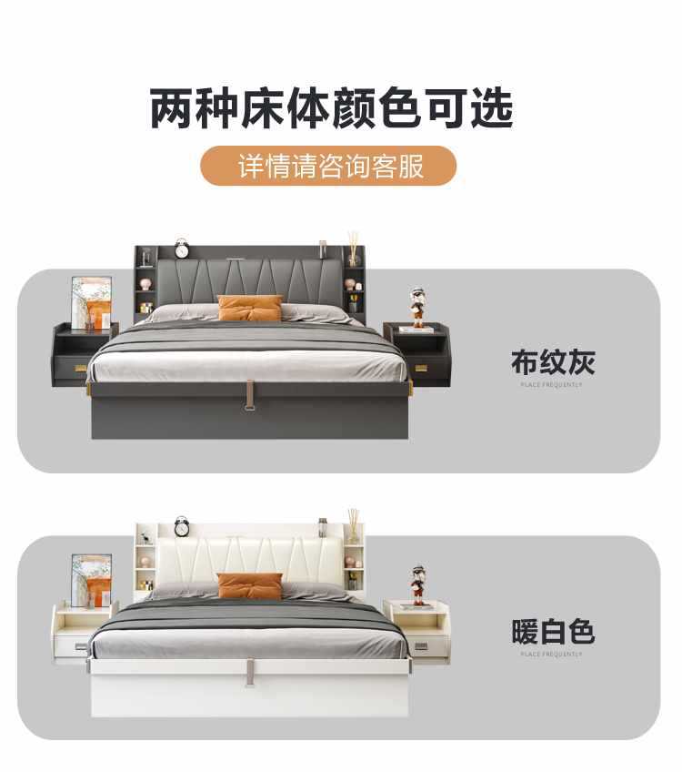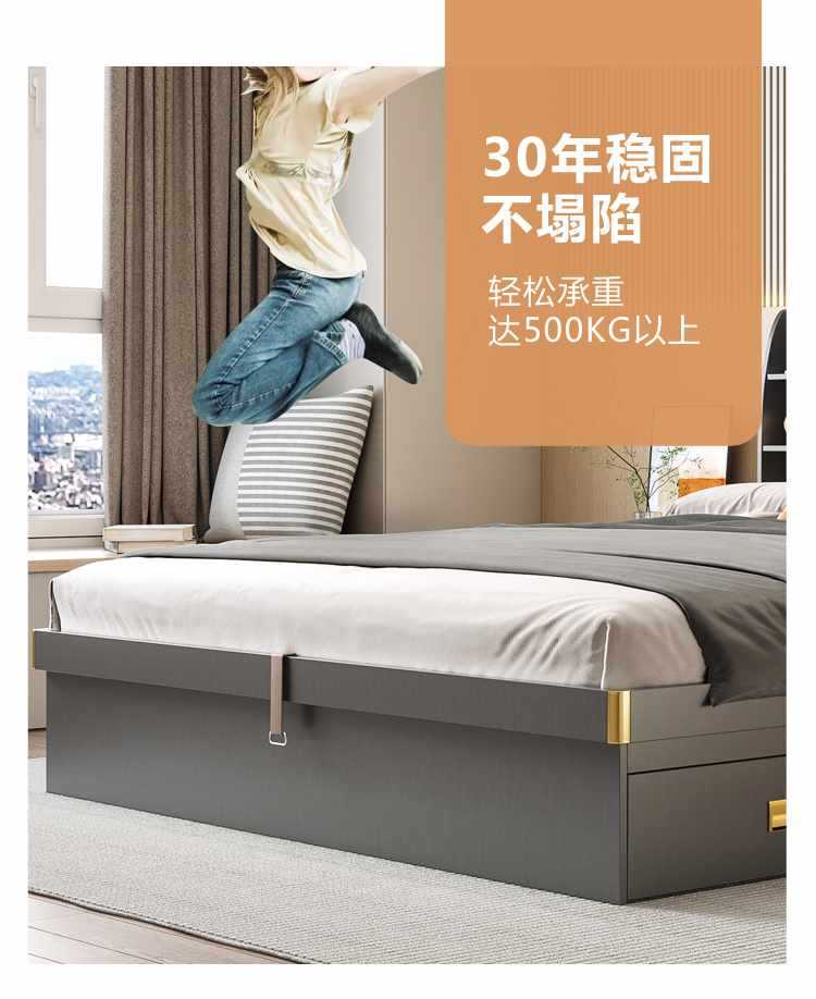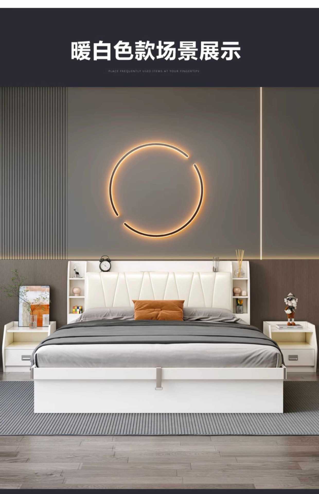 Bed light luxury modern simple high Box storage bed small apartment double master bedroom big bed storage bed tatami board bed