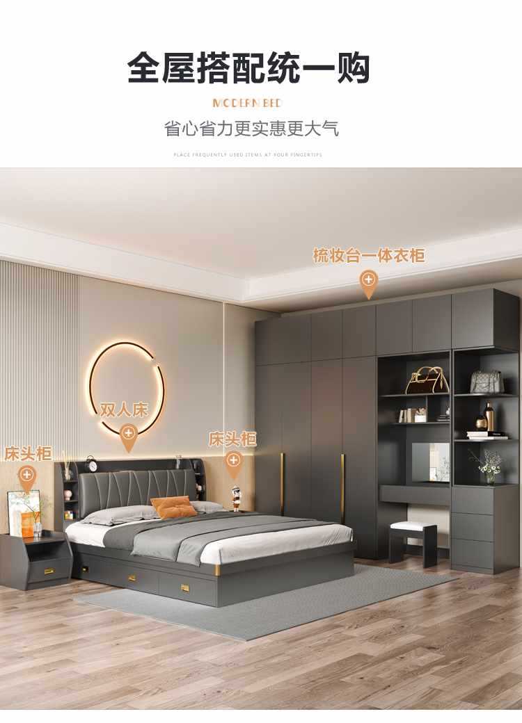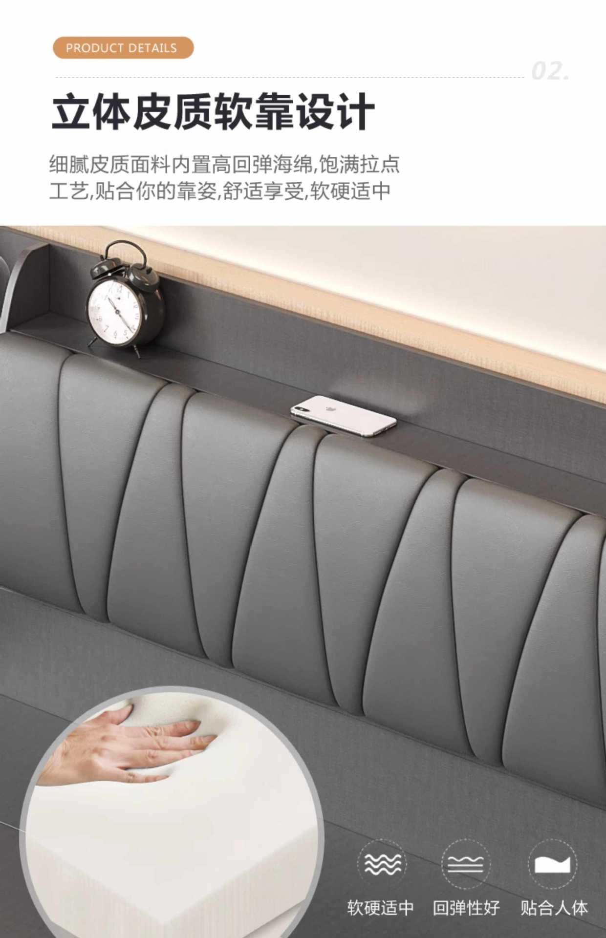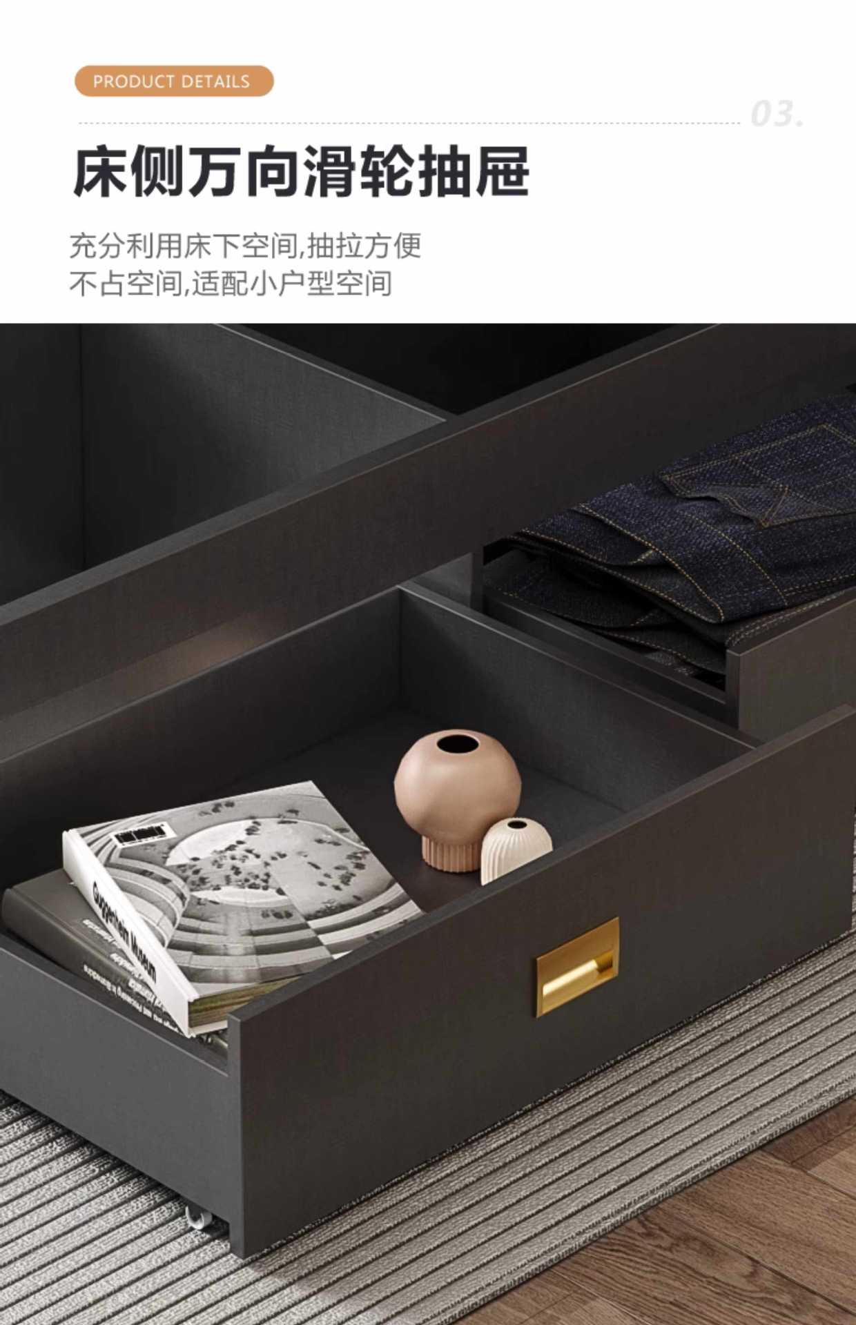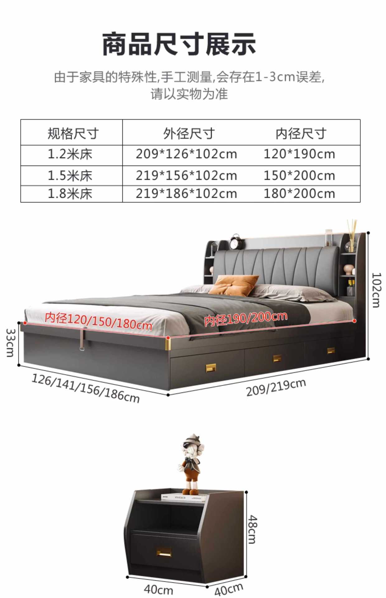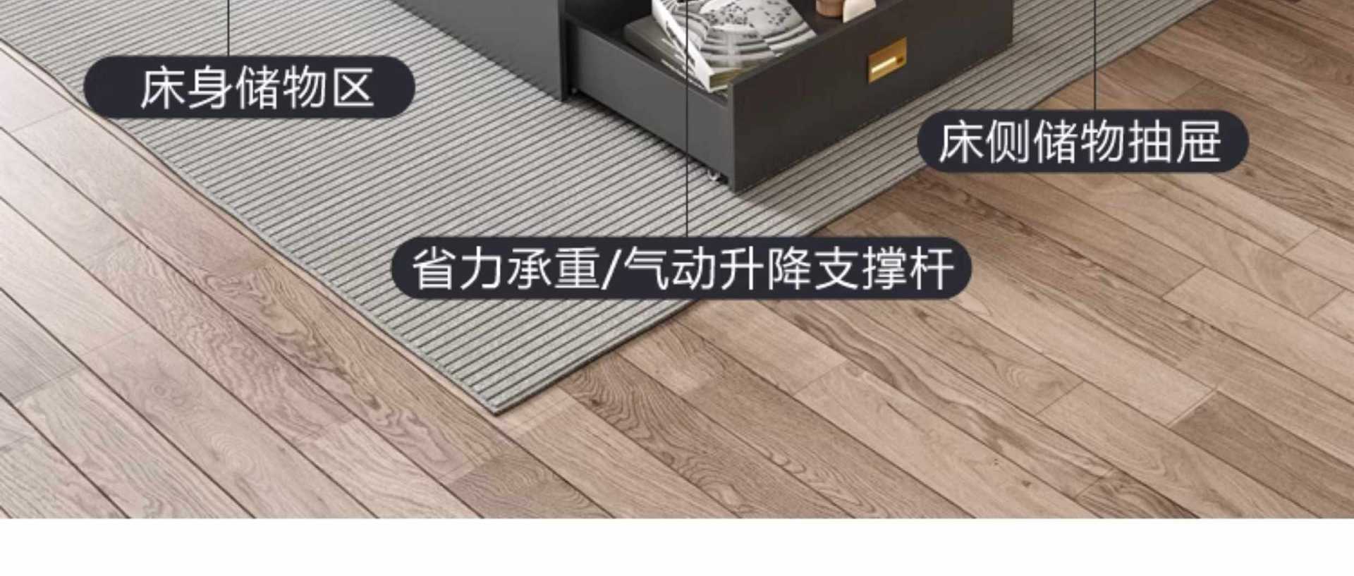 Bed light luxury modern simple high Box storage bed small apartment double master bedroom big bed storage bed tatami board bed