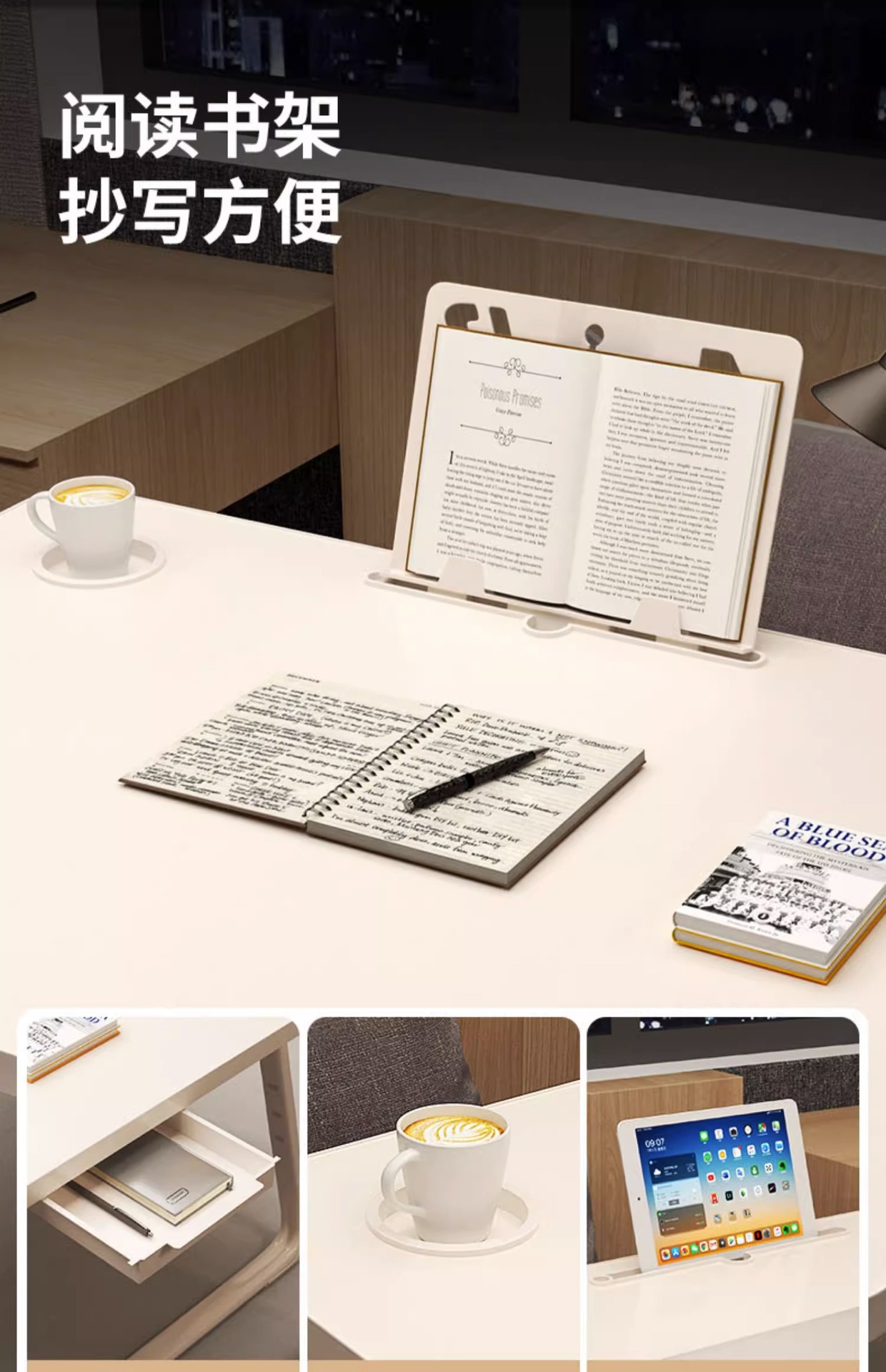 - Pearl White [cup holder + drawer + bookshelf] 60*40 * 28CM