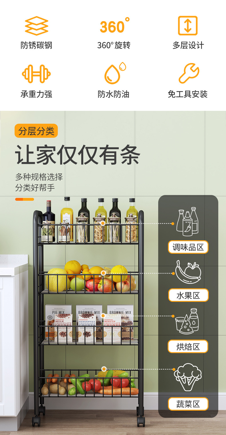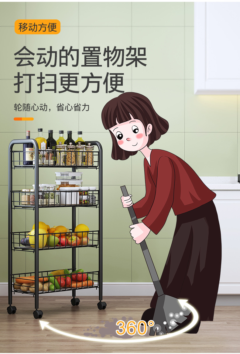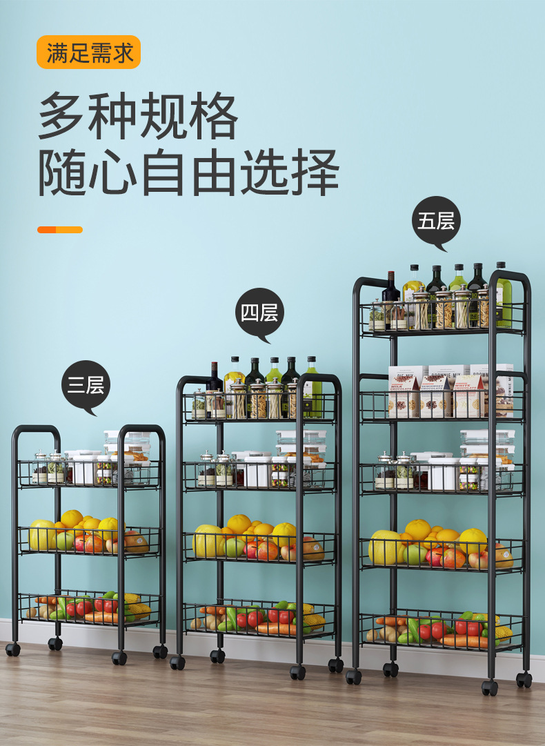 Bedroom Snack Shelf Bedside Storage Rack Floor Bedroom Kitchen Bathroom Dormitory Storage Vegetable Blue Room Trolley