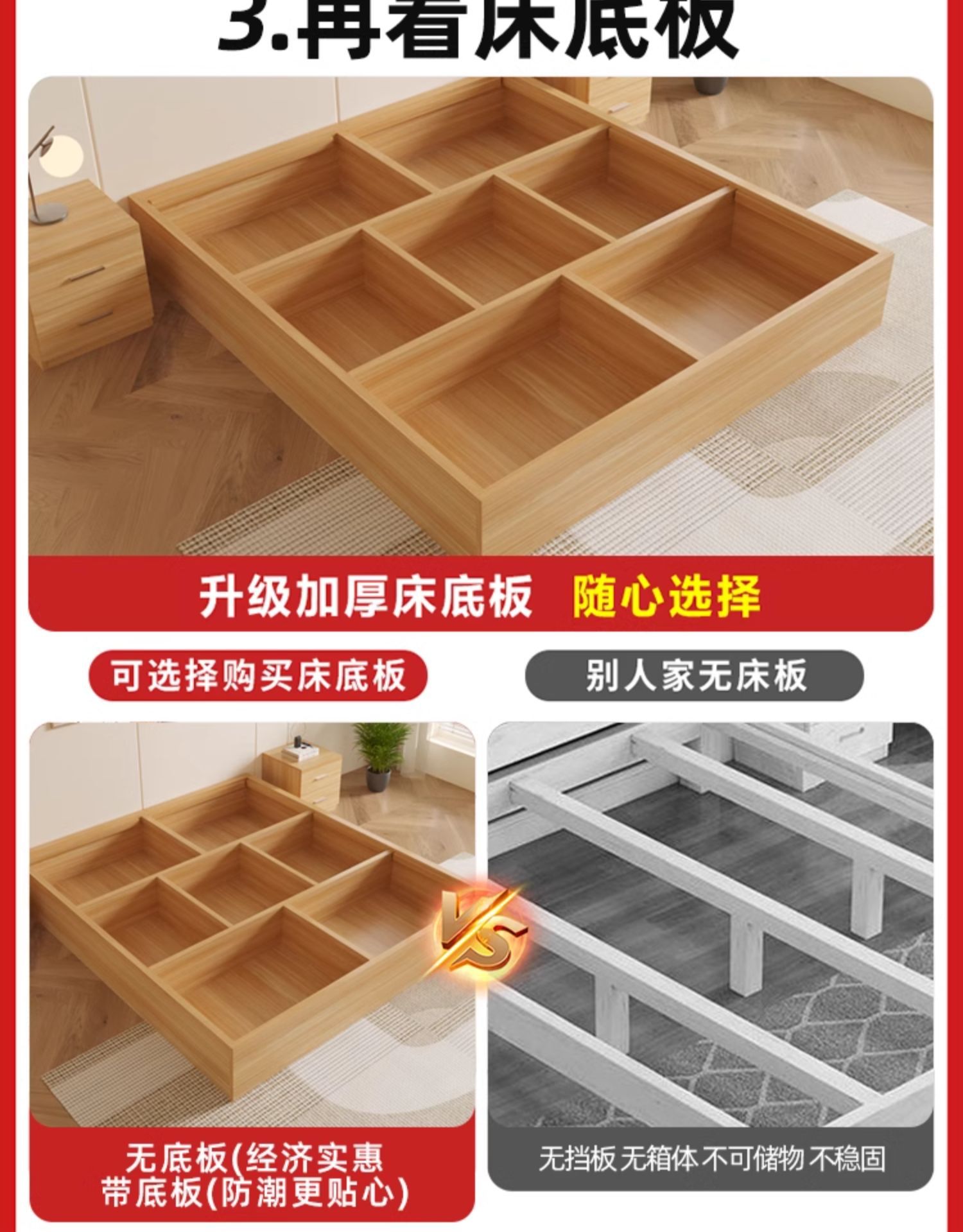 Bedside free Plate Bed Modern Simple Double Bed Small Apartment Single Bed Box Storage Bed Tatami Storage New Products