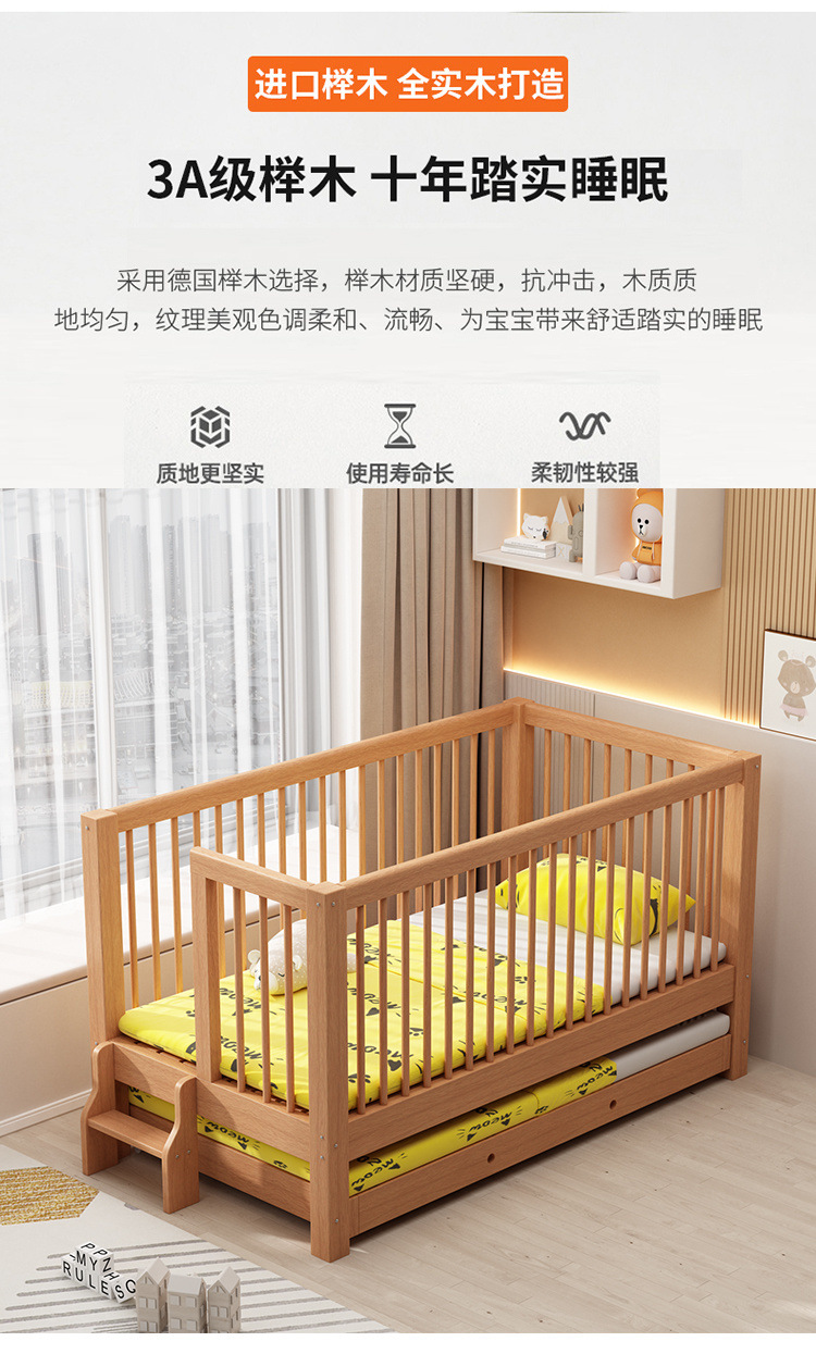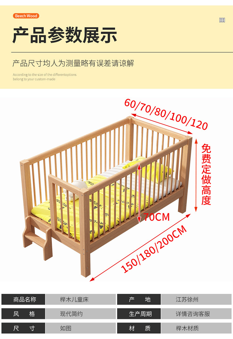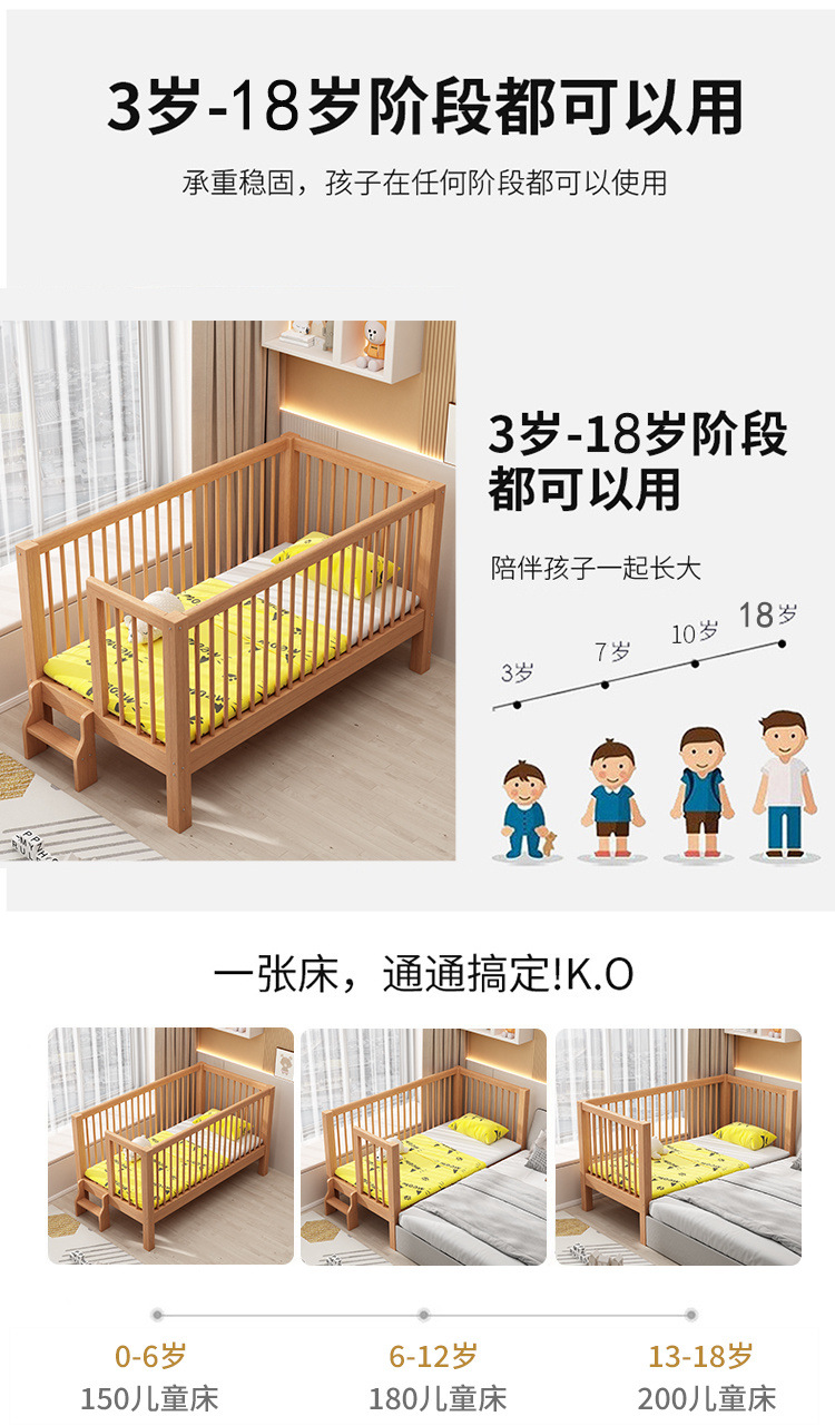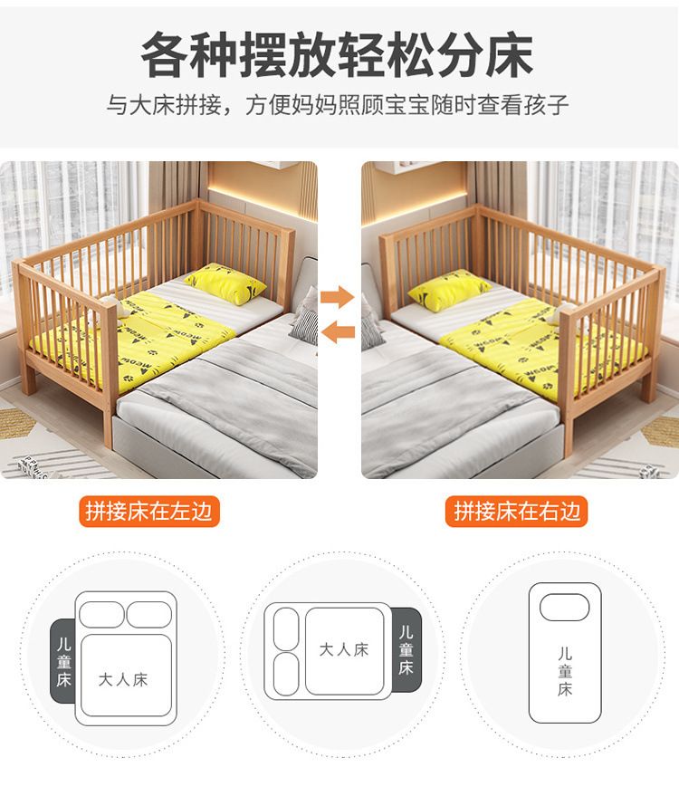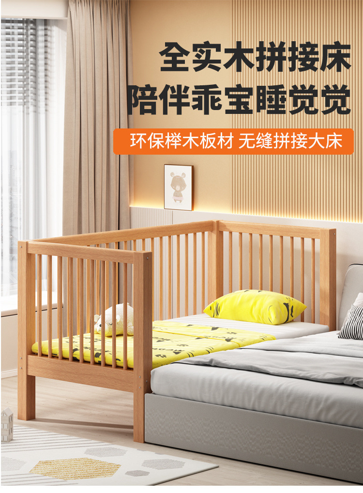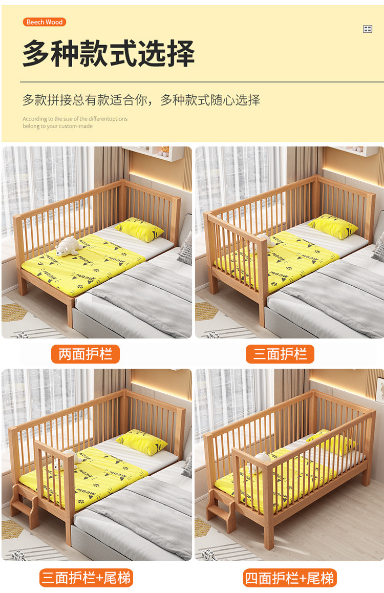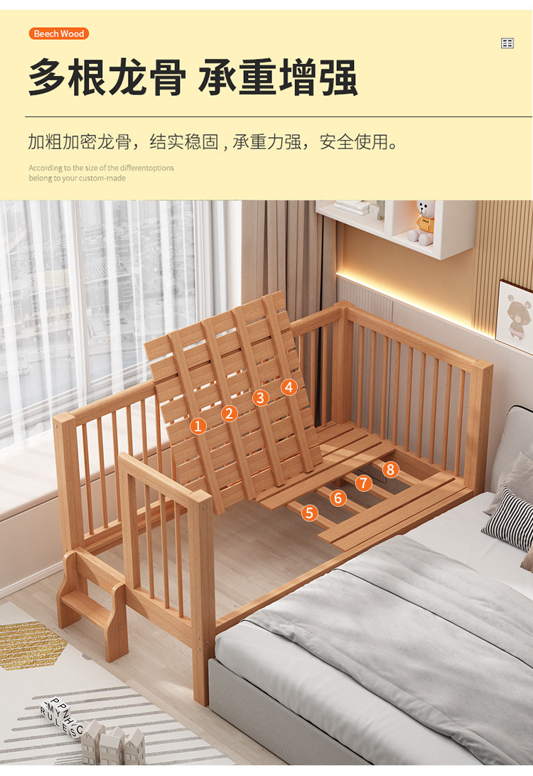 Beech Children s Bed with Guardrail Children s Splice Bed Height up Baby s Medium and Large Children s Side Bed Now Widened Splice Small Bed