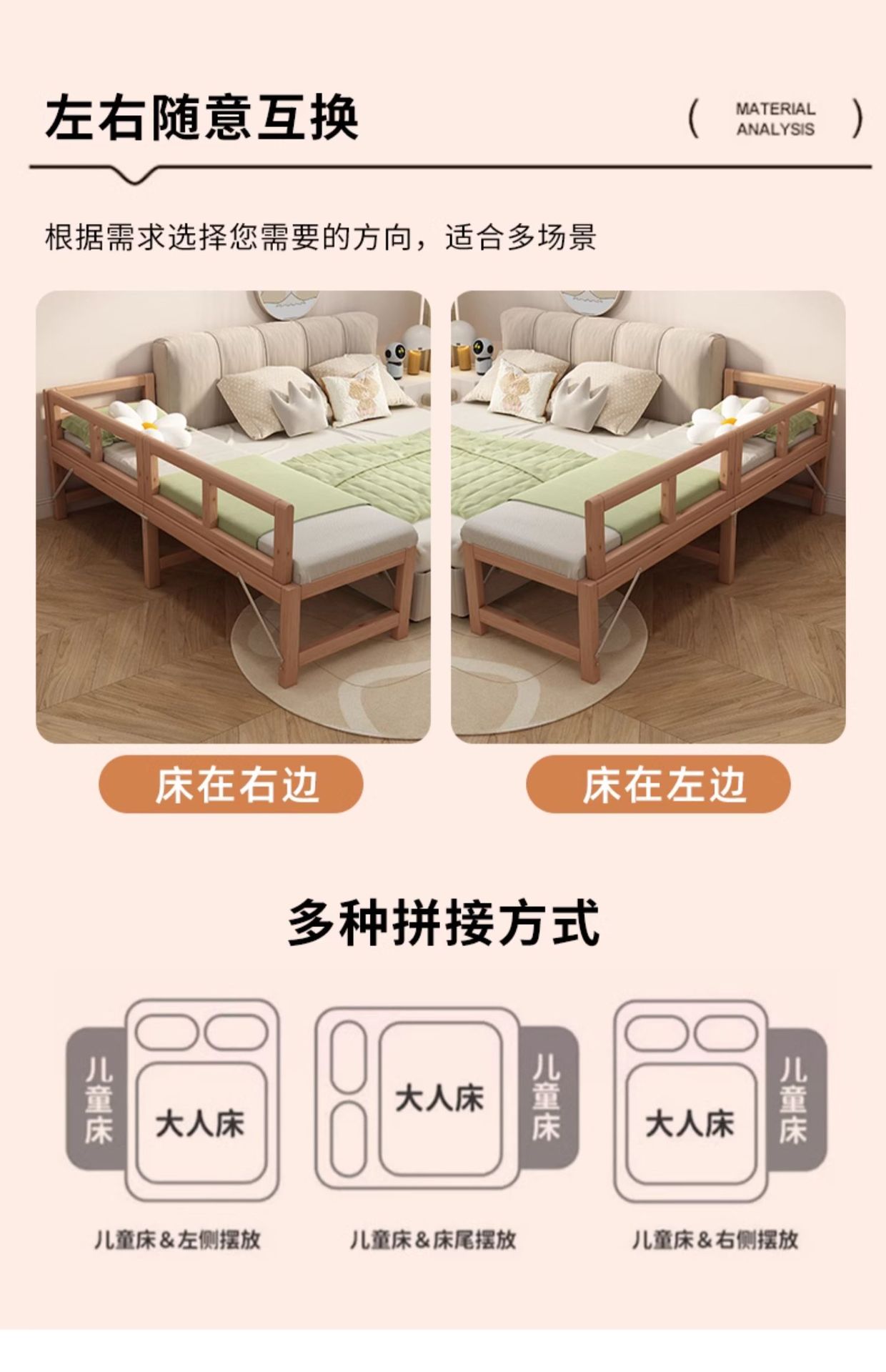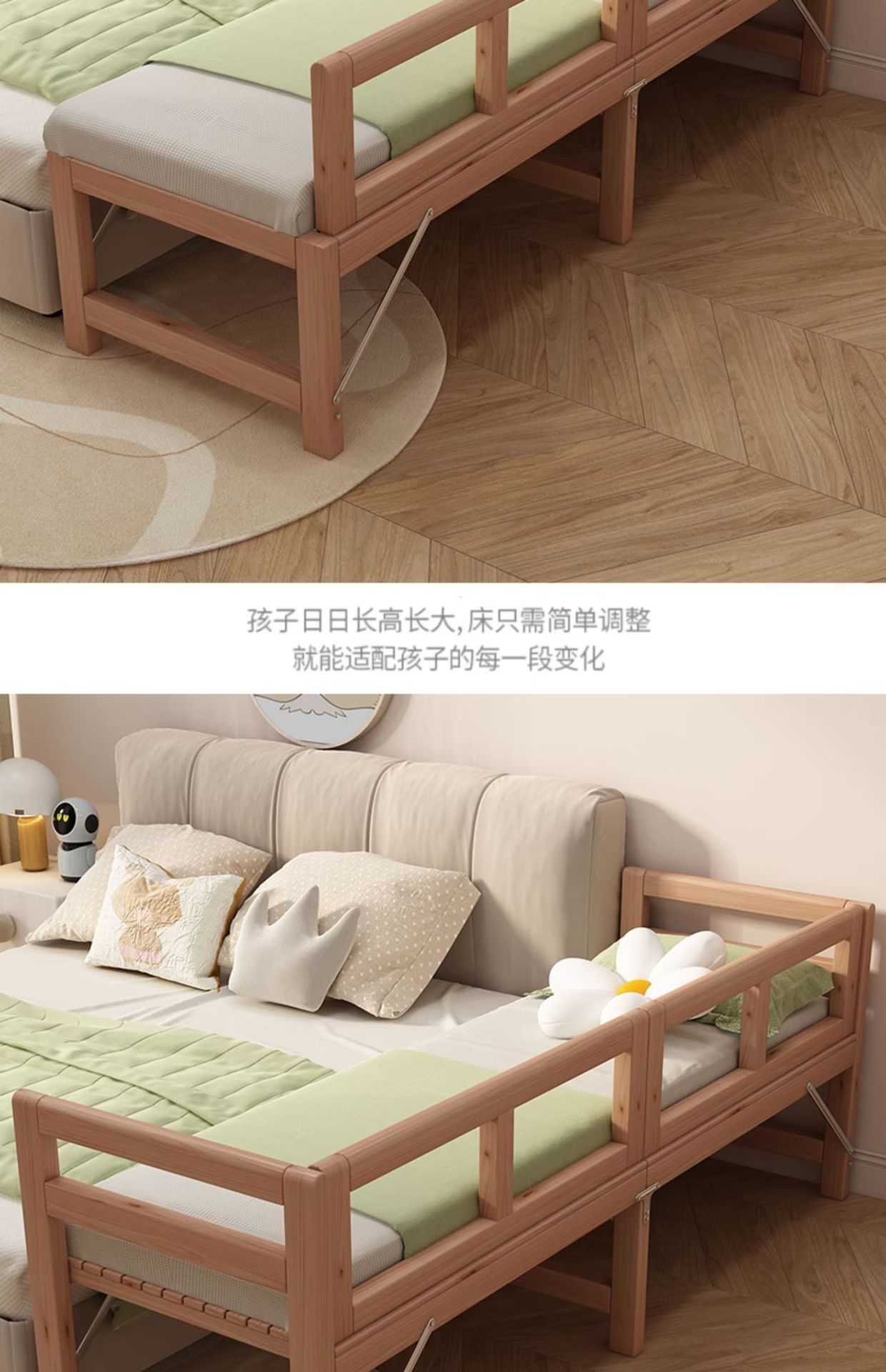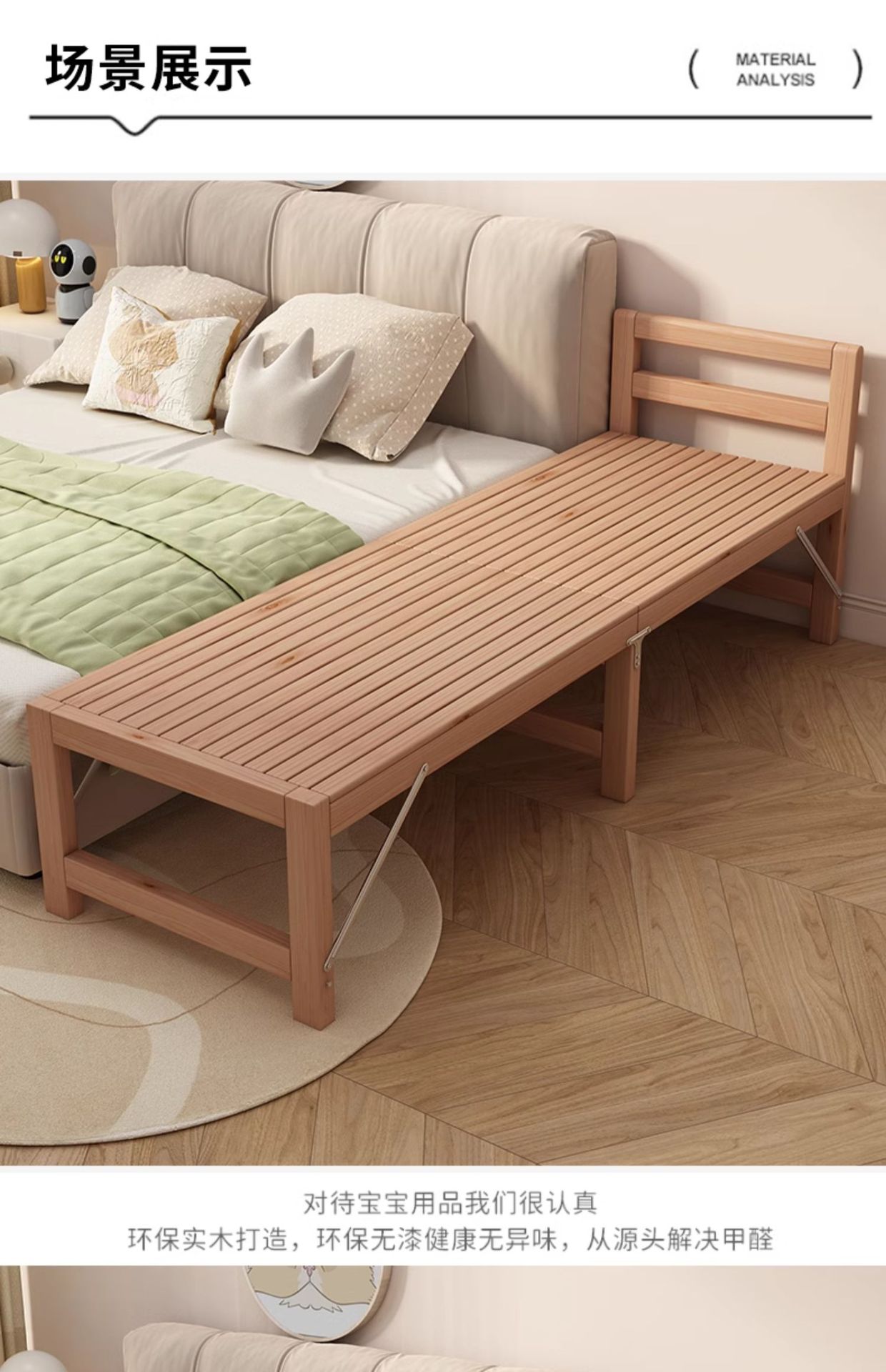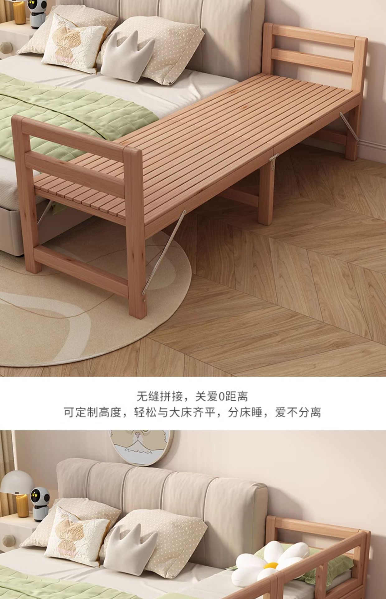 Beech Wood Splicing Bed Foldable Extra Bed with Guardrail Solid Wood Children Bed Side Bed Widened Bed Can be Orderable Baby Crib