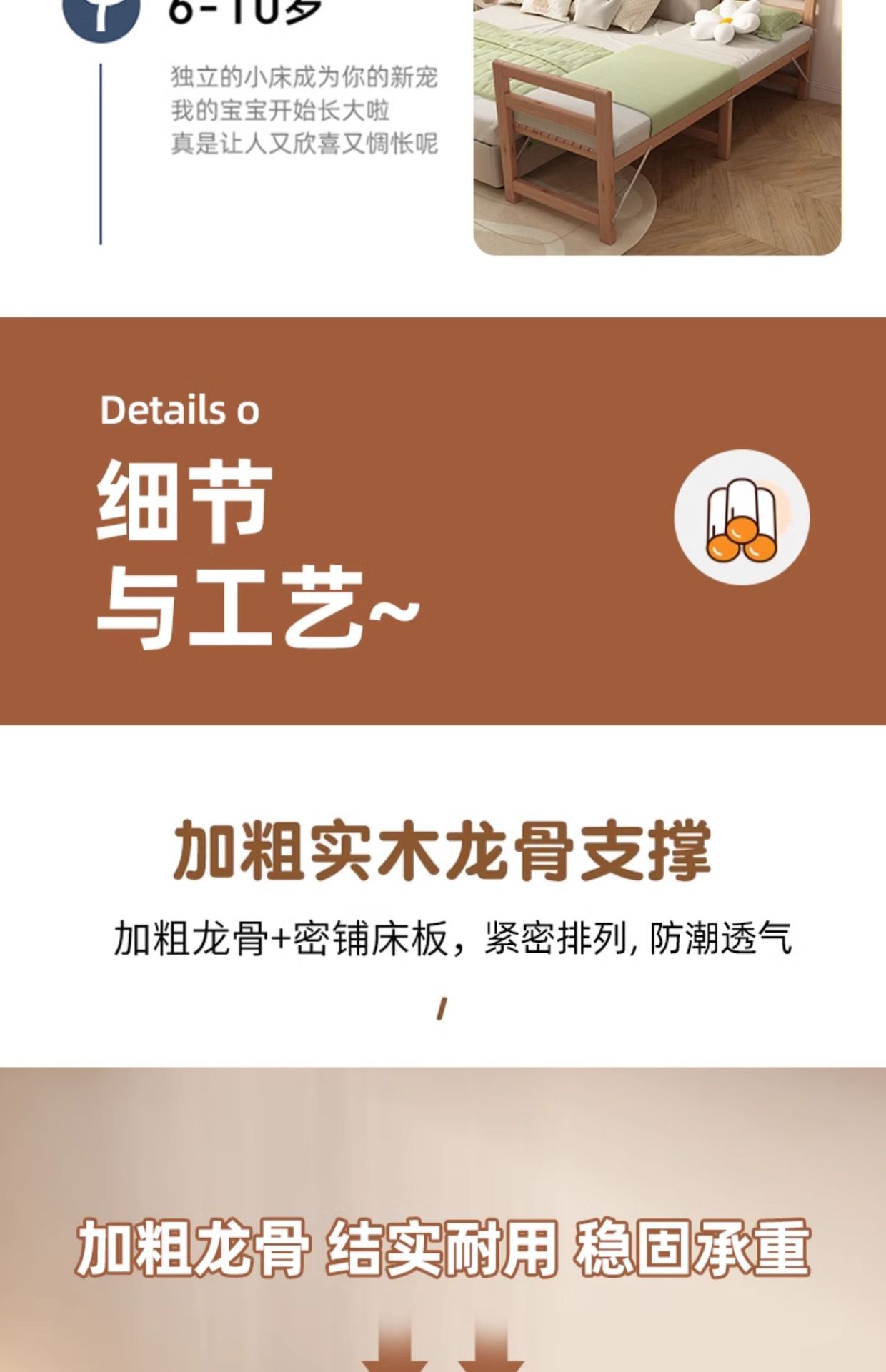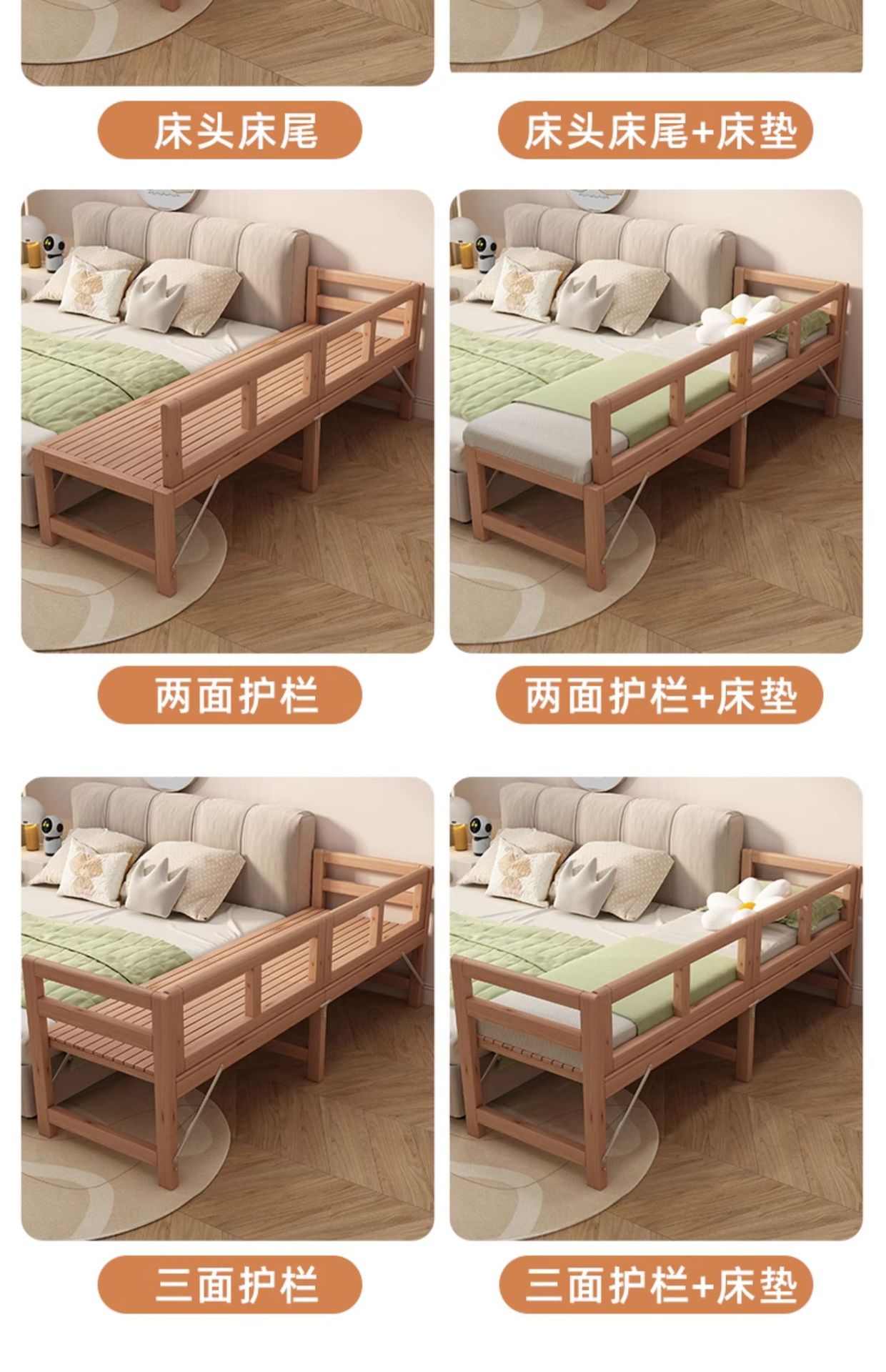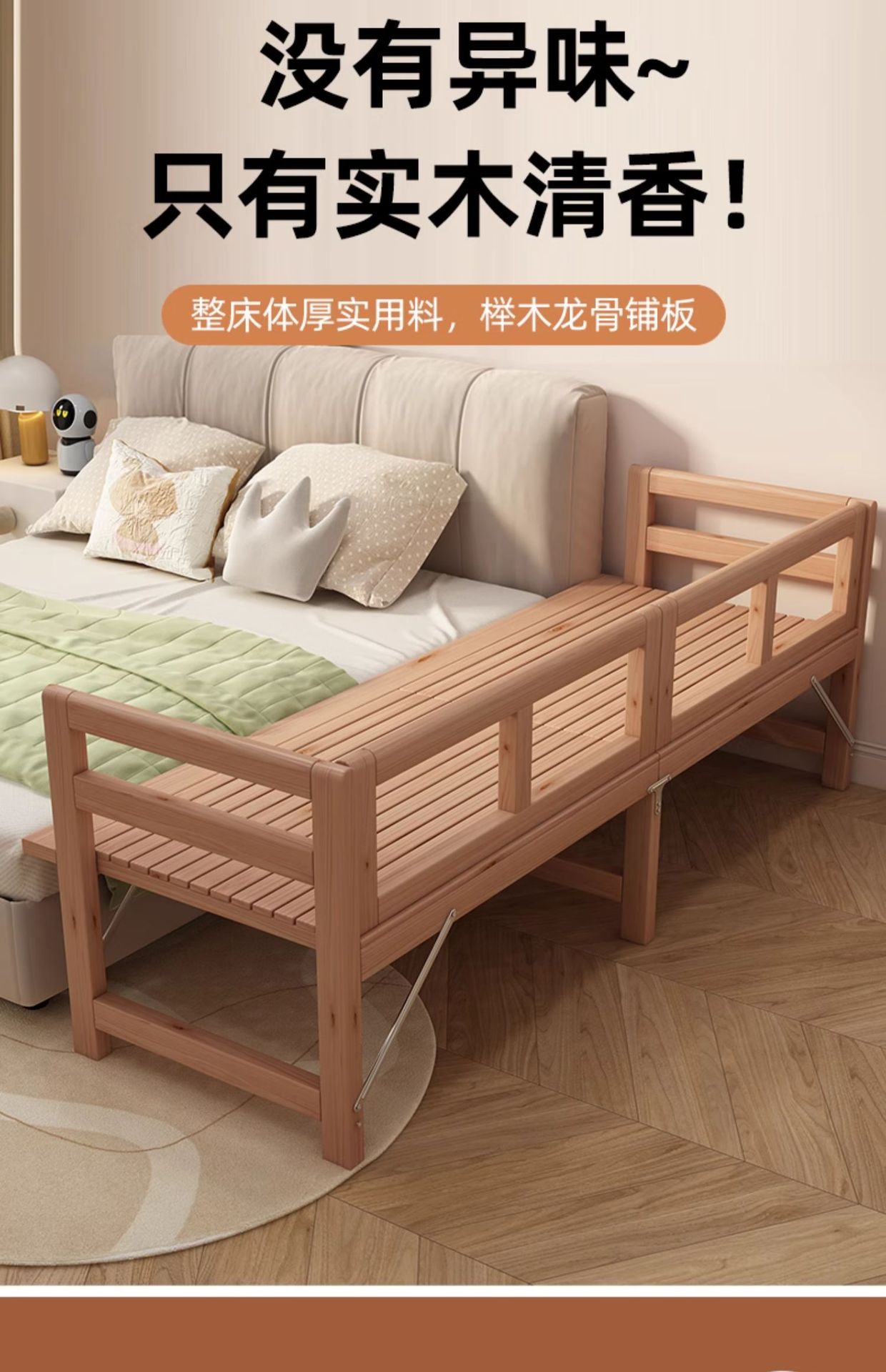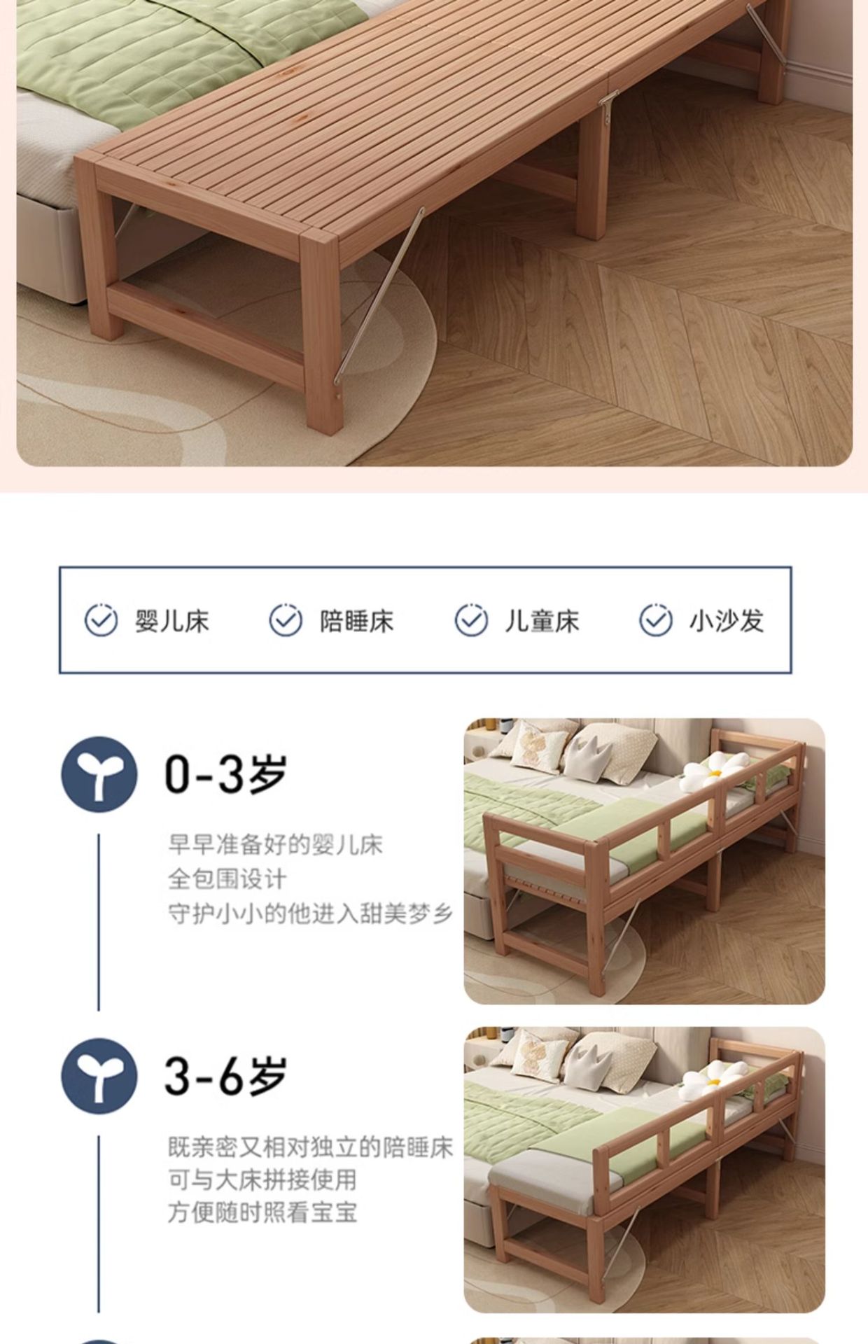 Beech Wood Splicing Bed Foldable Extra Bed with Guardrail Solid Wood Children Bed Side Bed Widened Bed Can be Orderable Baby Crib