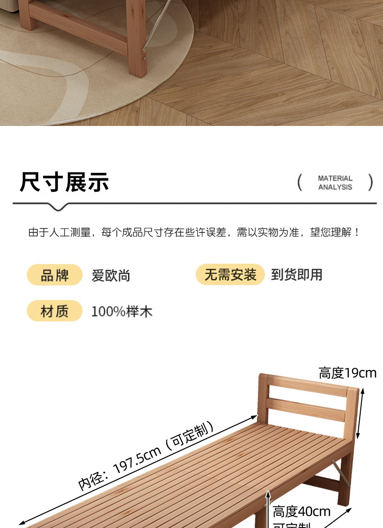 - [full beech] three-sided guardrail 5cm coconut palm mattress-folding (no need to install