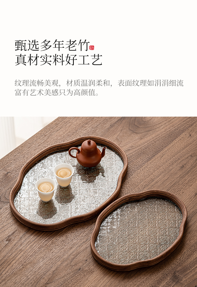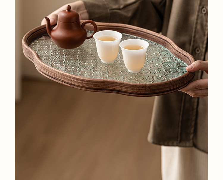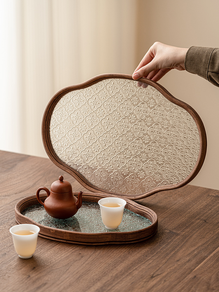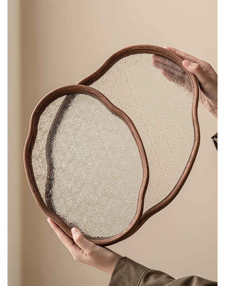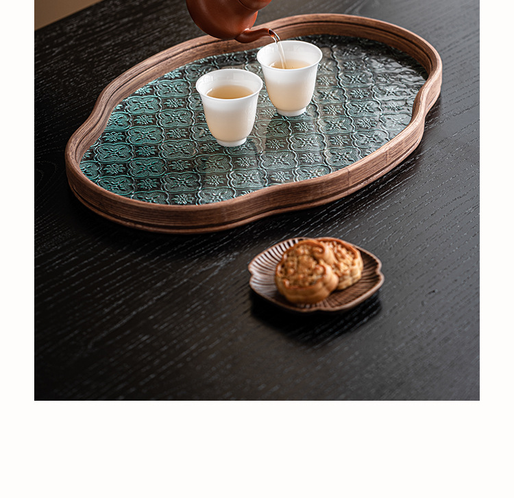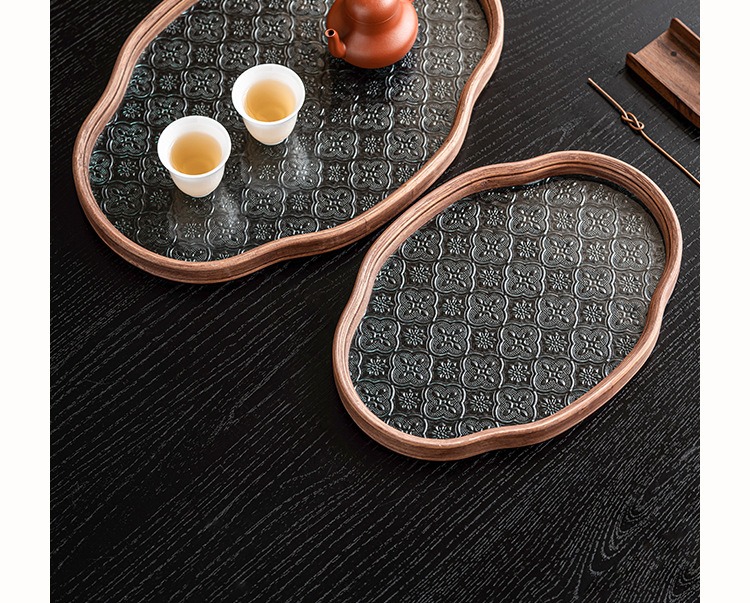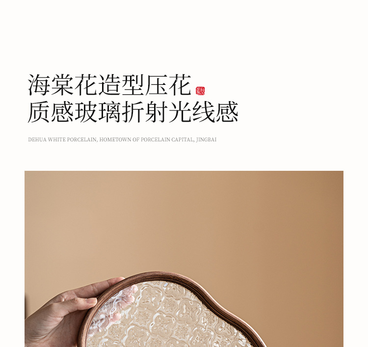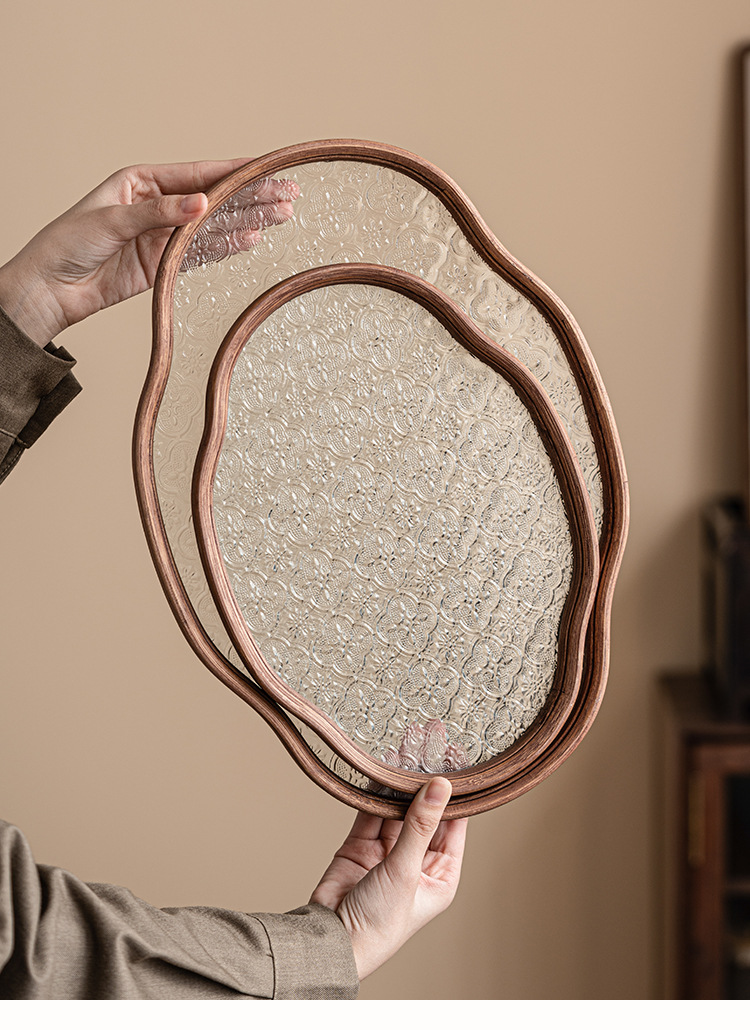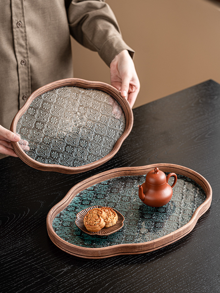 Begonia Flower Glass Tray Chinese-style Small Refreshment Plate Household Bowl Pot Pot Retro Tea Set Storage Plate