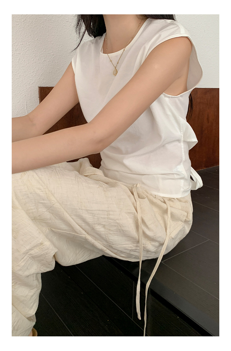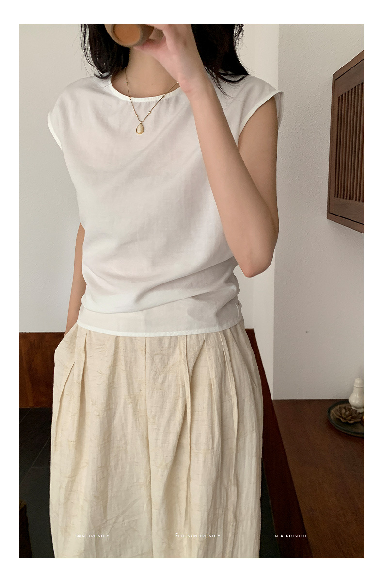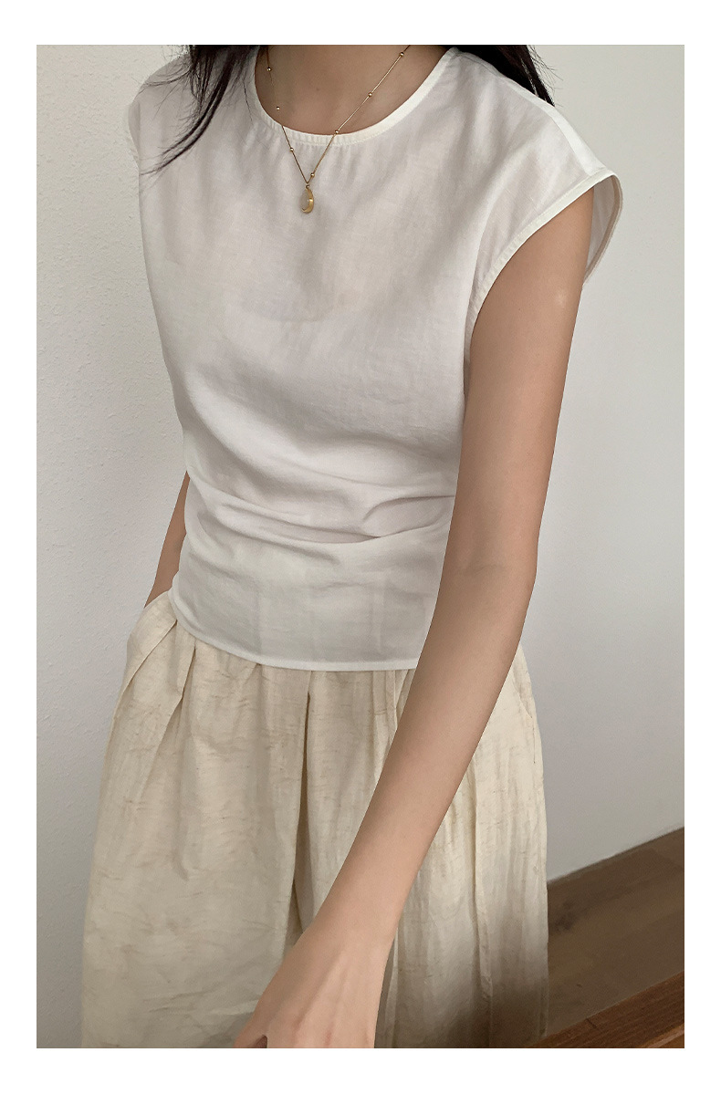Behind the shirt is the focus of linen Tencel simple shirt women s temperament short sleeve design feeling small fly sleeve shirt