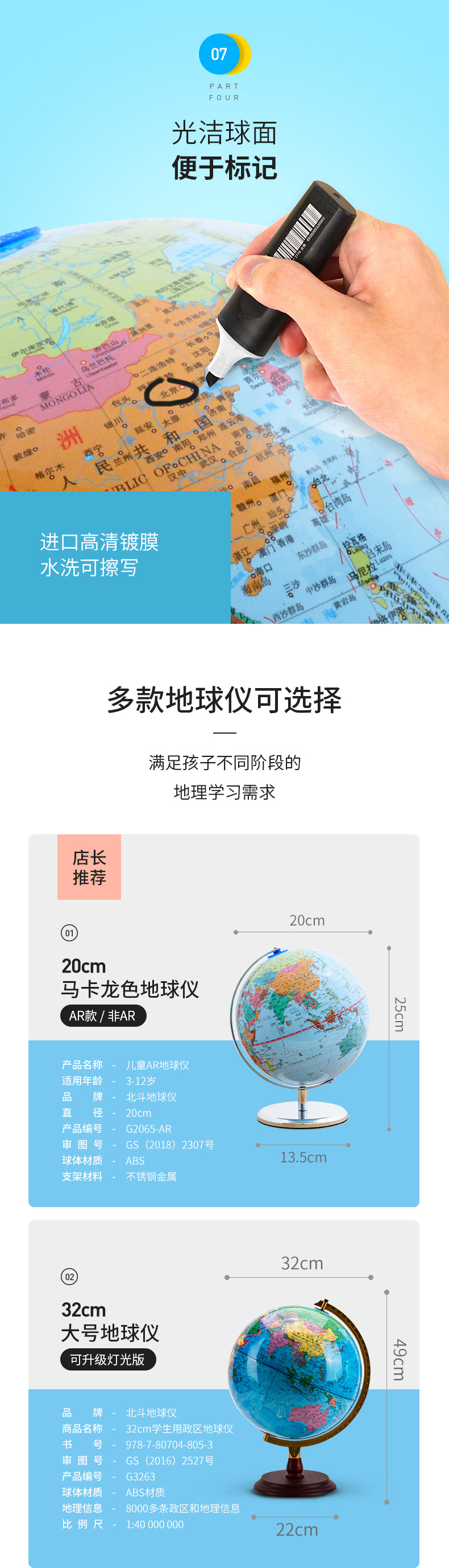 Beidou 20cm Macaron AR Globe Large Student Geography Teaching Equipment Tools Globe Wholesale