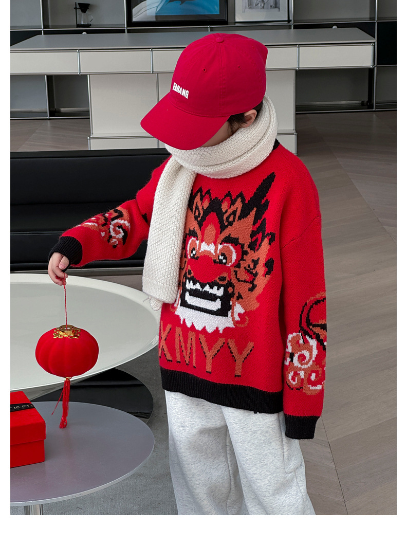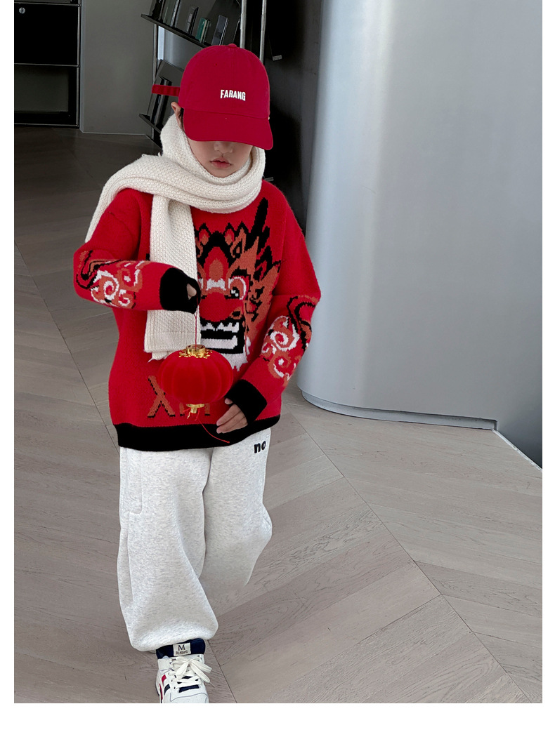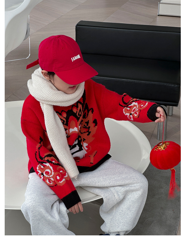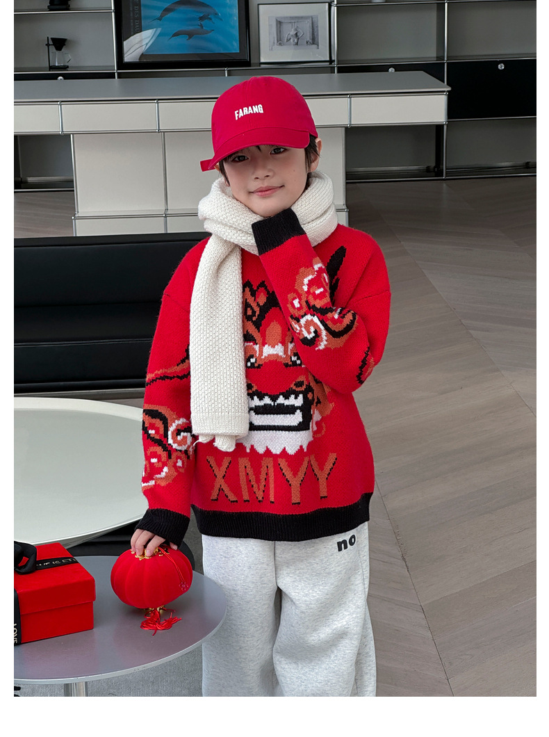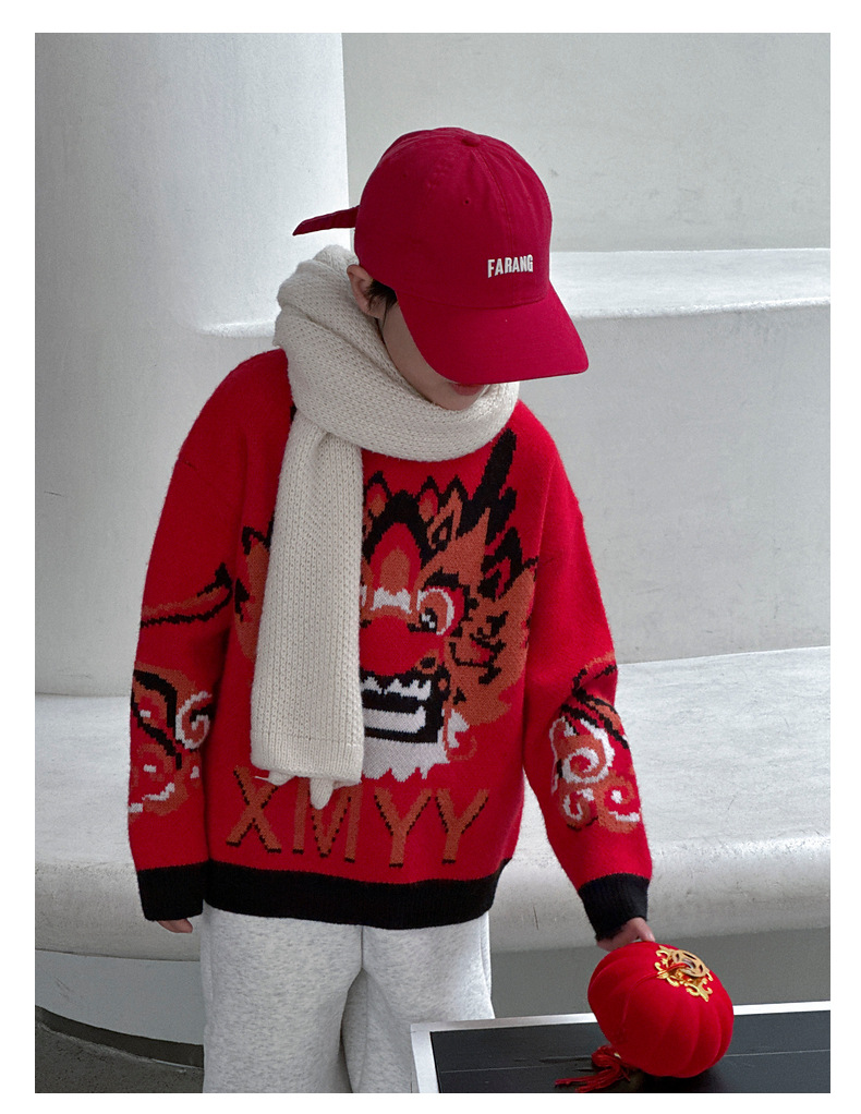 Benmingnian Chinese style Red Sweater for Boys and Girls Panda Yuanyuan 2024 Fashionable Thickened Children s Sweater