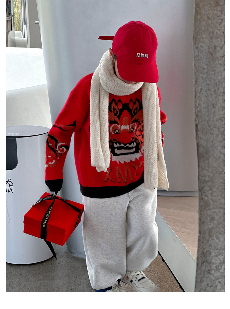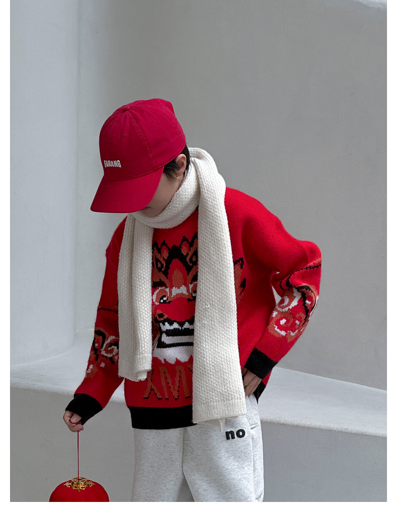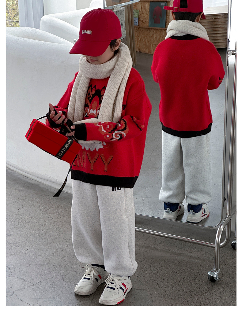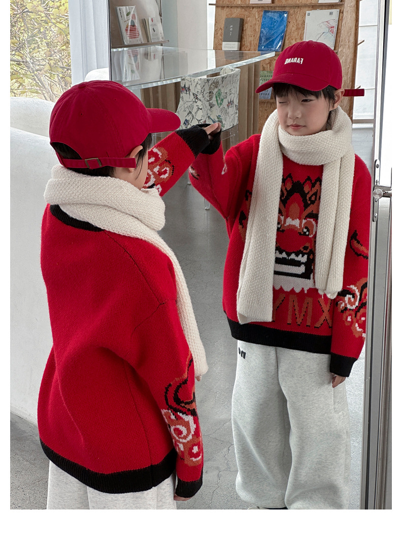 Benmingnian Chinese style Red Sweater for Boys and Girls Panda Yuanyuan 2024 Fashionable Thickened Children s Sweater