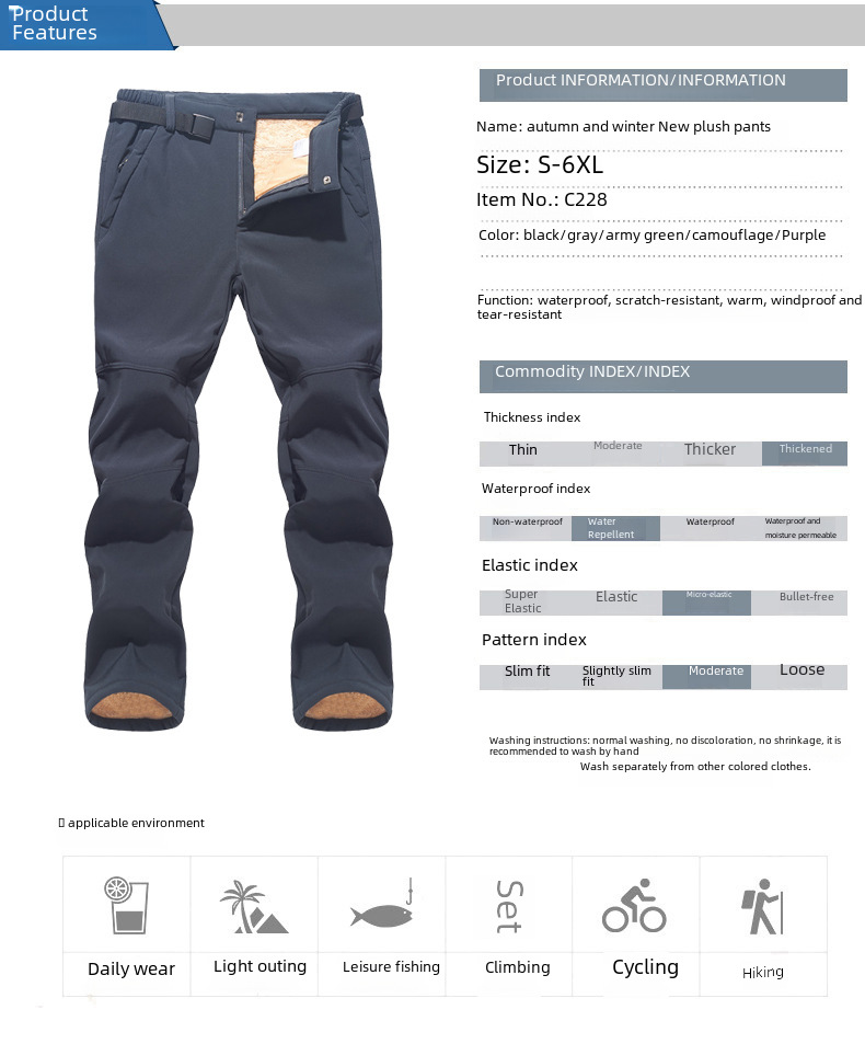 Berber fleece pants men and women couple winter plush outdoor waterproof windproof thickened mountaineering soft shell pants