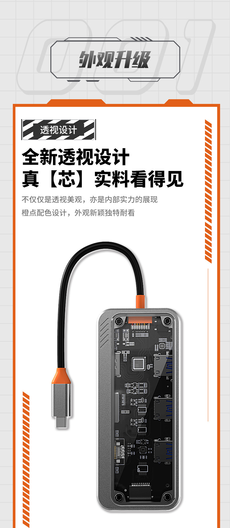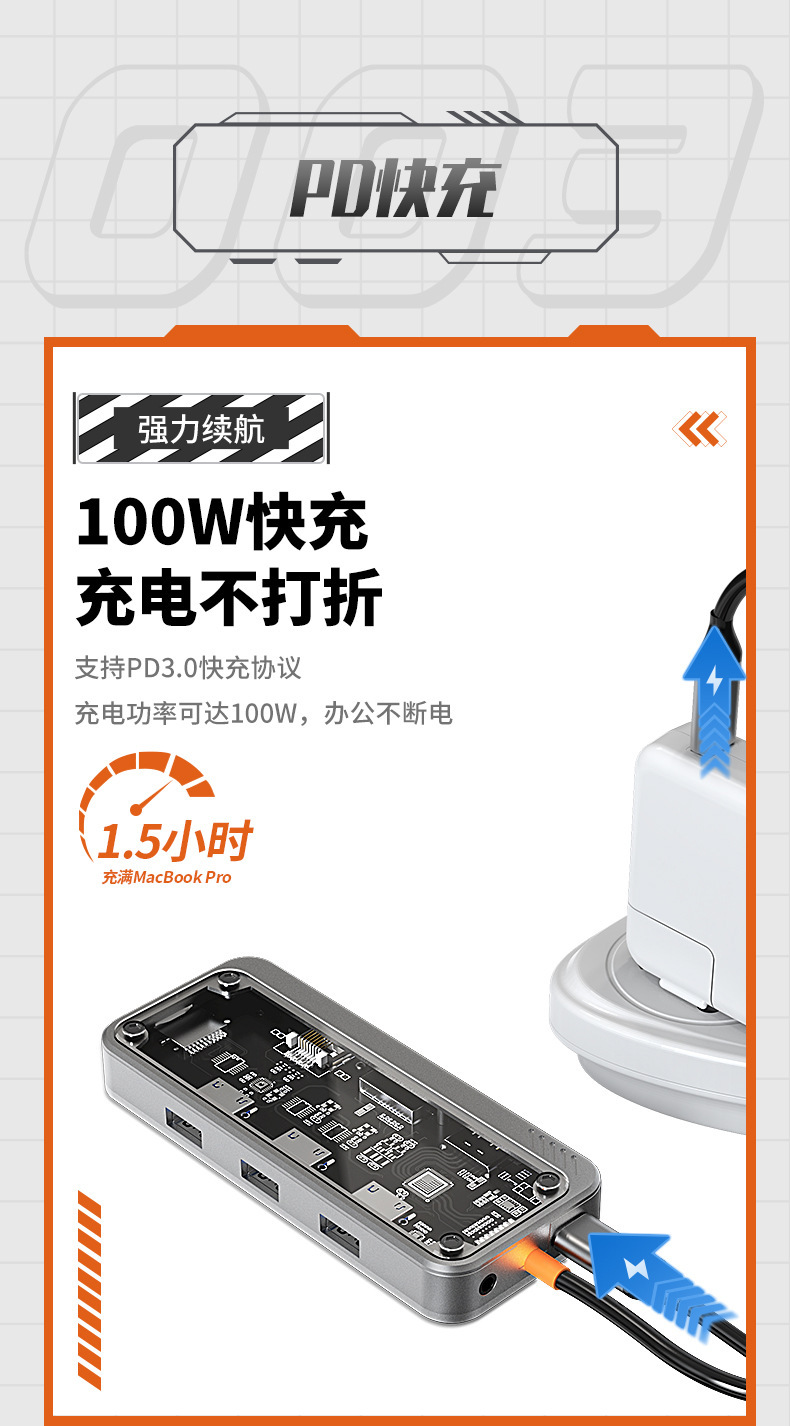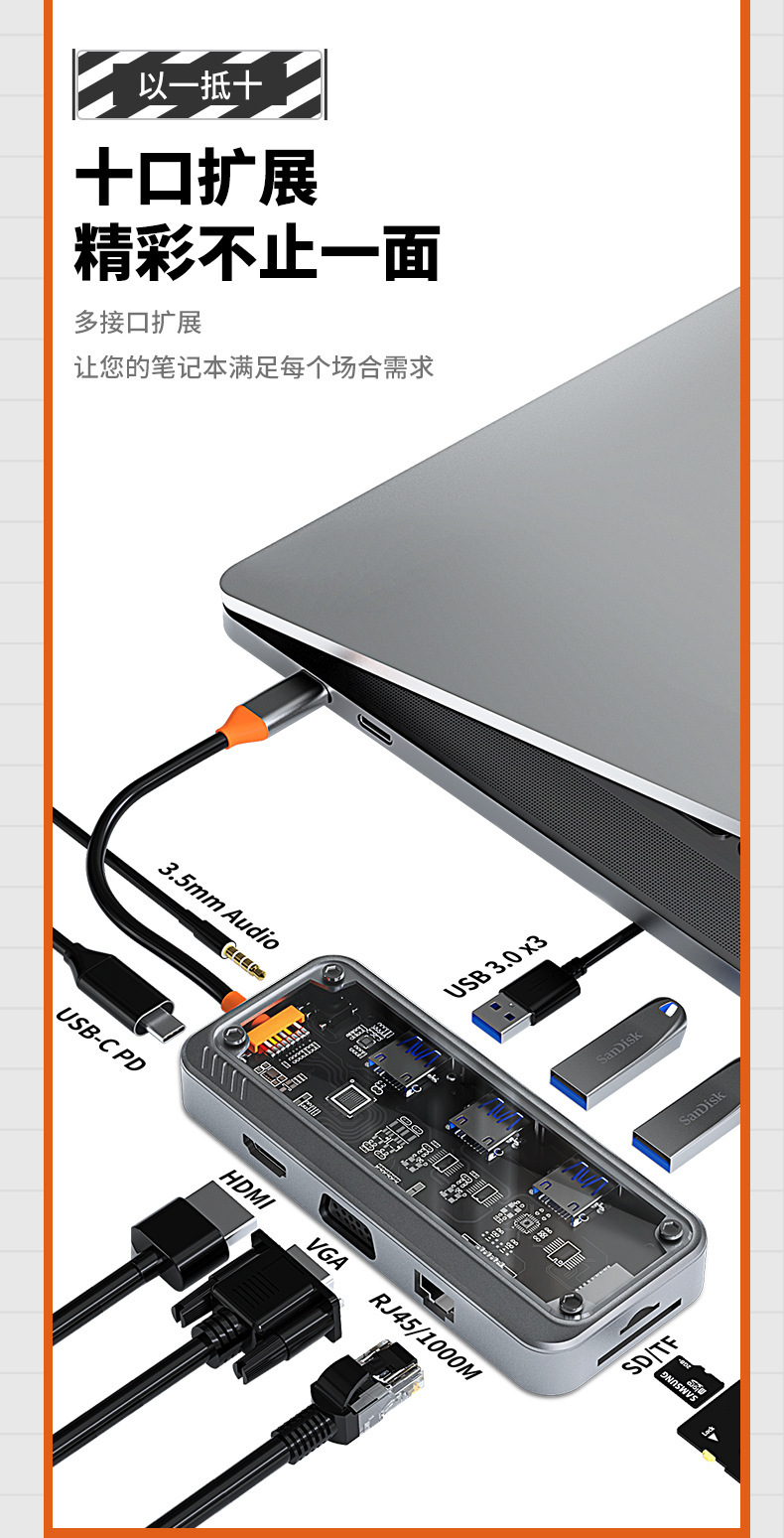 Bexis transparent type c docking station usbhub hub USB3.0 Gigabit docking station RJ45 extender