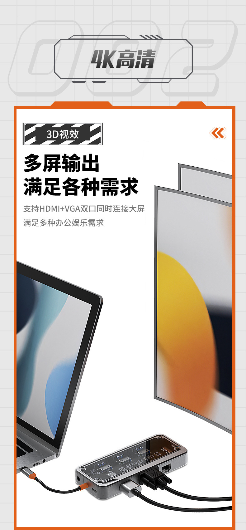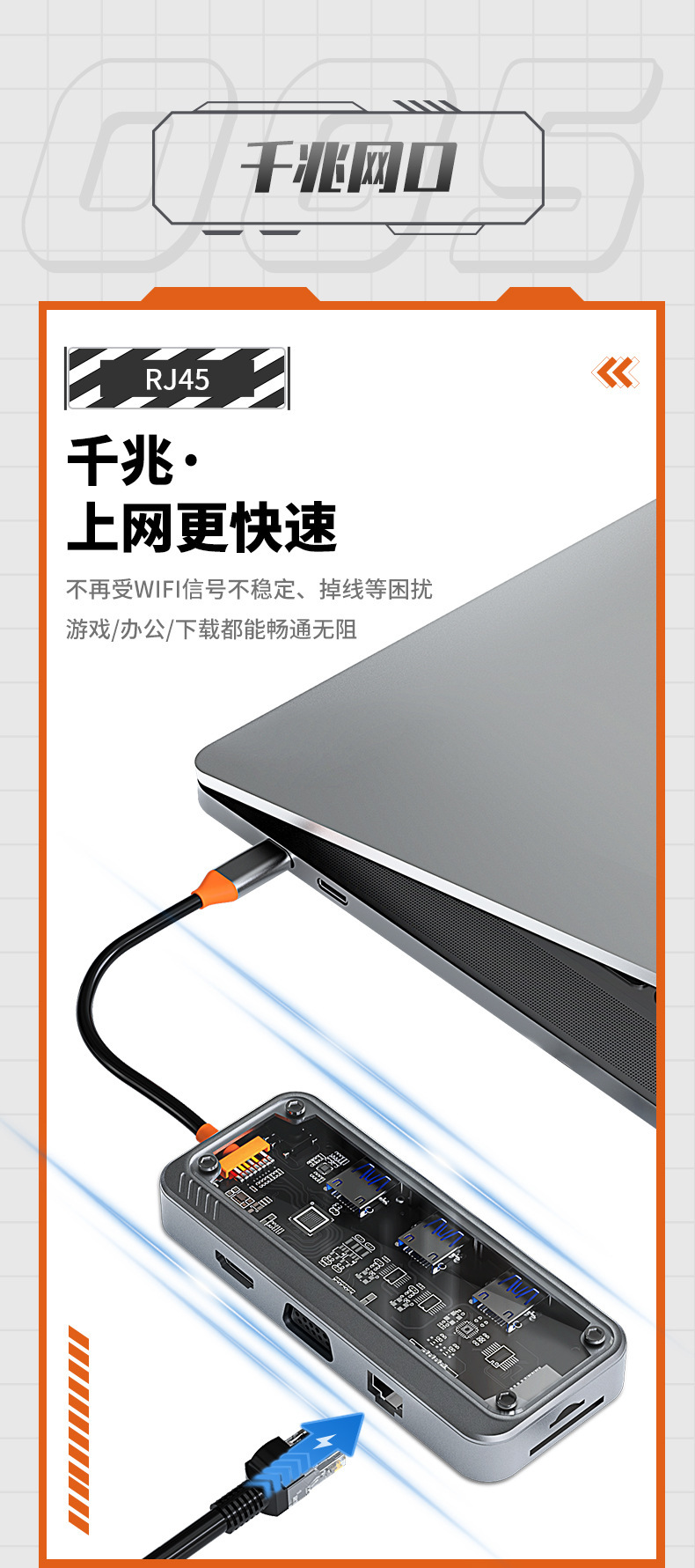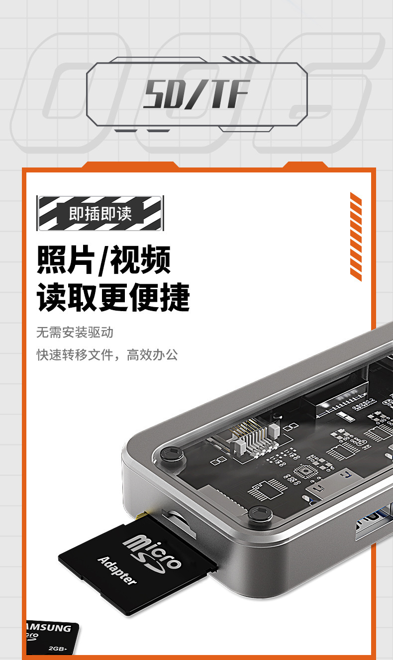 Bexis transparent type c docking station usbhub hub USB3.0 Gigabit docking station RJ45 extender