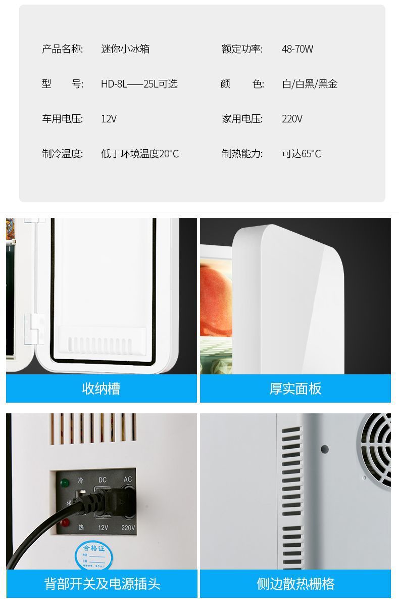 Bingmi 8L Mini Refrigerator Small Household Dormitory Single Door Refrigeration Car Home Dual Use Car Refrigerator