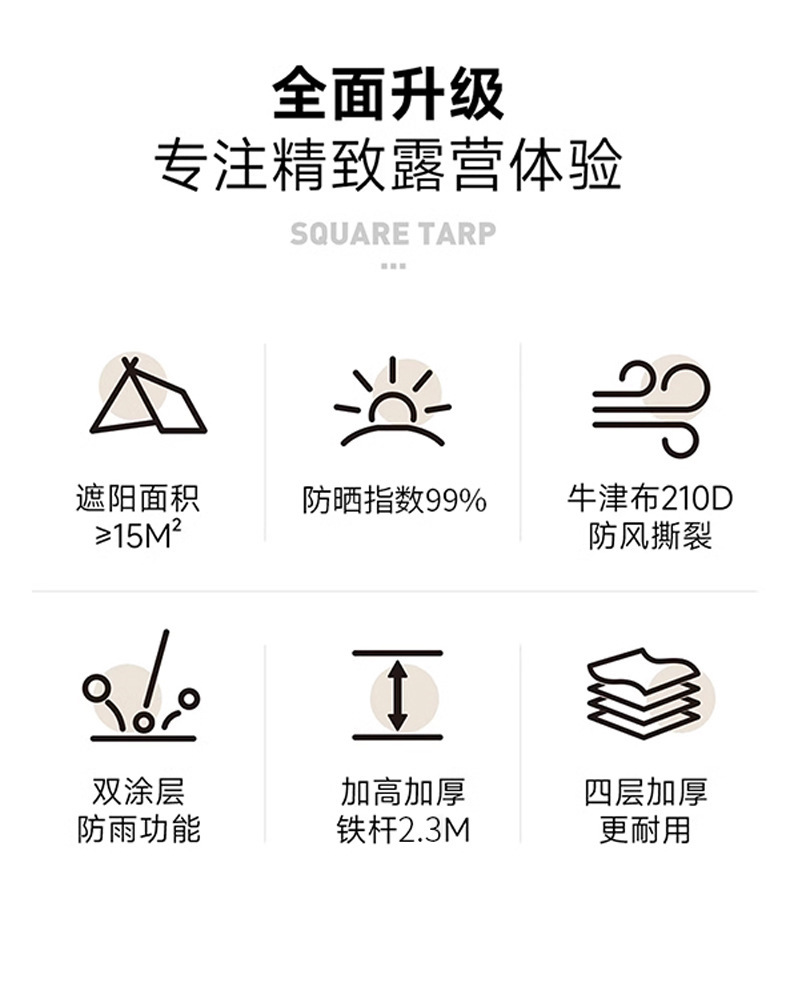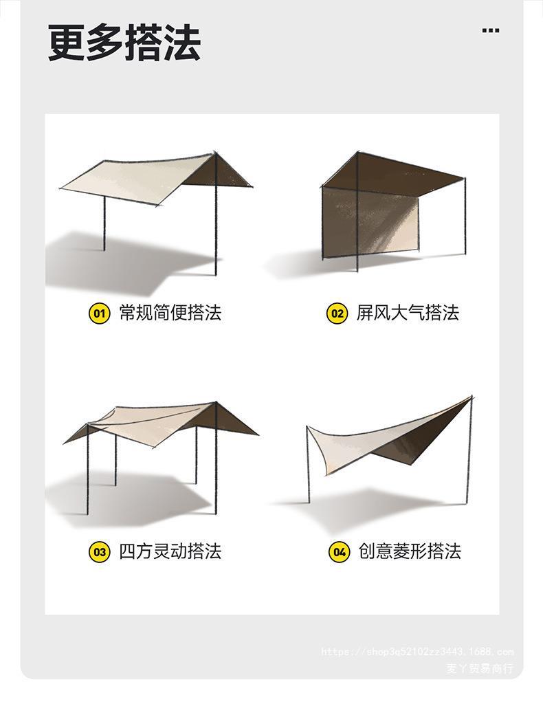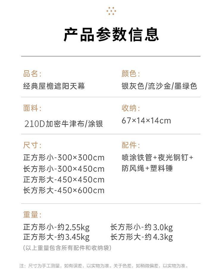- Quicksand gold [4.5M * 6M] 6 layers of silver-coated sunscreen-can accommodate 22 people