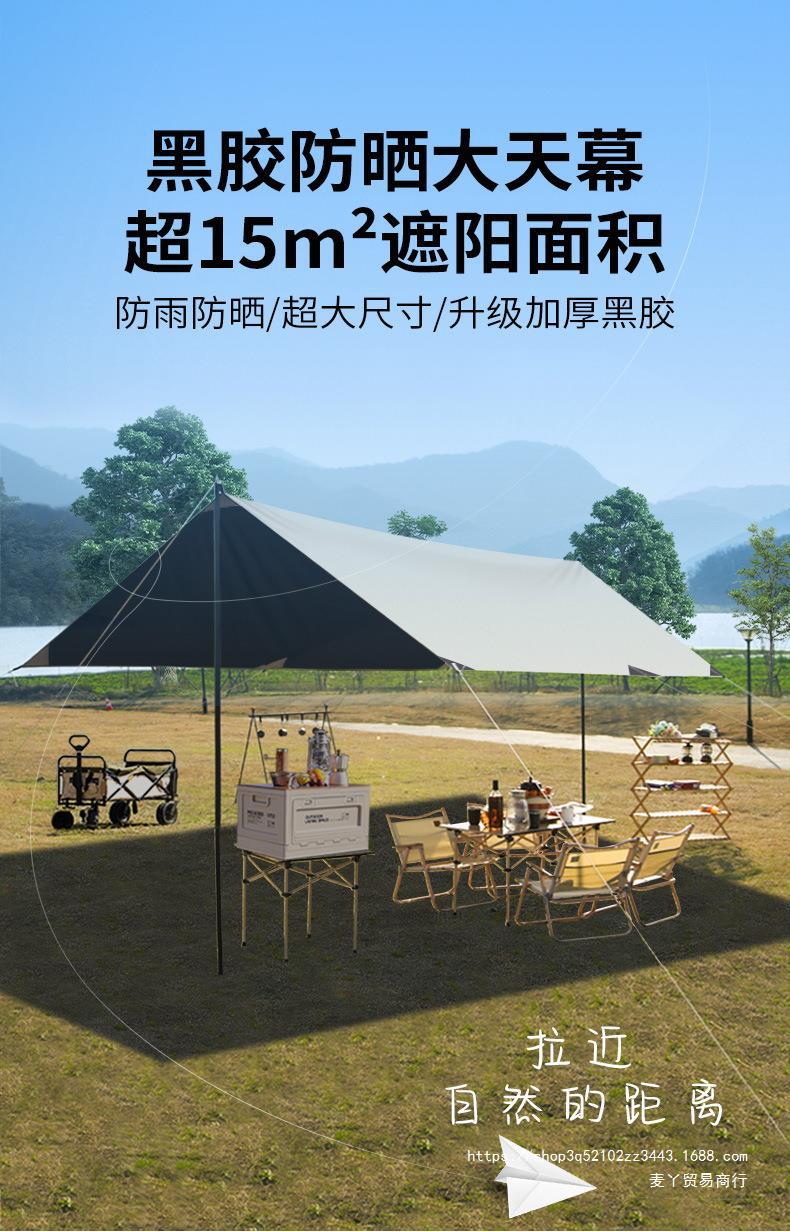 Black Rubber Camping Awning Outdoor Canopy Tent Camping Portable Silver coated Sunscreen Rainproof Pergola Butterfly Hexagon