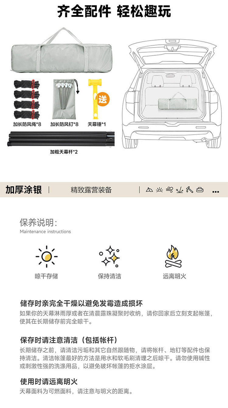 - Silver gray [3M * 4.5M] 5 layers of silver sunscreen-can accommodate 5-10 people
