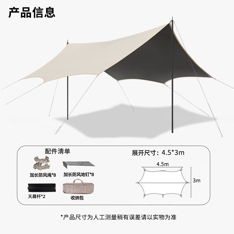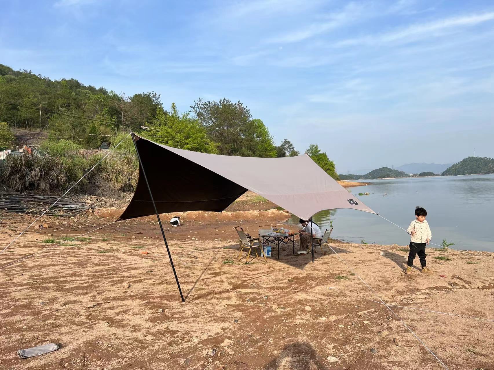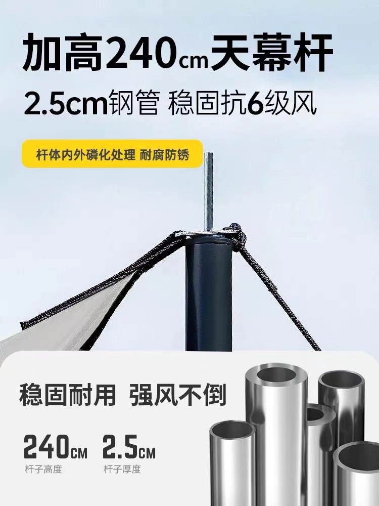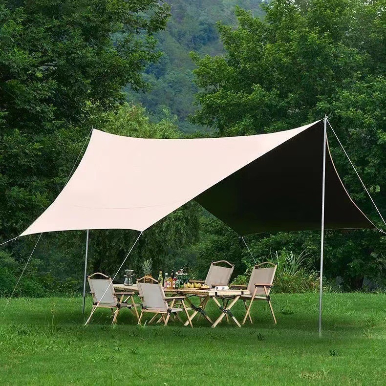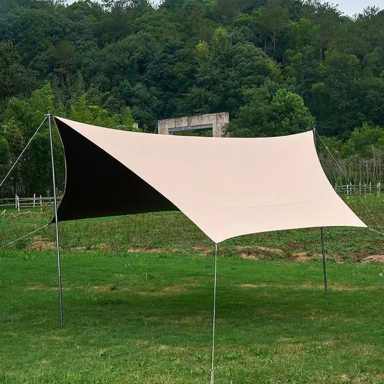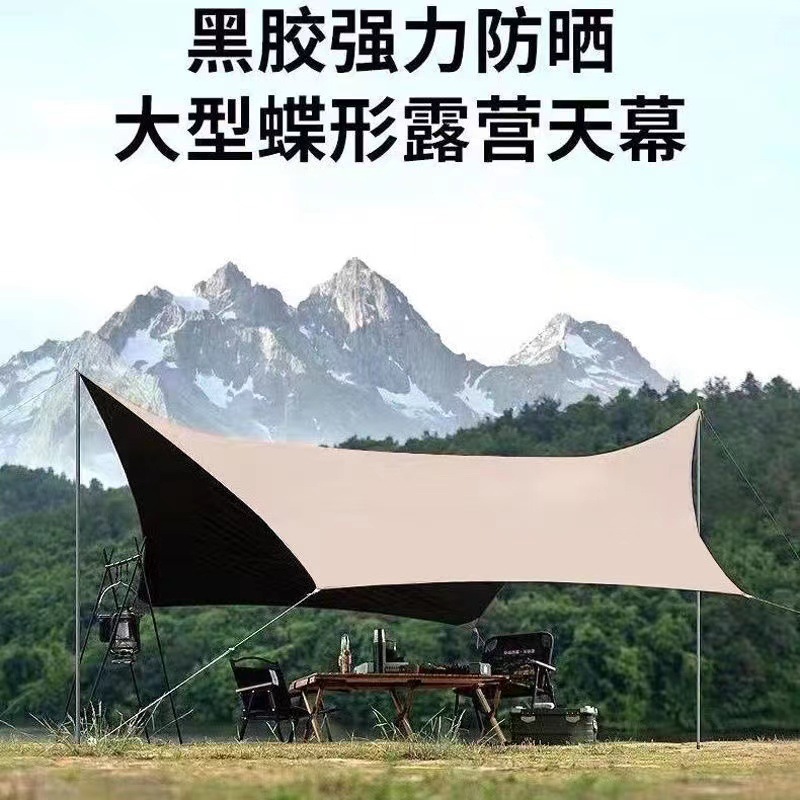 Black rubber canopy tent outdoor camping equipment full set camping picnic sun protection large space hexagonal butterfly awning