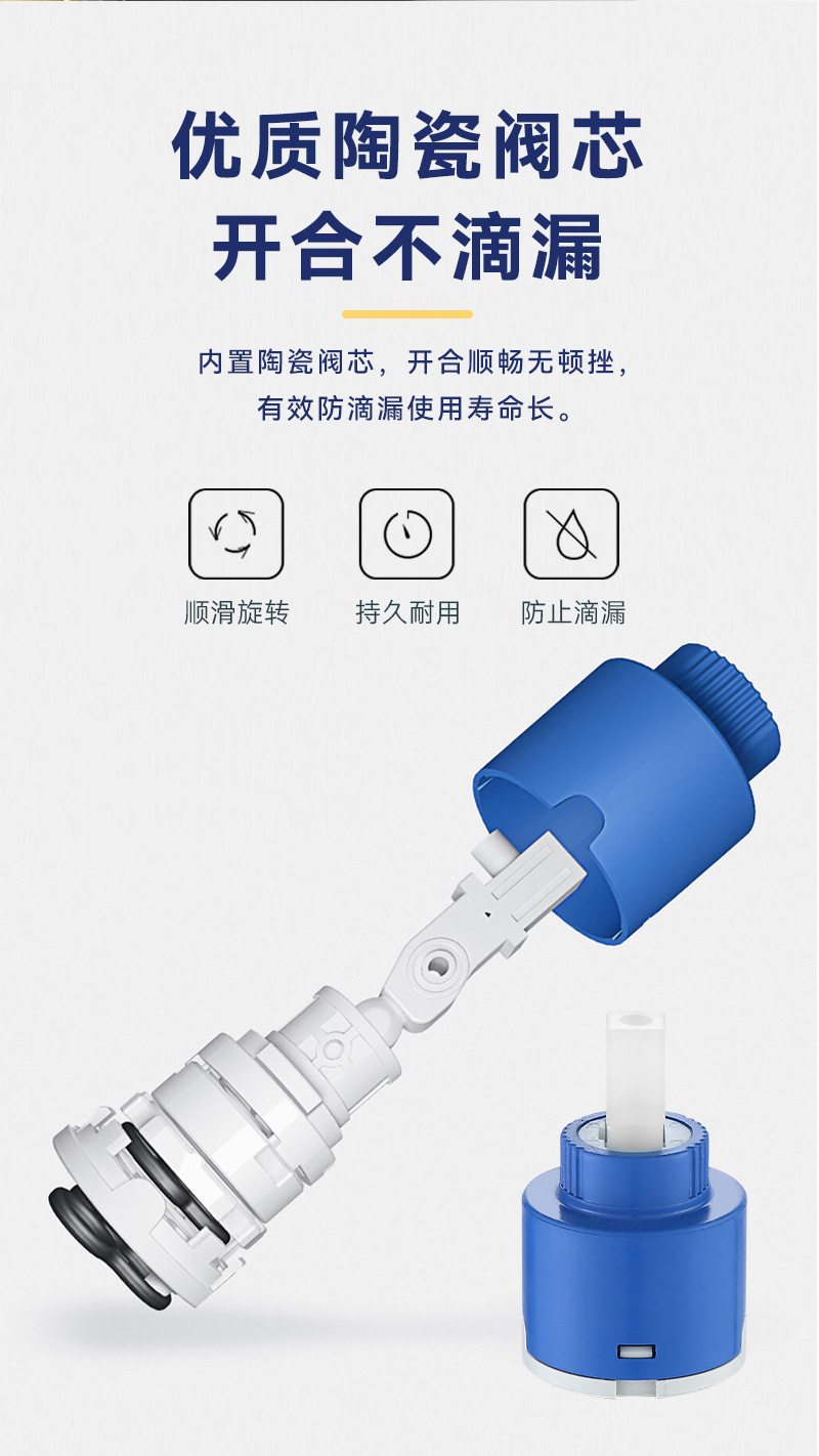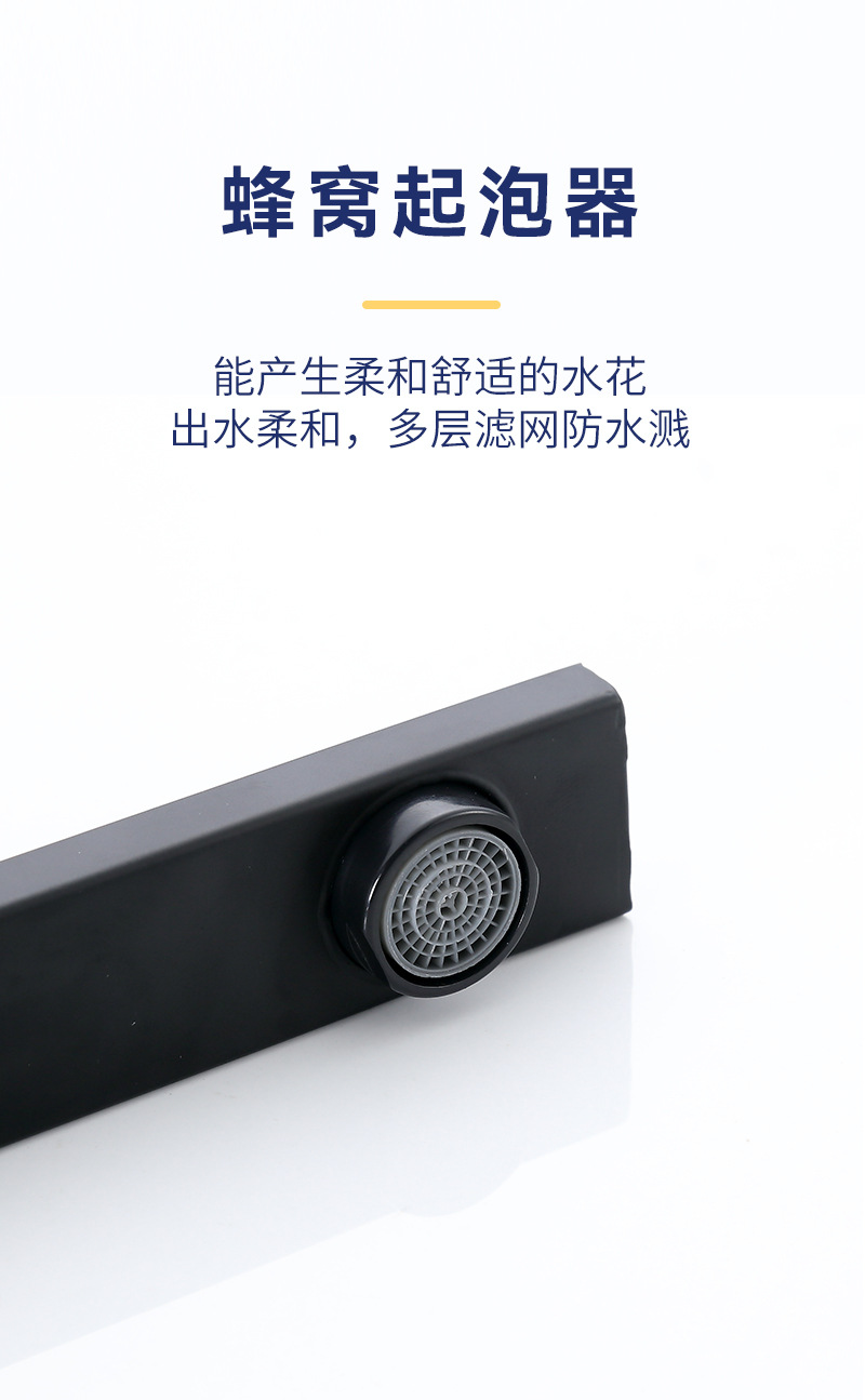 Black seven word flat tube hot and cold water mixing faucet kitchen household rotatable splash proof faucet factory wholesale