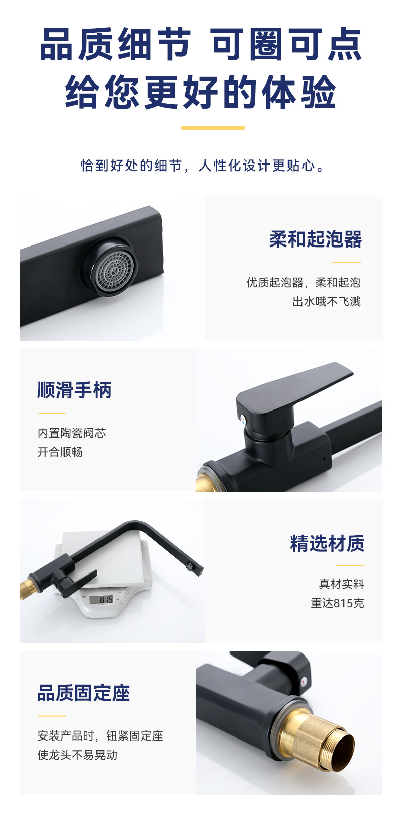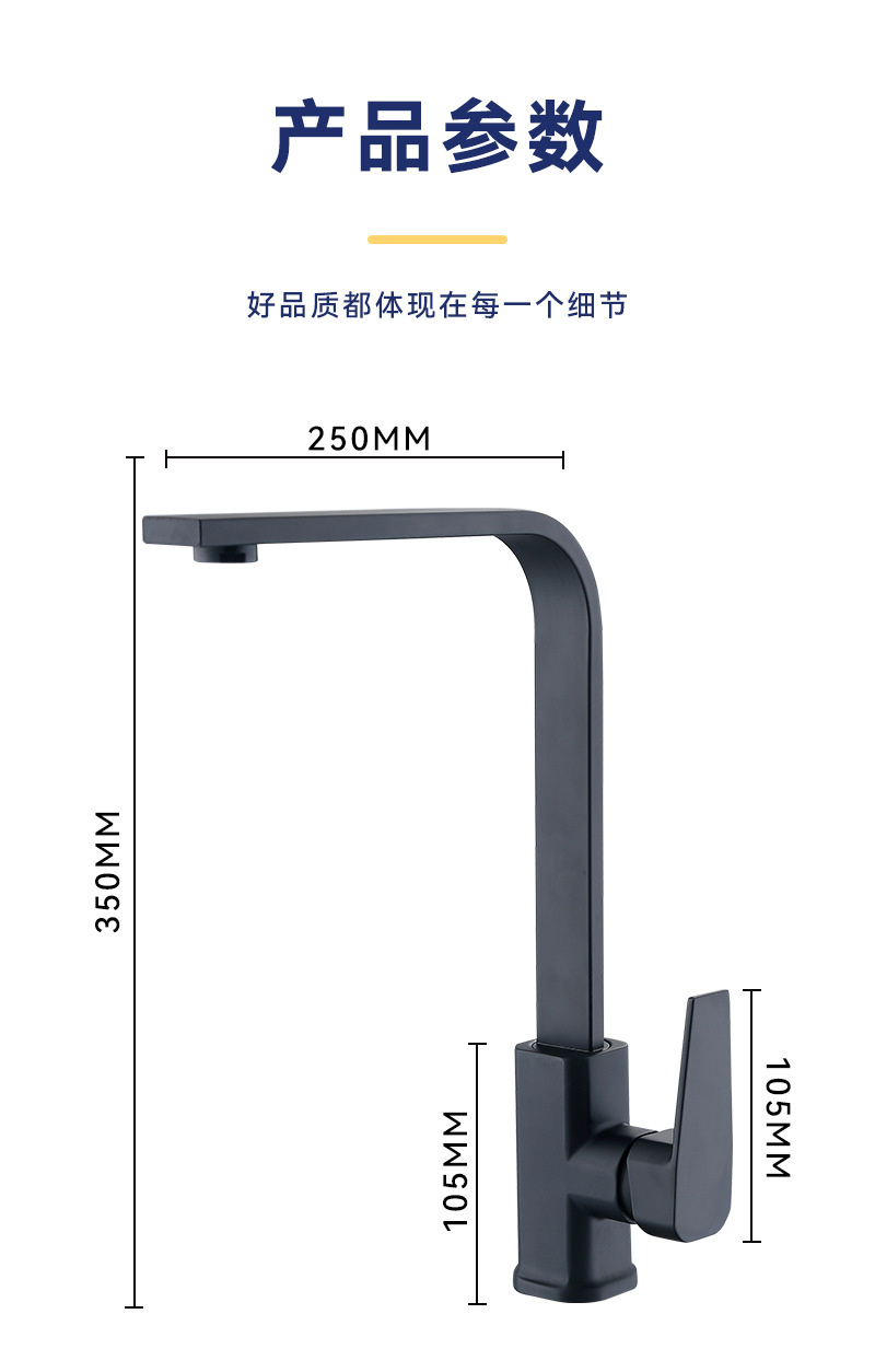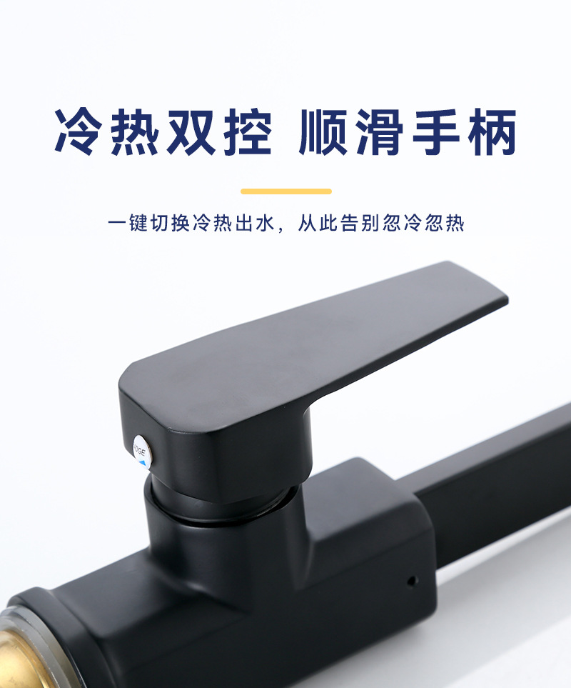 - Hot and cold mixed water + alloy + black + rotatable + large 7-word flat tube + kitchen faucet (excluding hot and cold tube)