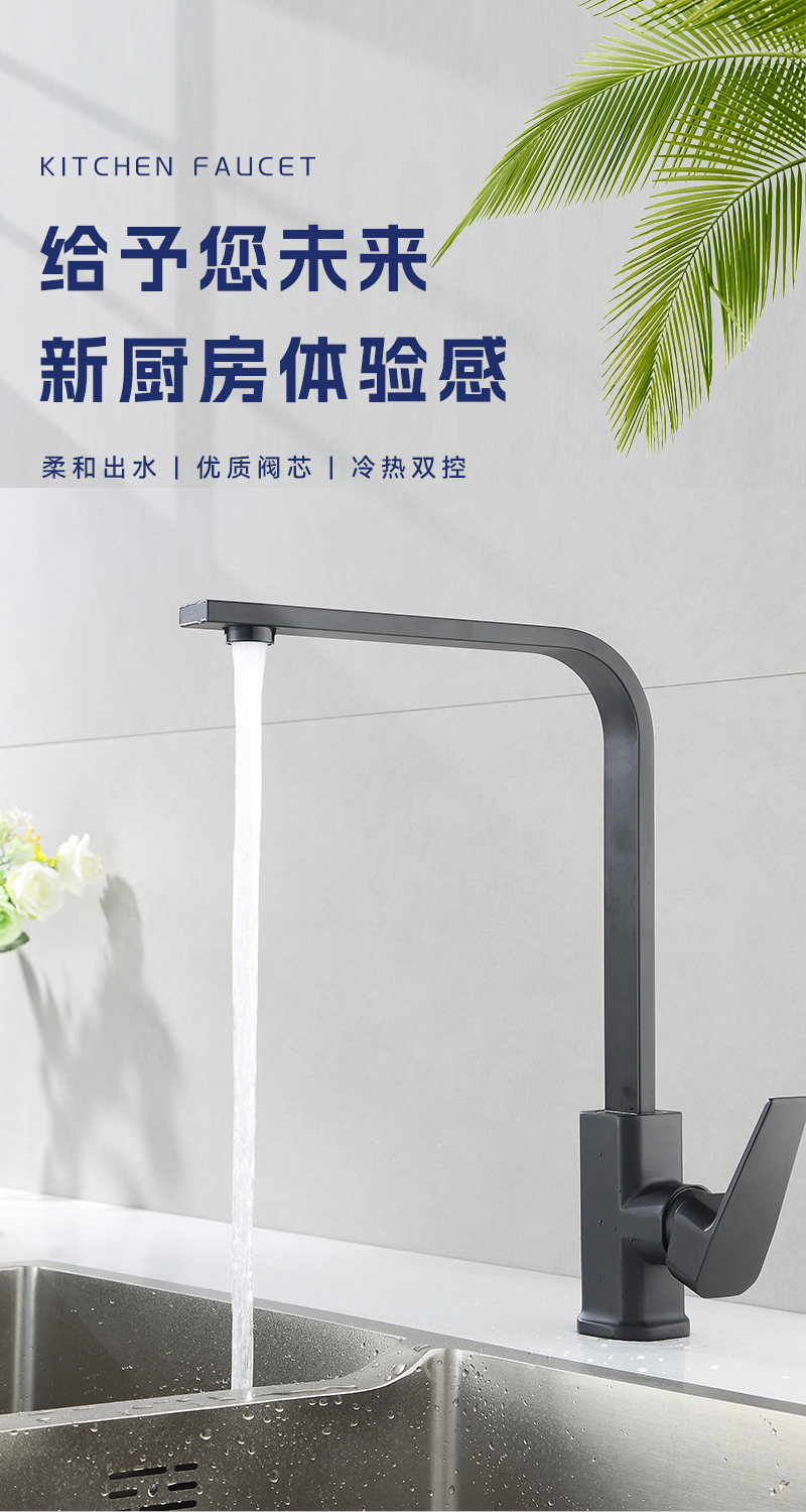 - Hot and cold mixed water alloy black rotatable large 7-shaped flat pipe kitchen faucet (including hot and cold pipes)