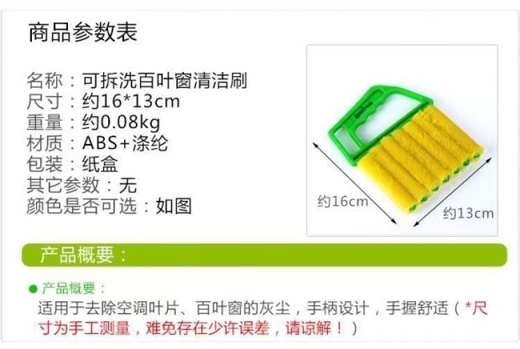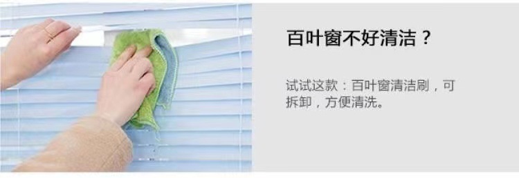产品介绍:一款适合清洁百叶窗的毛刷,不用拆卸纱窗,不用把水洒得满地都是,随时清洁,即可扫除灰尘。还可用来清洁百叶窗等有缝隙的物品,简单即时,让您的家时刻保持清洁