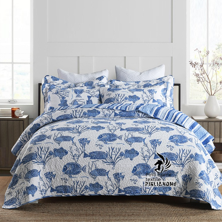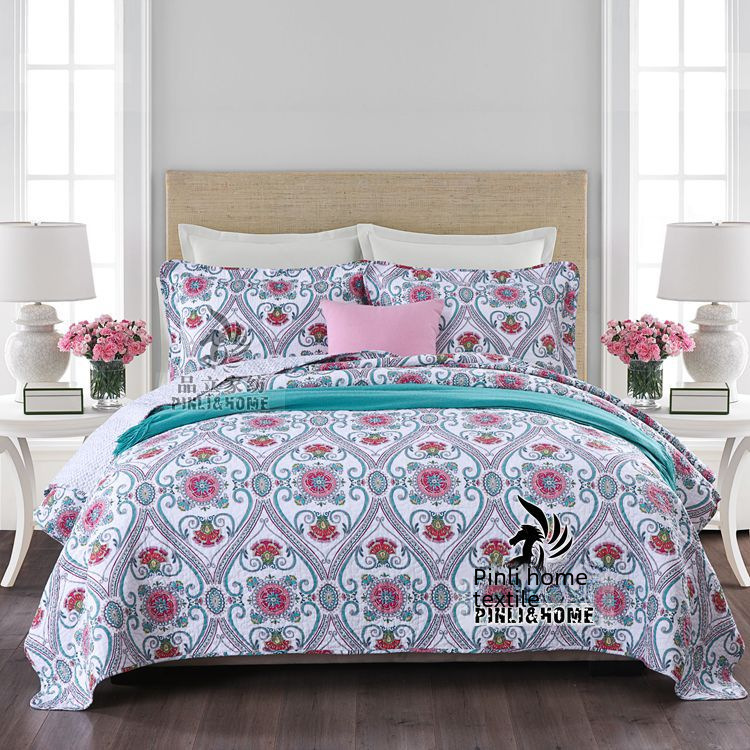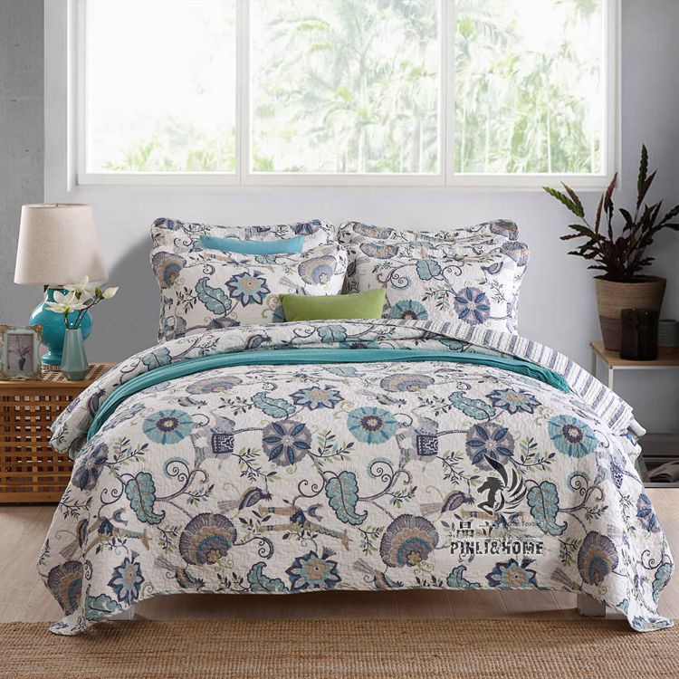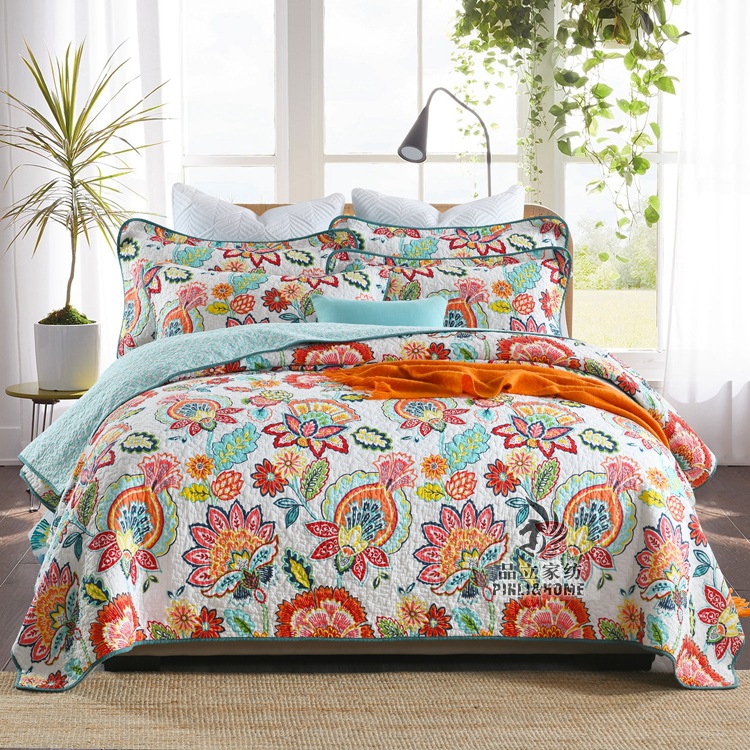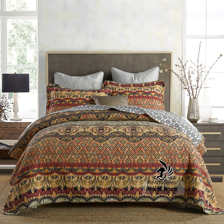 Bohemian Style Imitation Printing Bedding American Plain Double sided Pure Cotton Quilting Cover Three piece Set for Foreign Trade