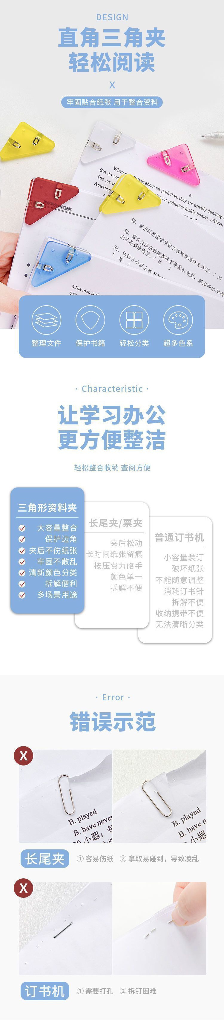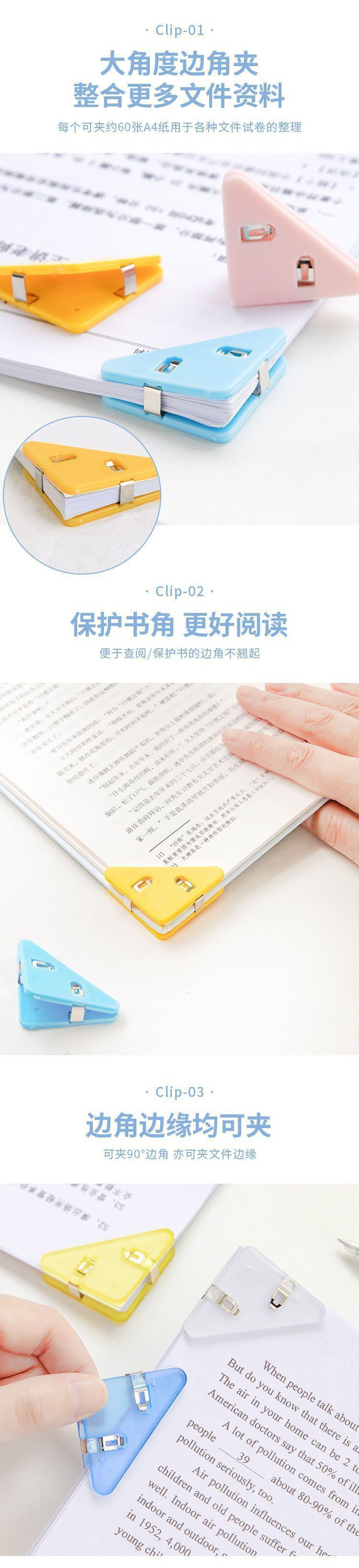 Book Corner clip triangle corner folder stationery clip tight test paper anti-curling book clip multifunctional corner
