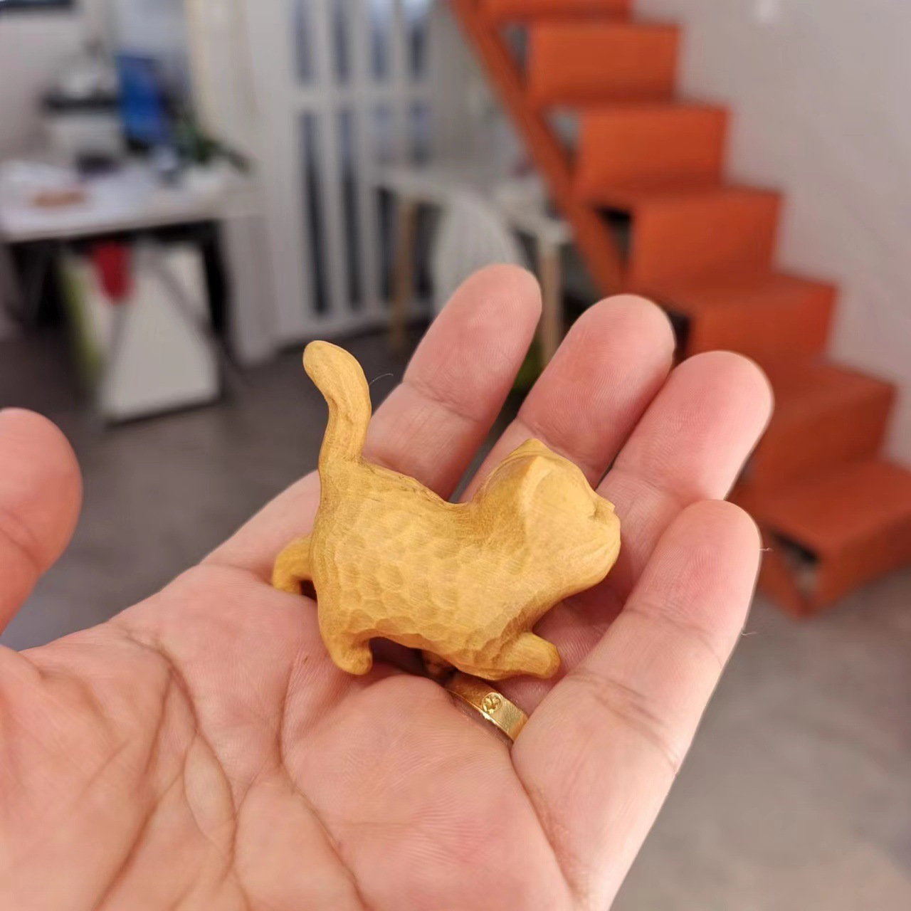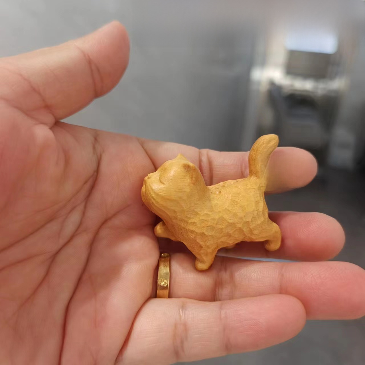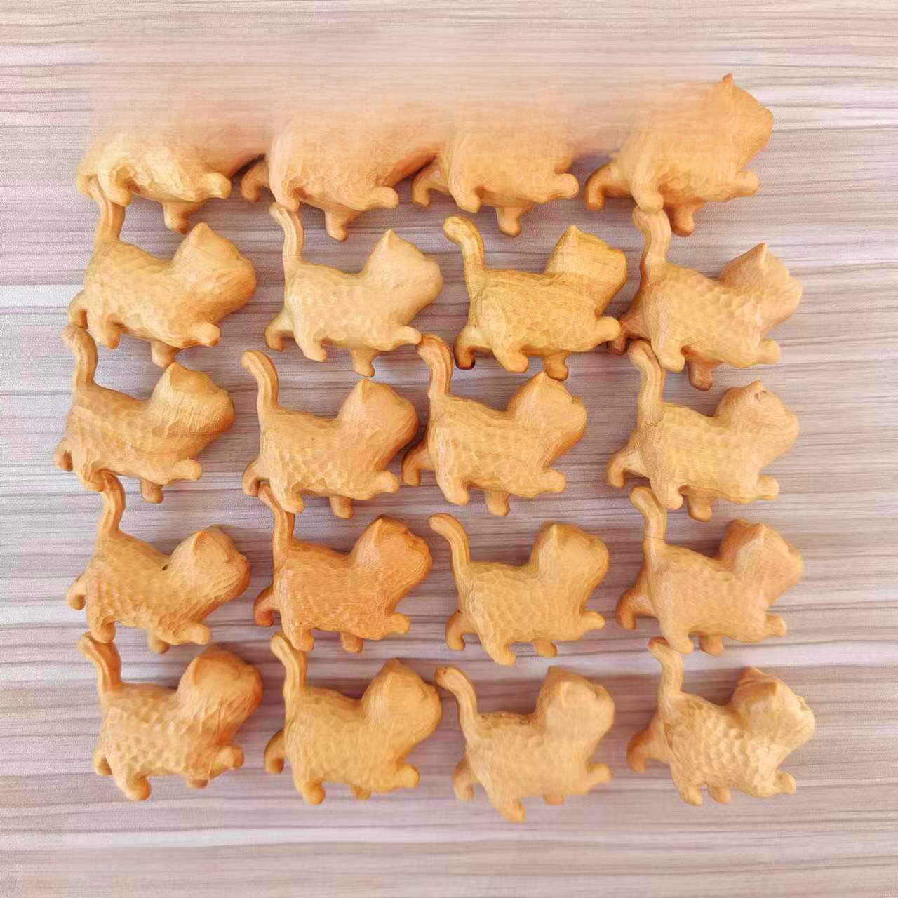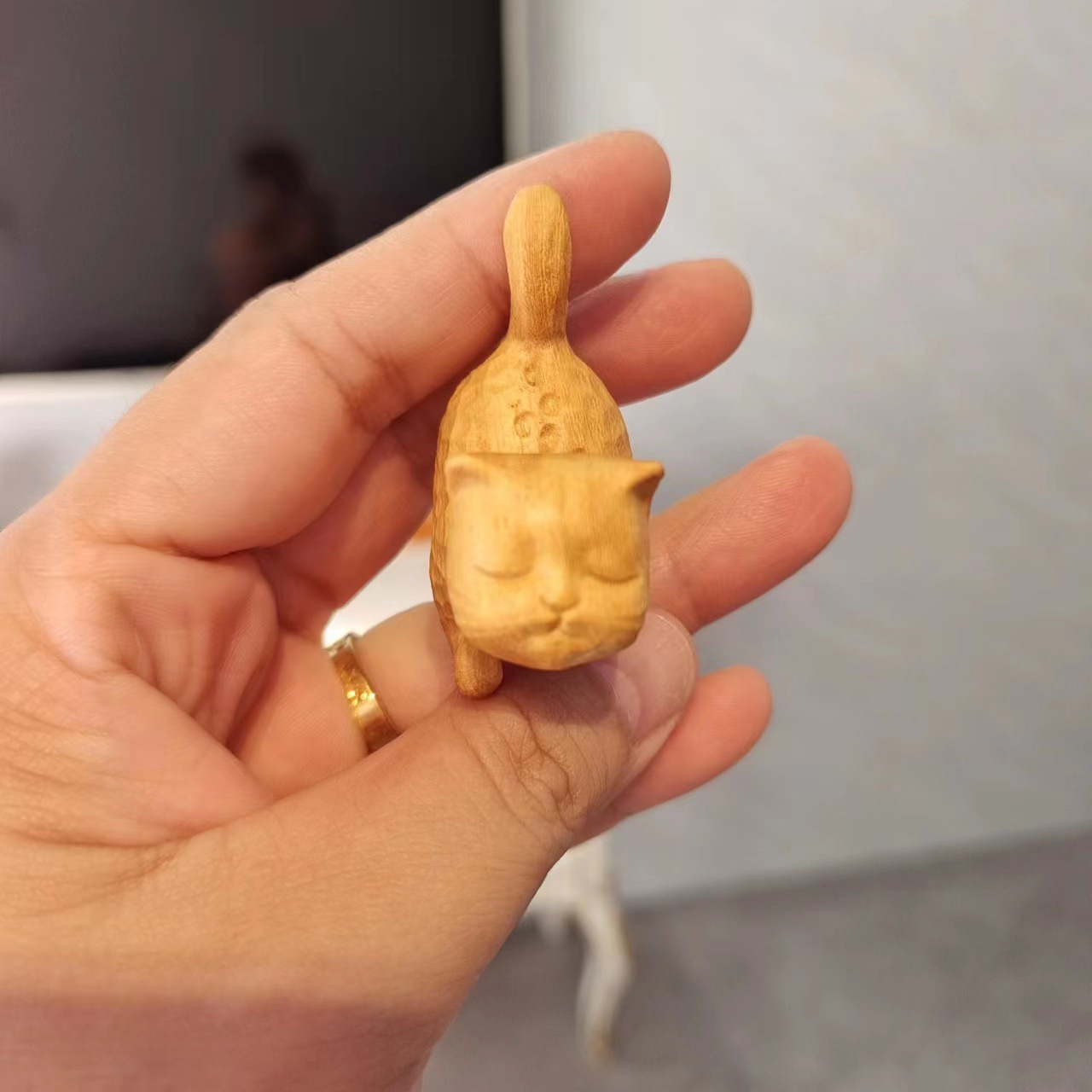 Boxwood carving kitten go to the windy place cat barley same cute handmade wood product gift ornaments