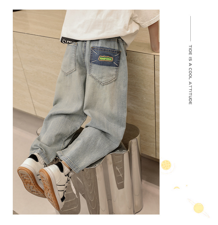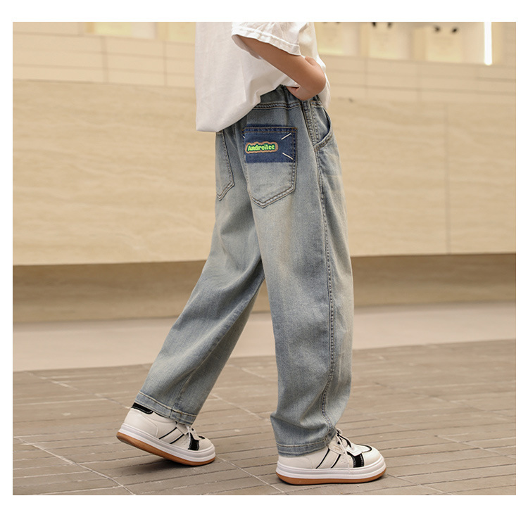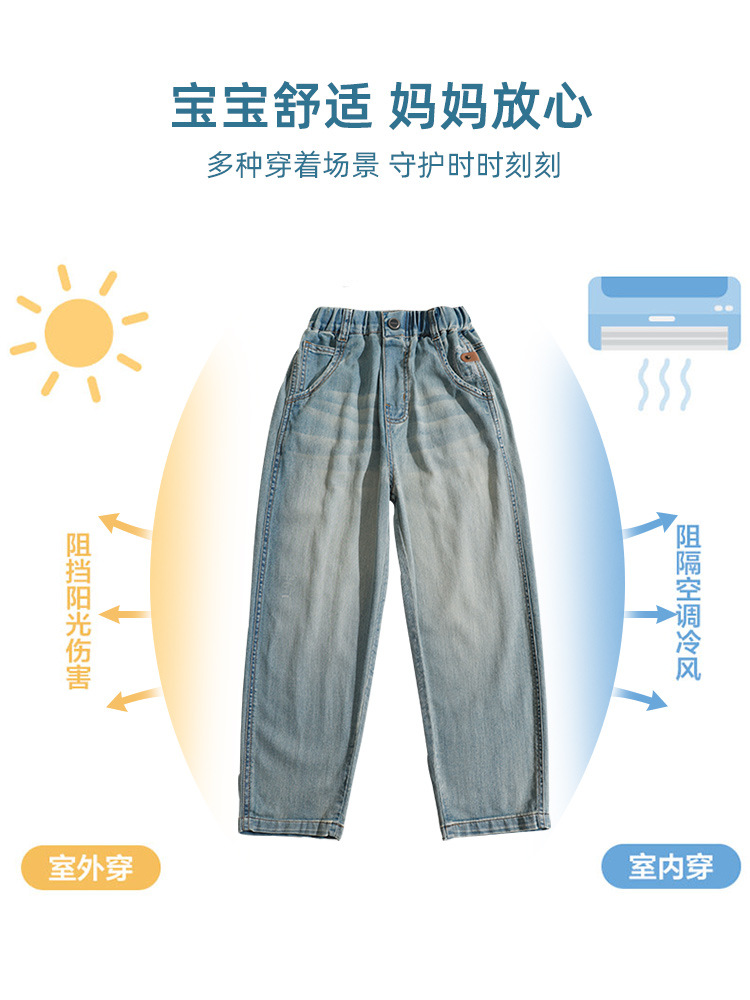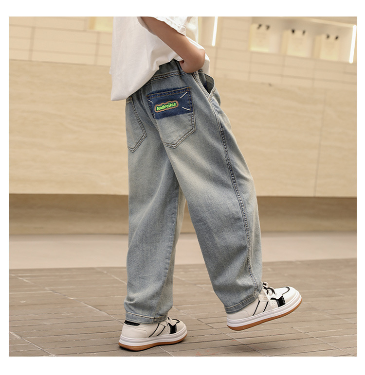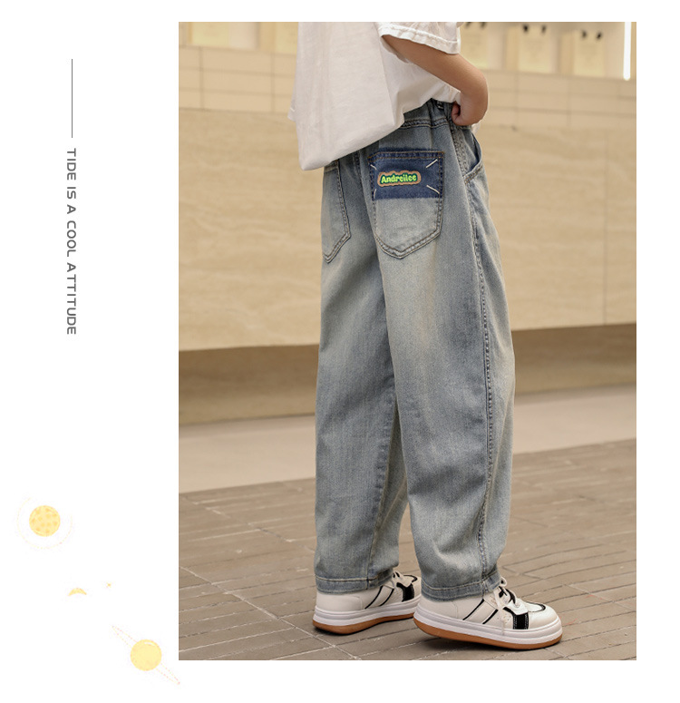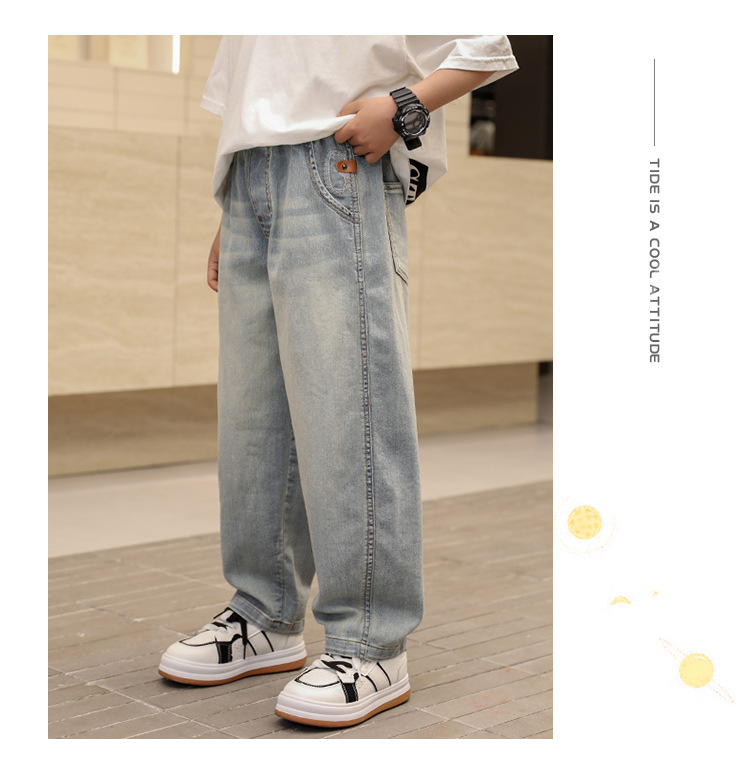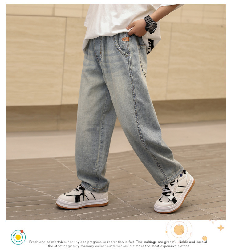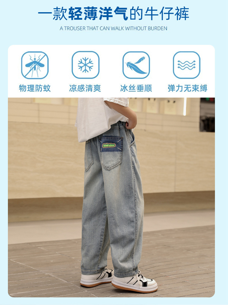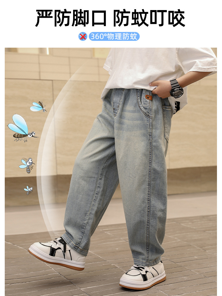 Boys Denim trousers middle and big children s pants thin 2024 Summer new children s loose casual mosquito proof pants summer