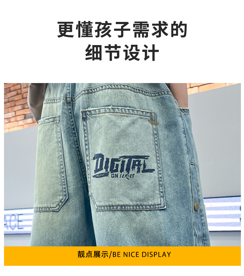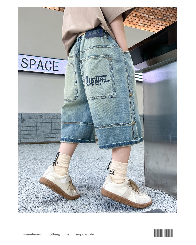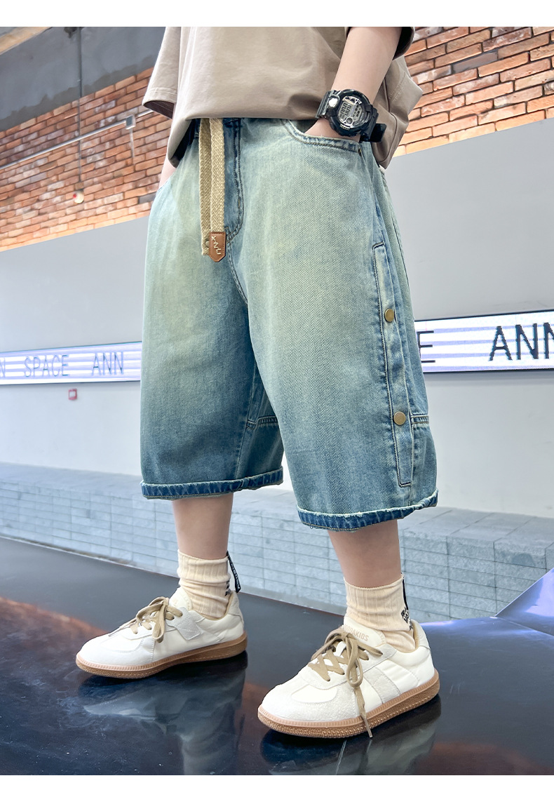 Boys Pants Summer Children s Denim Shorts 2024 New Mid Large Children s Summer Six point Pants Handsome Fashionable