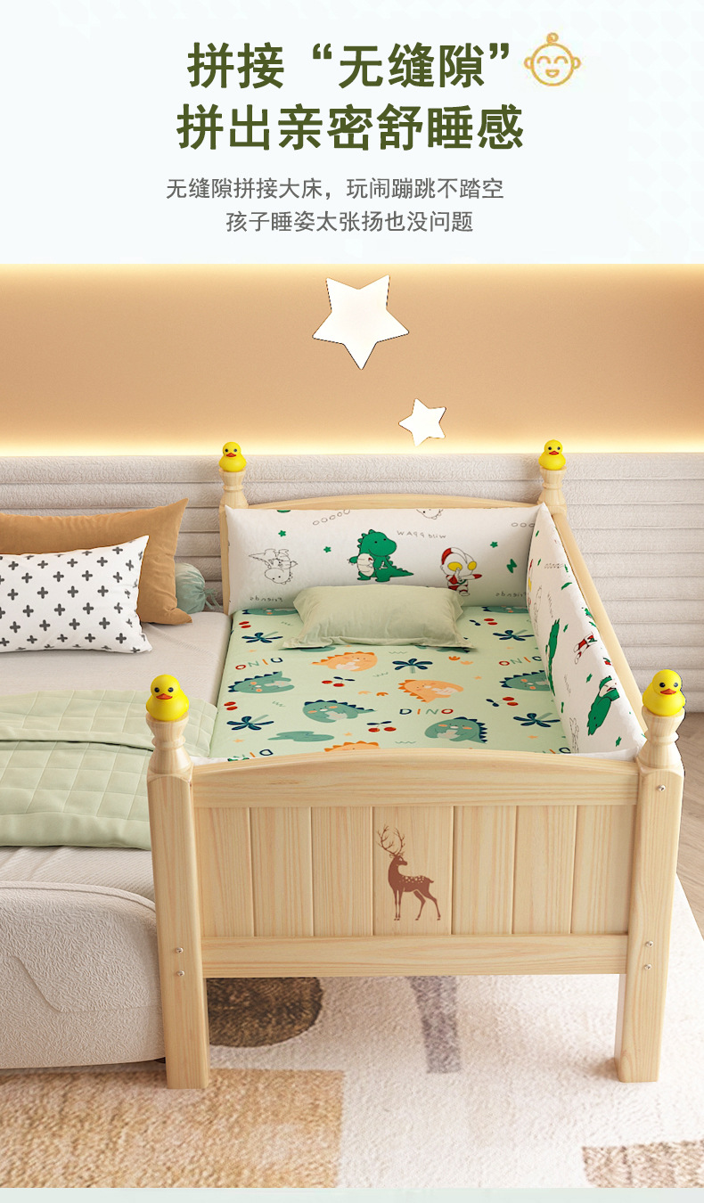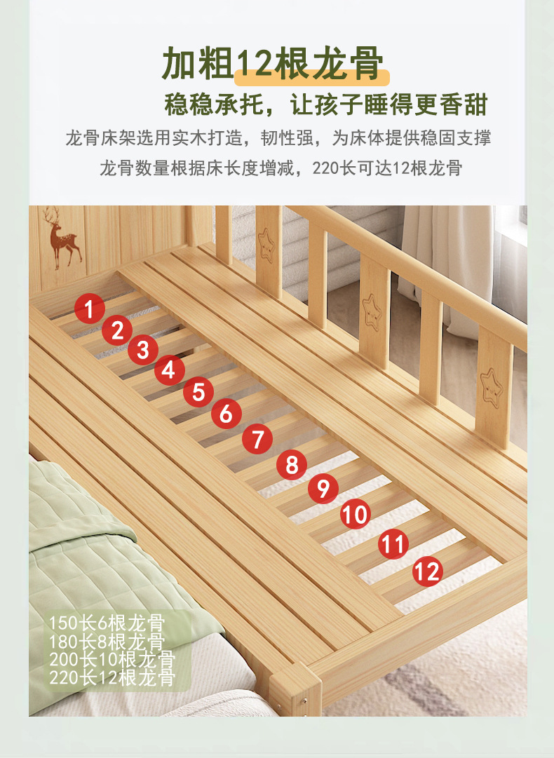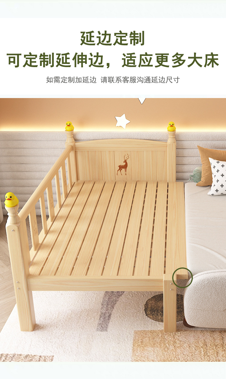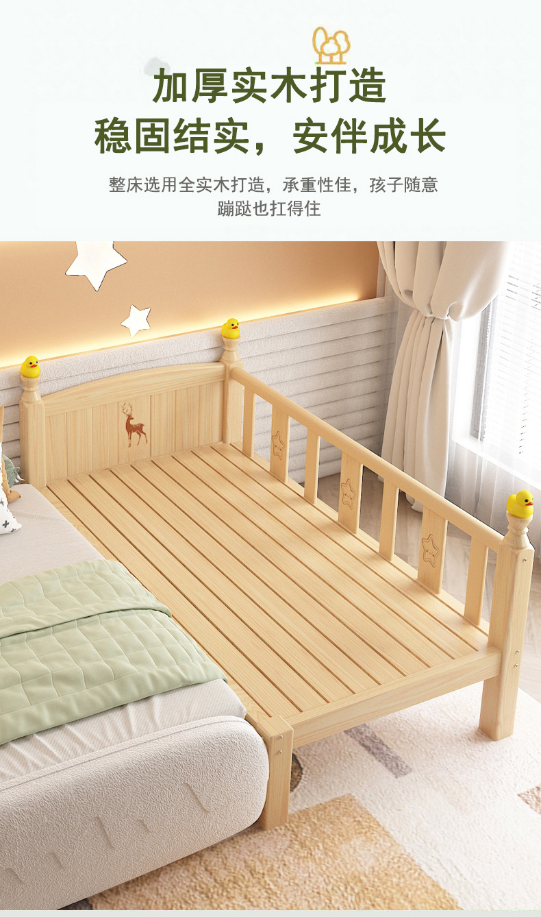Boys and Girls Princess Bed Single Bed Side Bed Widened Stitching Big Bed Solid Wood Children s Bed with Guardrail Small Bed Baby