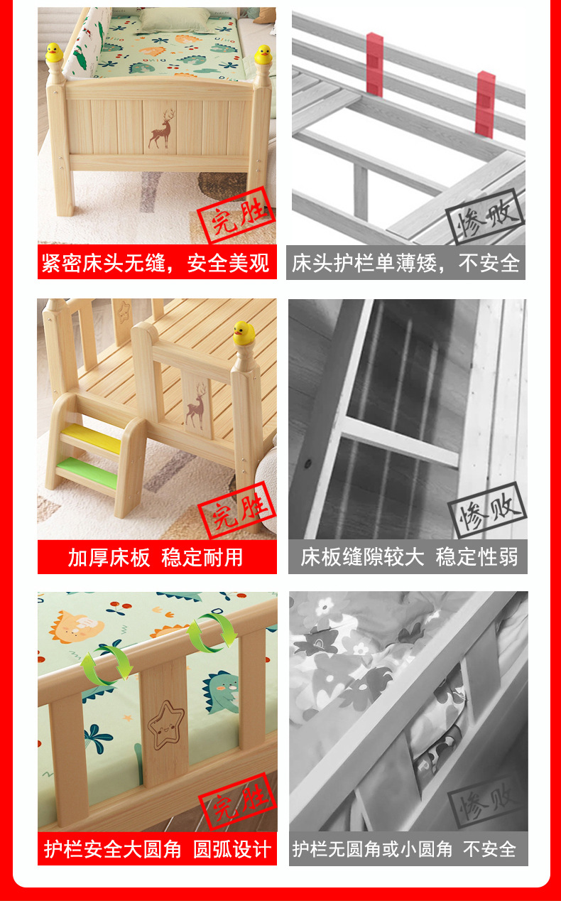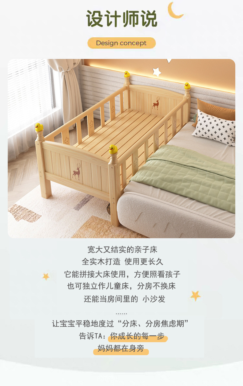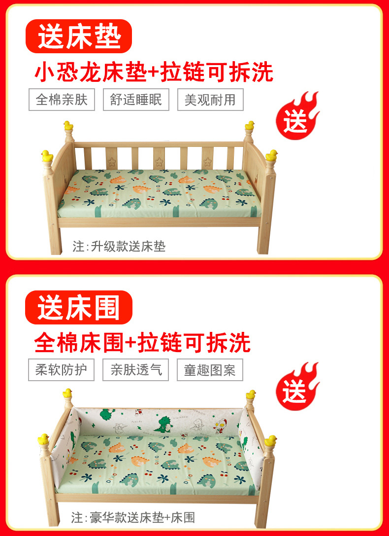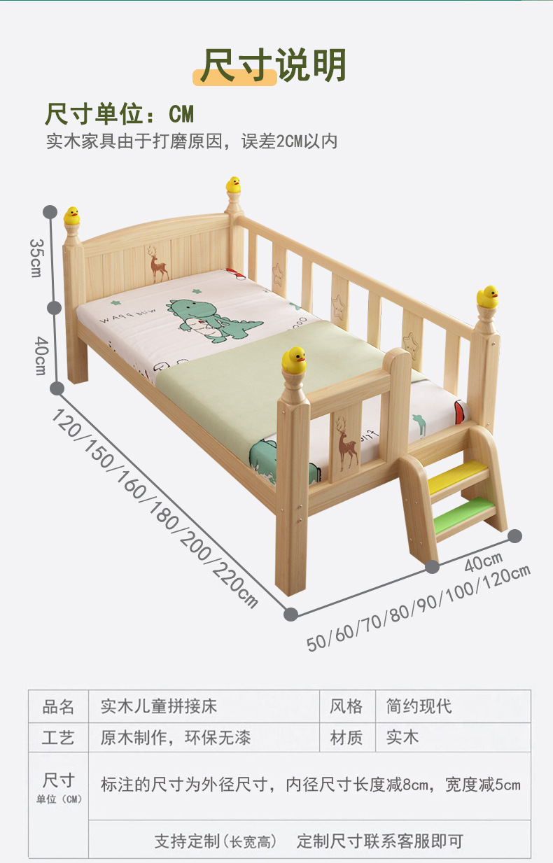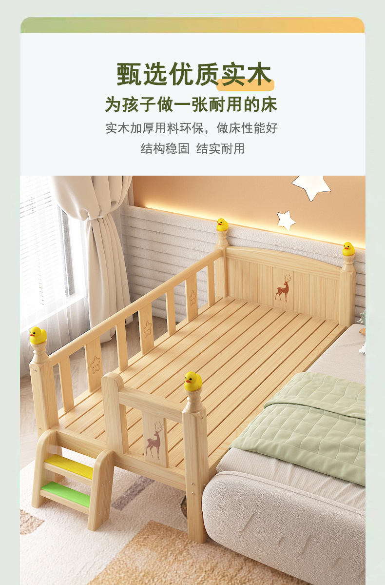 Boys and Girls Princess Bed Single Bed Side Bed Widened Stitching Big Bed Solid Wood Children s Bed with Guardrail Small Bed Baby