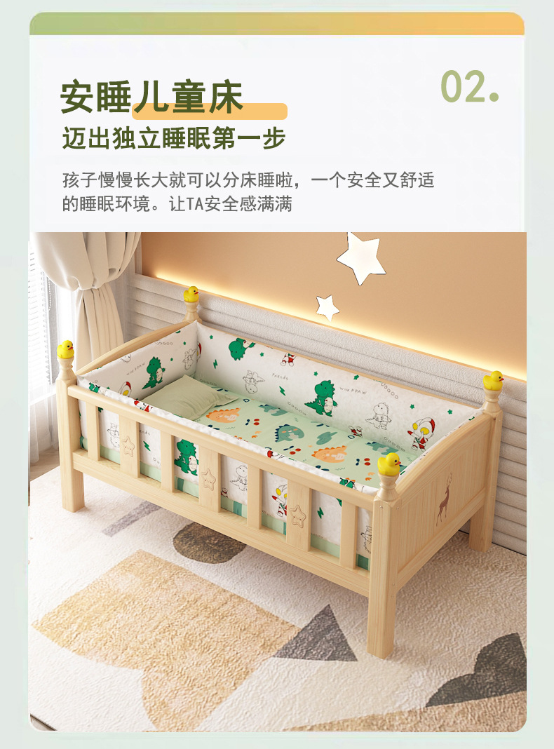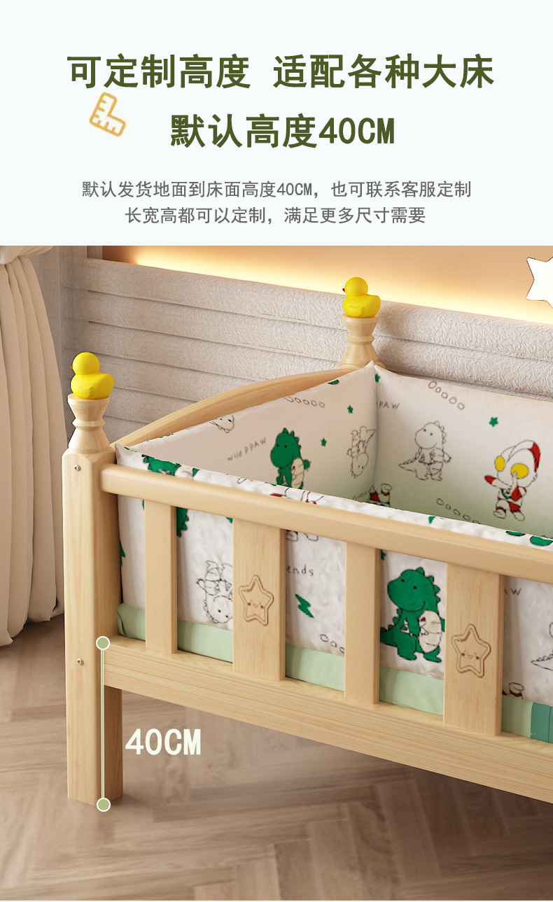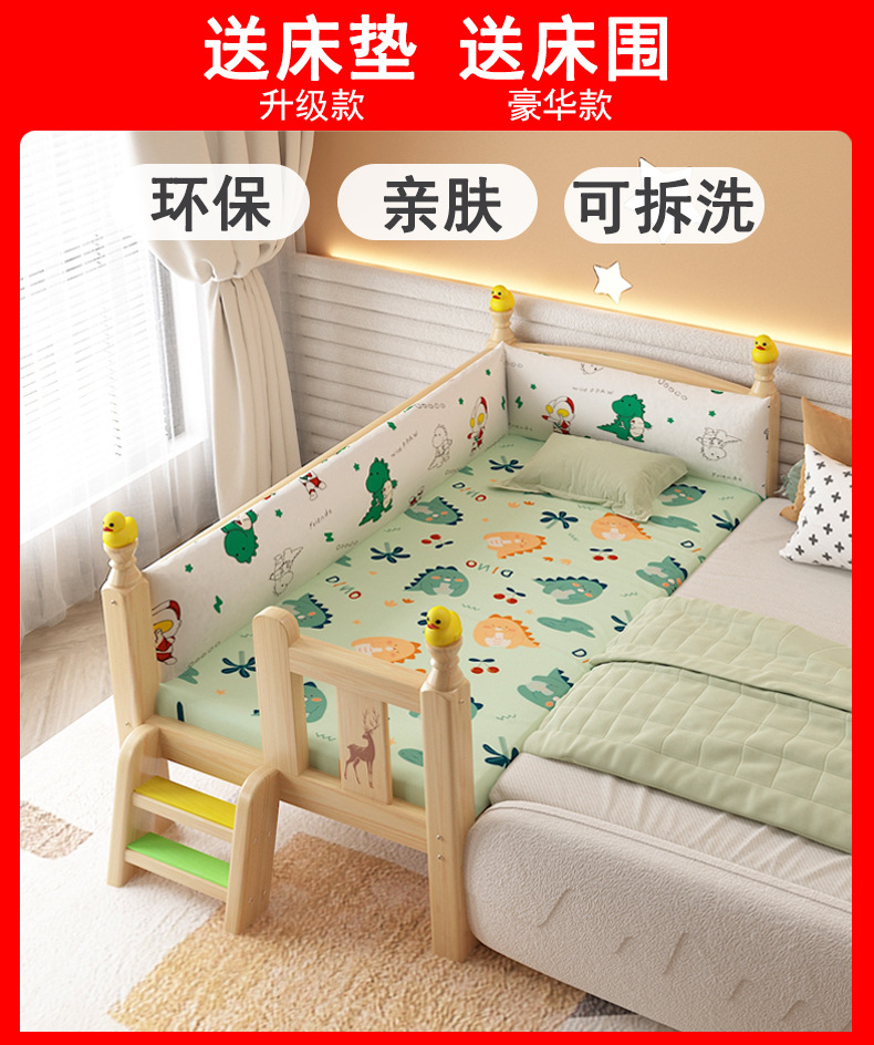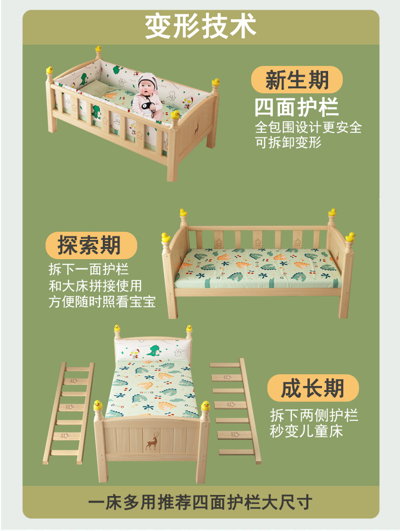 - [recommend★Detachable guardrail] luxury four-sided guardrail for small dinosaur mattress bed