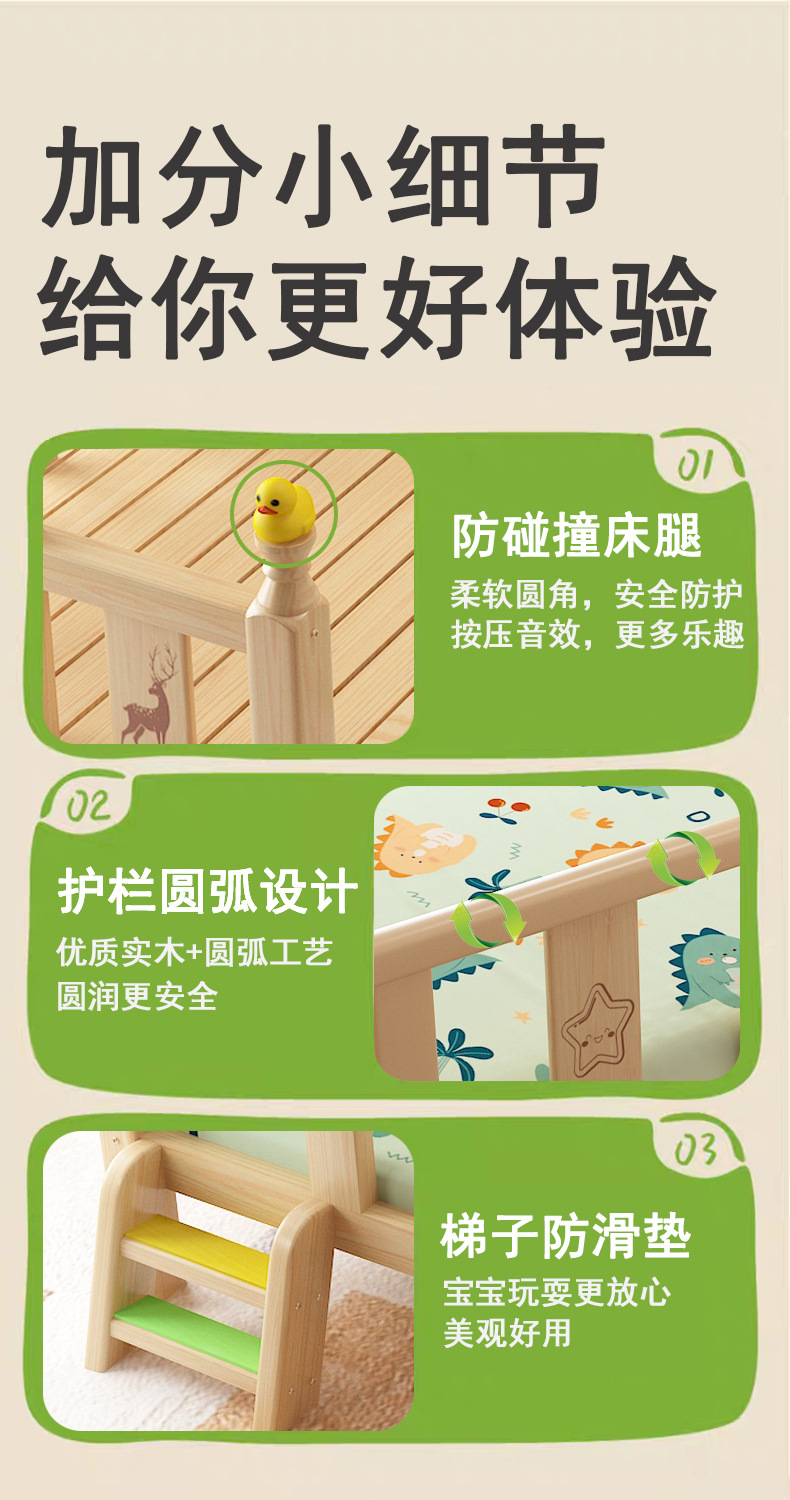- Upgraded three-sided guardrail tail ladder to send small dinosaur mattress