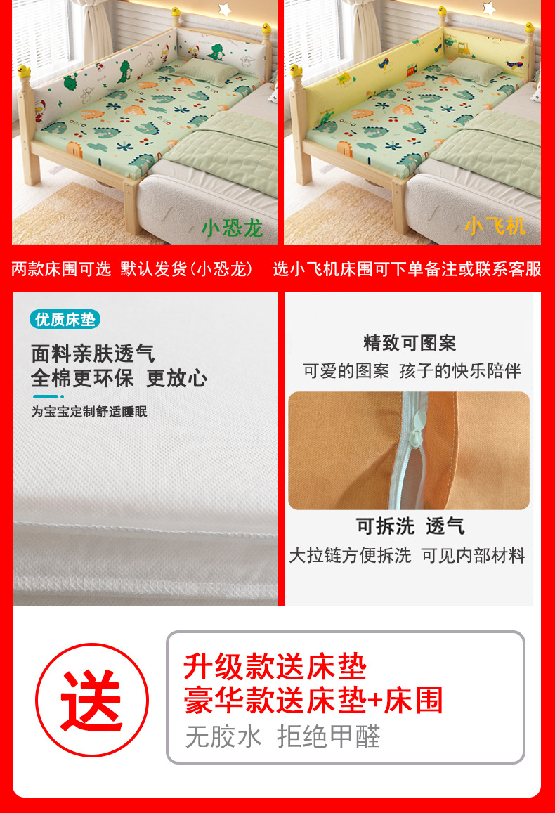 - Upgraded three-sided guardrail for small dinosaur mattress