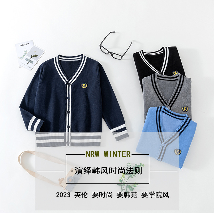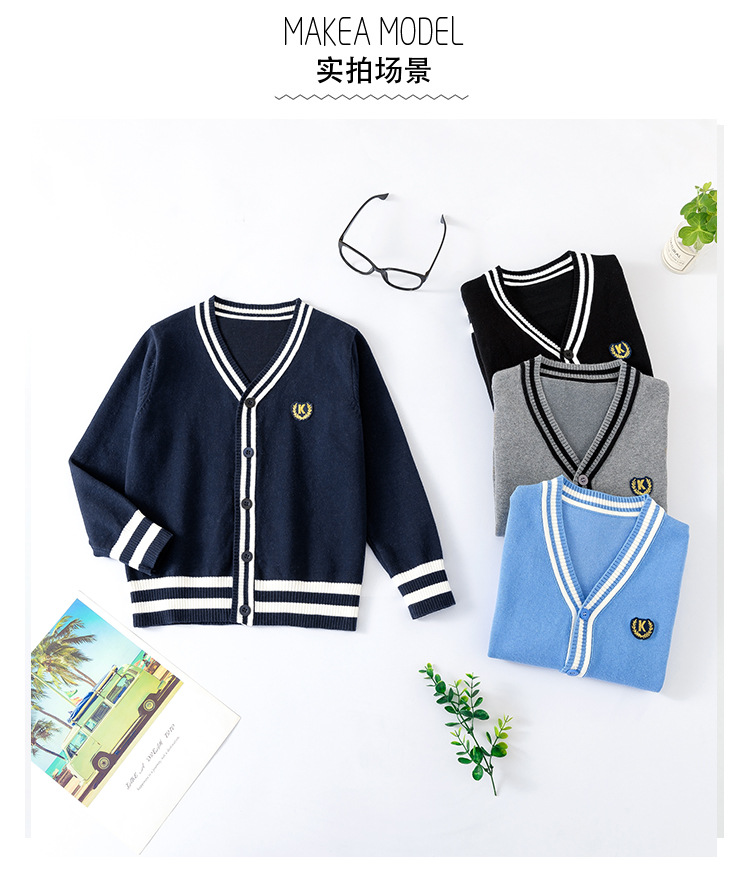 Boys and girls sweater cardigan autumn new Korean baby sweater v neck college coat children s clothing school uniform wholesale