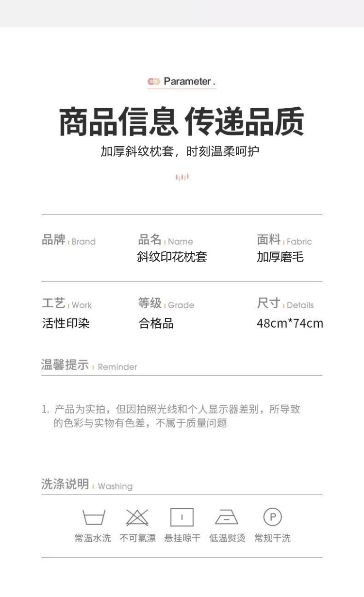 - 48x74cm ± 2cm [one pillow core + one pillowcase]]