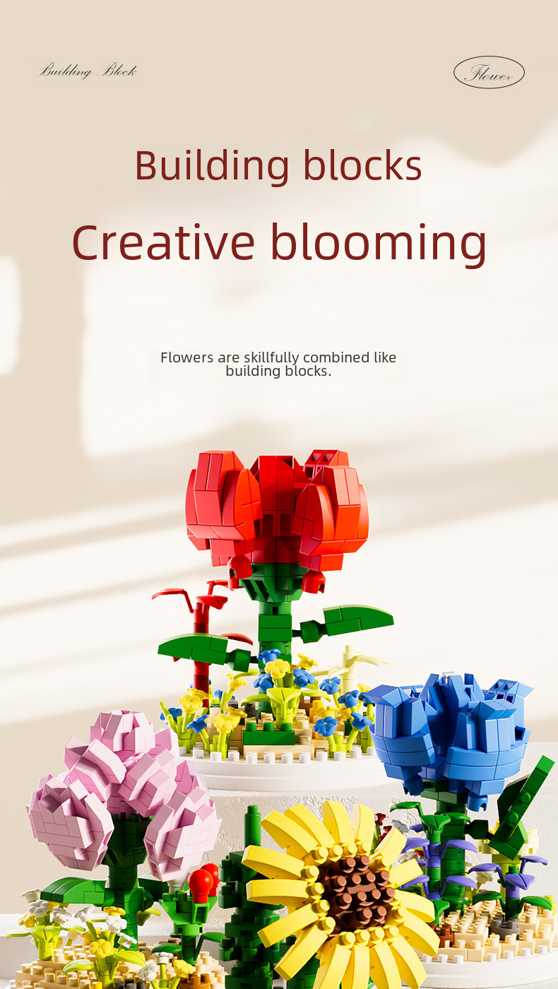 Building block flower toy compatible with Lego potted permanent flower girl series decoration toy gift Valentine s Day assembled flower