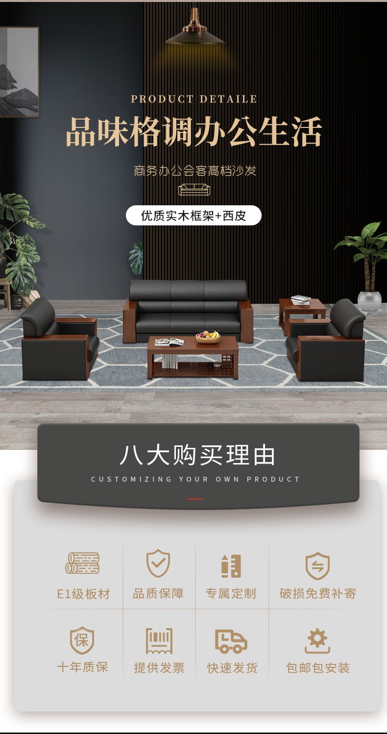 Business Office Sofa New Chinese style Office Meeting Sofa Coffee Table Combination Business Reception Meeting Meeting Negotiation Sofa