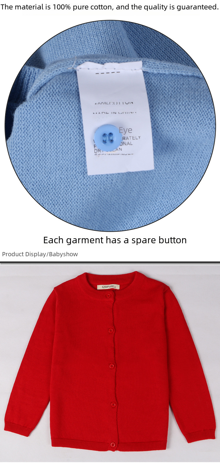 CAMPURE school Pure spring and autumn pure color cotton baby knitted sweater cardigan long sleeve coat children s wool