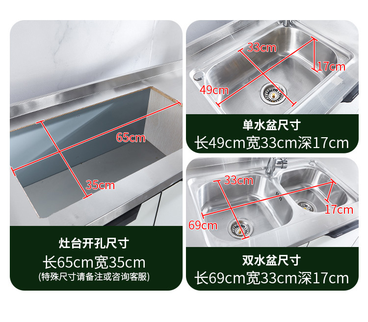 Cabinet Stainless Steel Stove Cabinet Cabinet Integrated Household Rental Sink Cabinet Rural Kitchen Integrated Kitchen Cabinet Simple