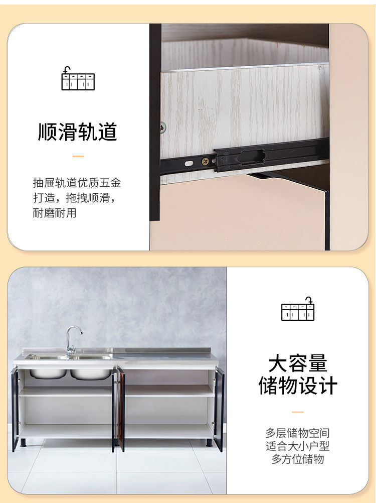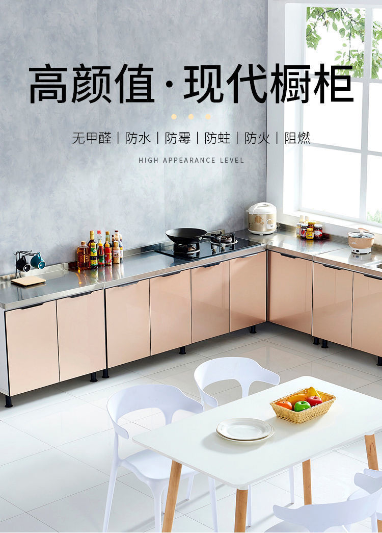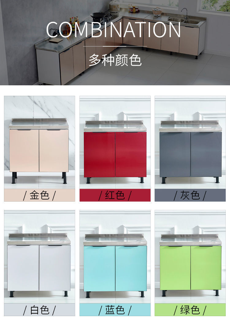 Cabinet simple stainless steel kitchen stove table cabinet household kitchen cabinet cupboard sink locker overall assembly for rental