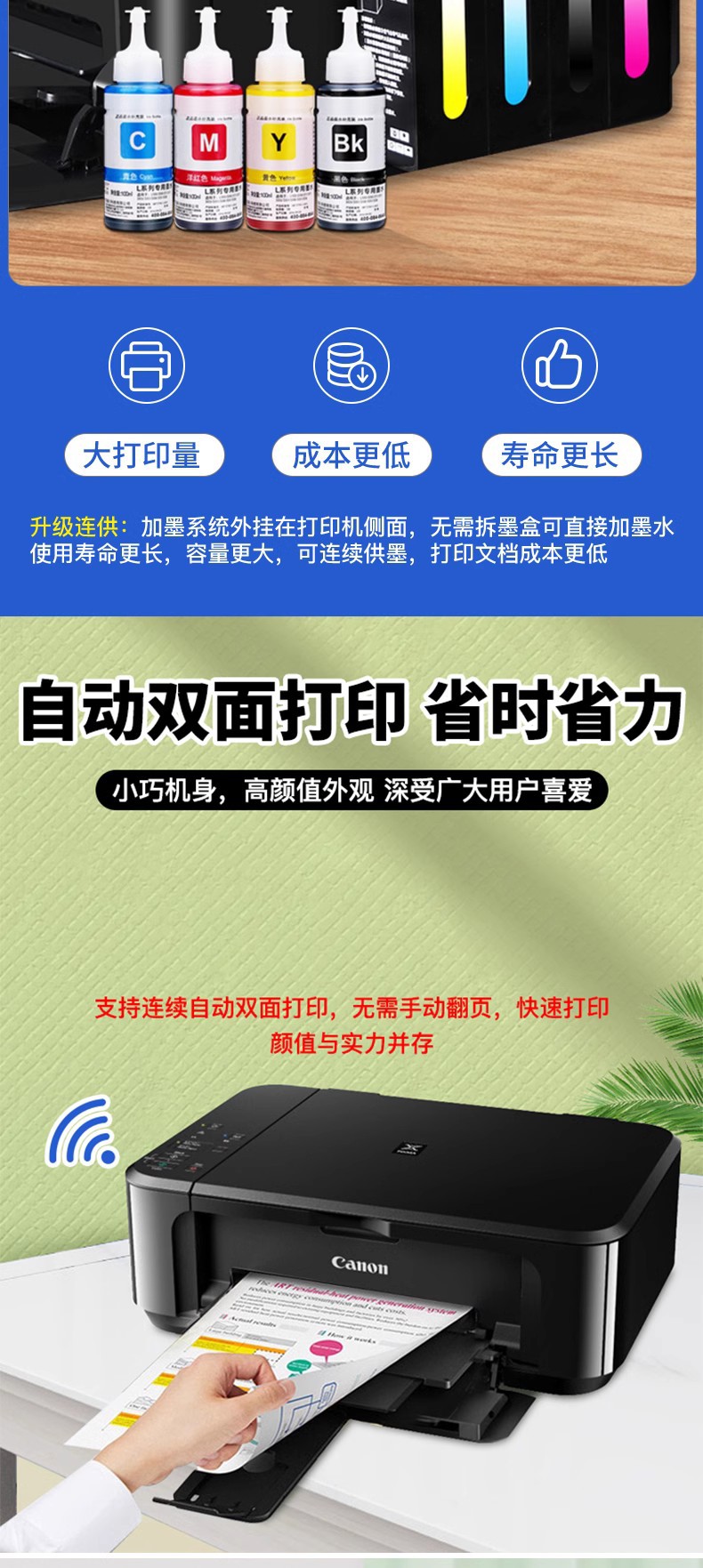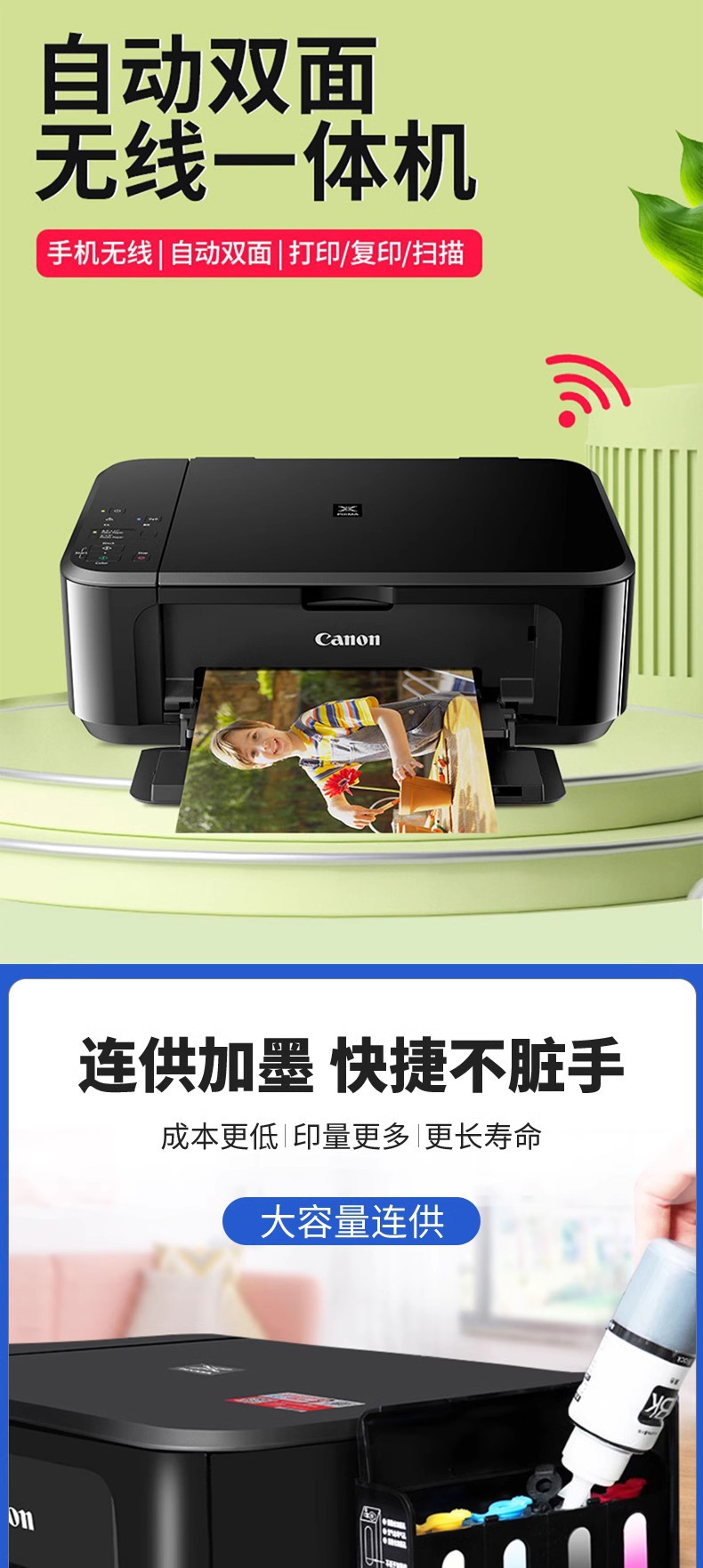 - Canon 3640 Mobile Phone Double-sided Wireless Edition Package 3 External Continuous Ink Supply Bin Color and Black Ink 4 Bottles of Ink