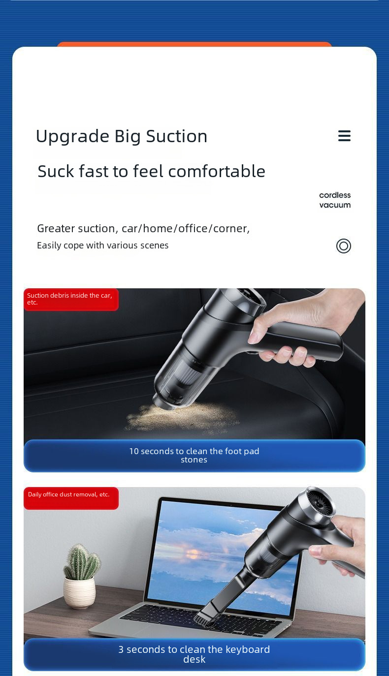 Car Wireless Vacuum Cleaner Powerful High Power High Suction Mini Handheld Car Vacuum Cleaner Household Indoor Small