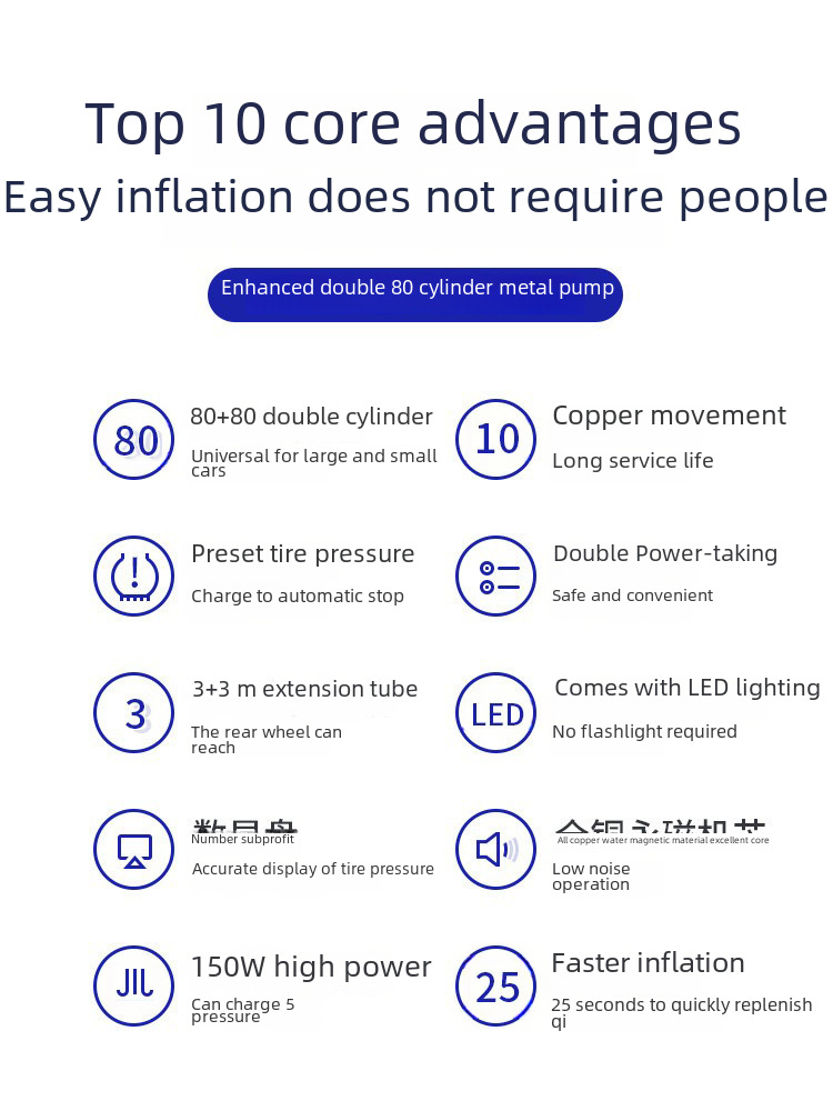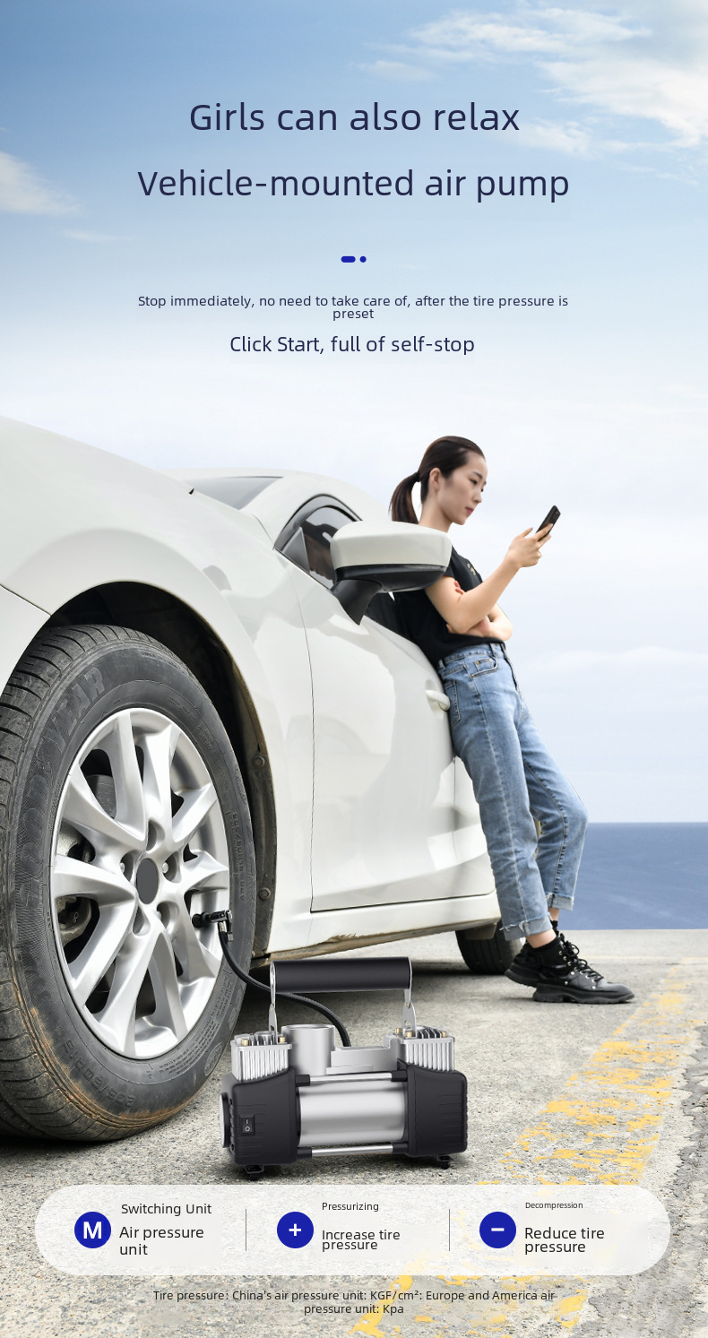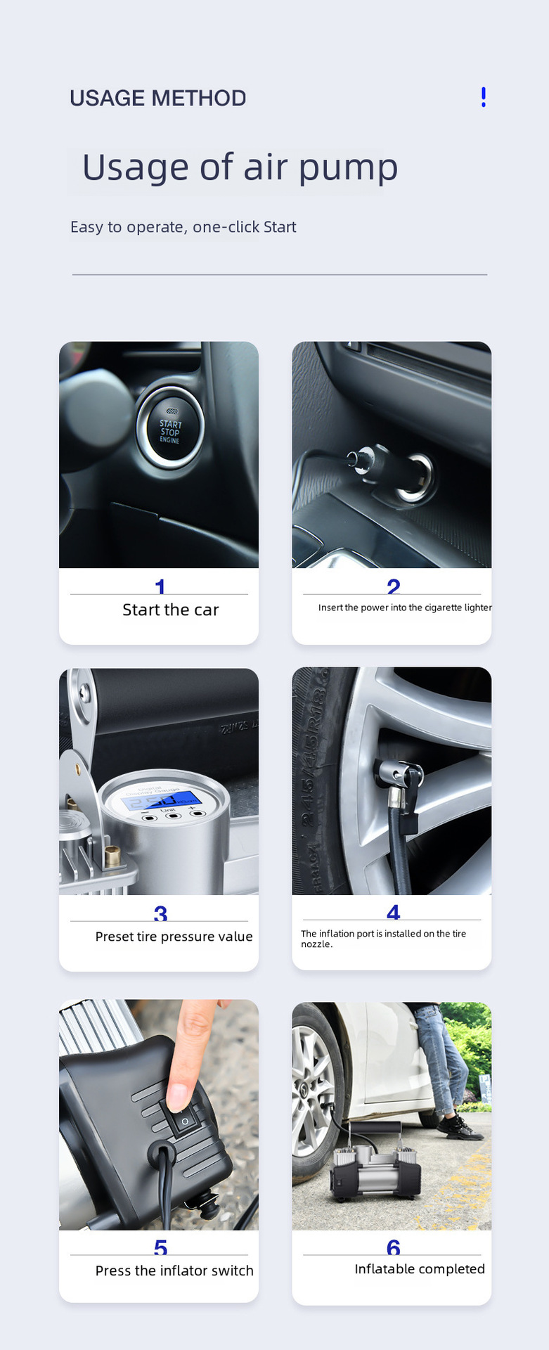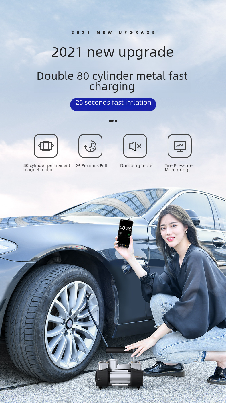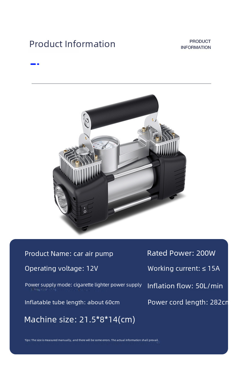 Car air pump double cylinder high pressure tire electric car portable multi function 12V car air pump