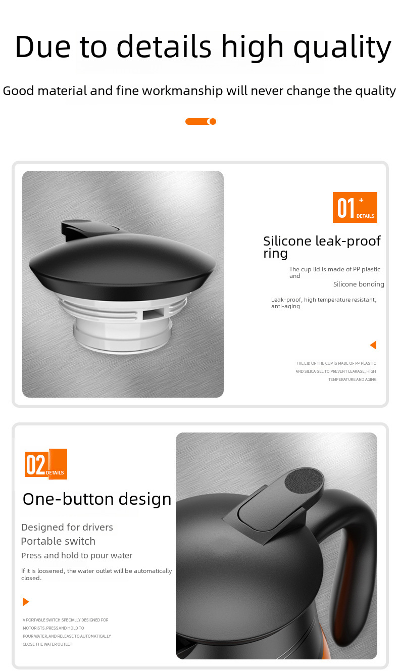 Portable Use:Whether you're going on a long drive or just need a hot cup of coffee, this thermo flask is a must-have portable accessory for your car.
